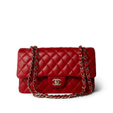 20S Red Lambskin Quilted Classic Flap Medium LGHW