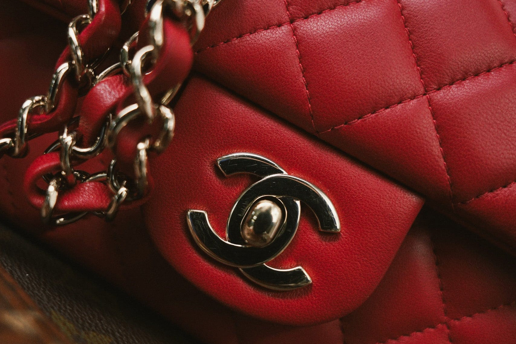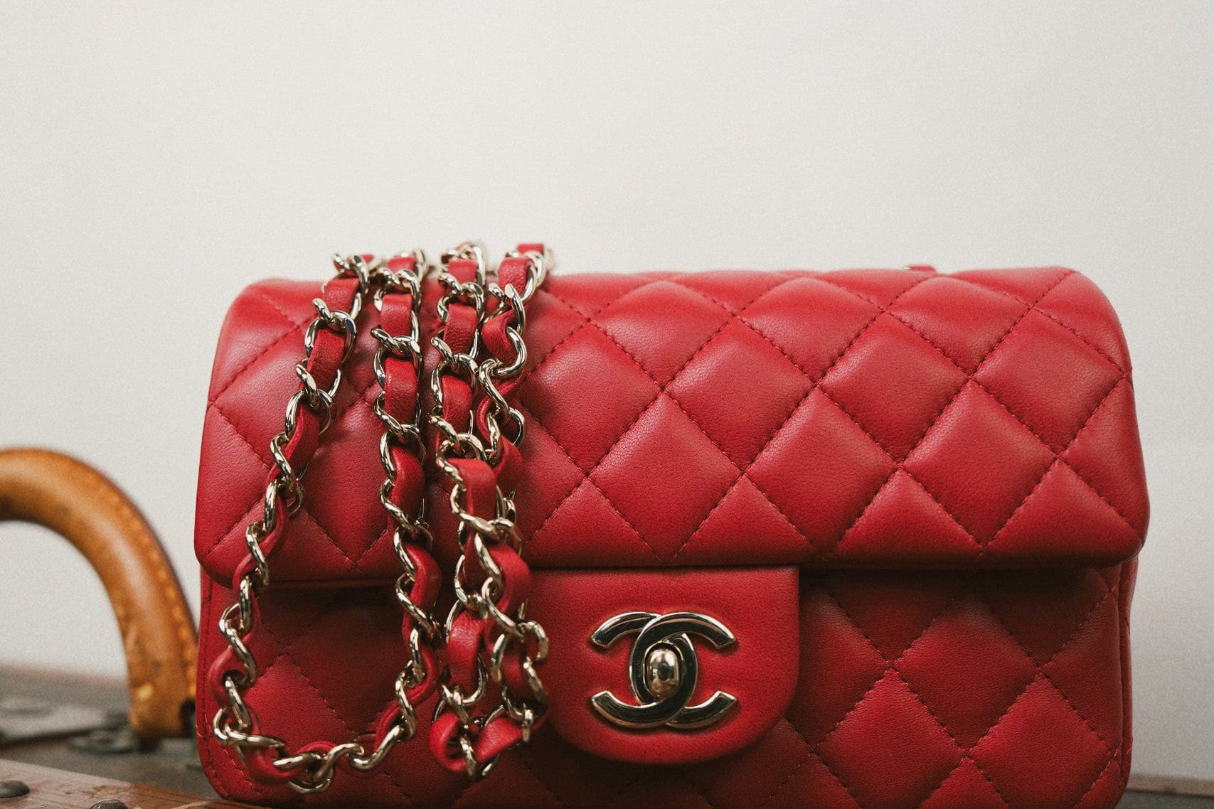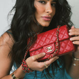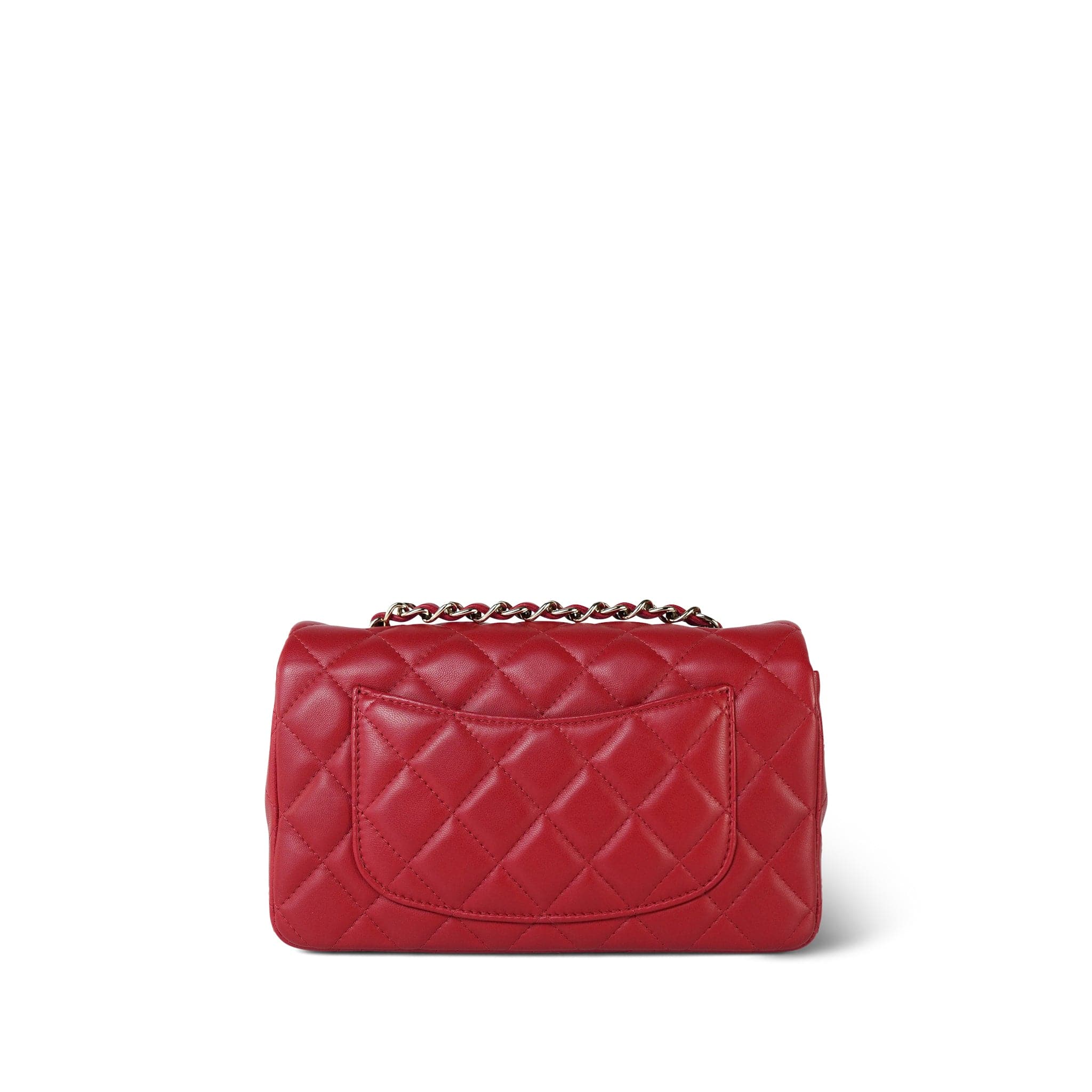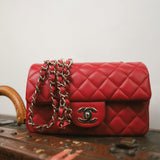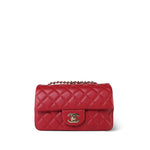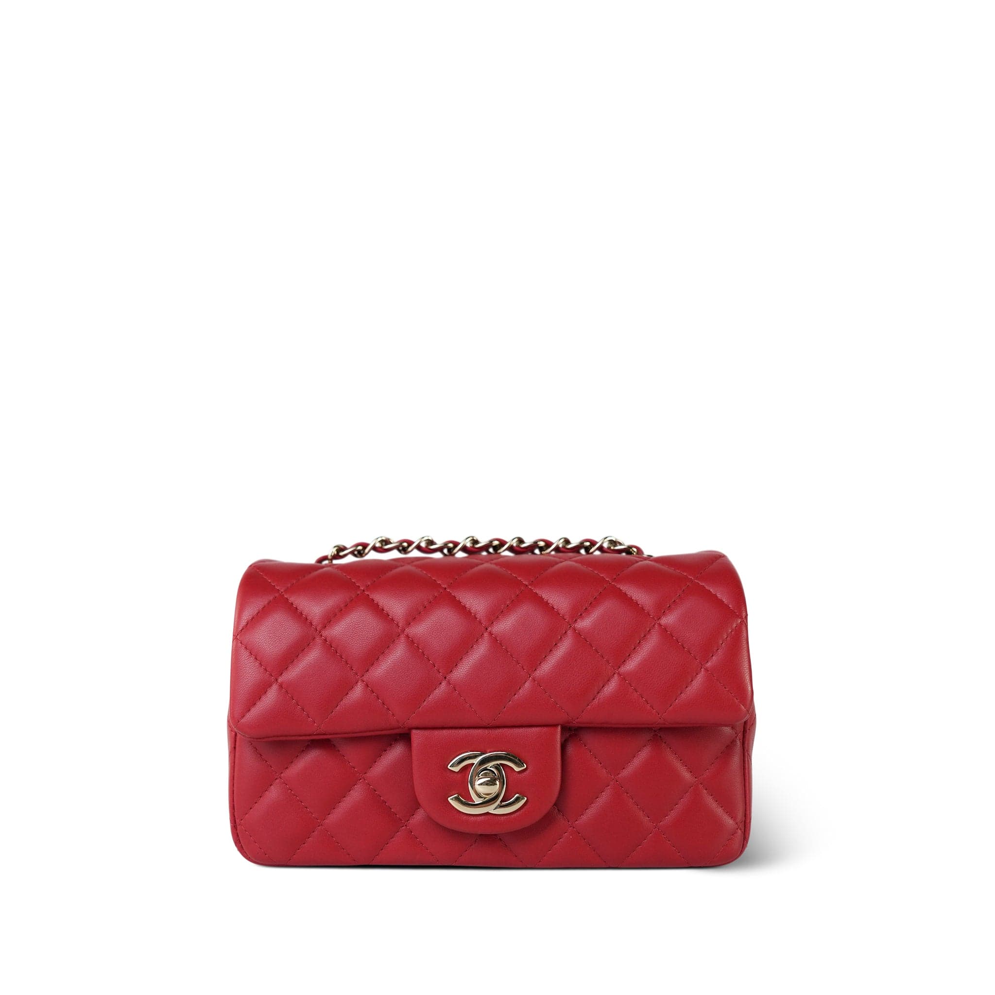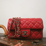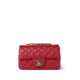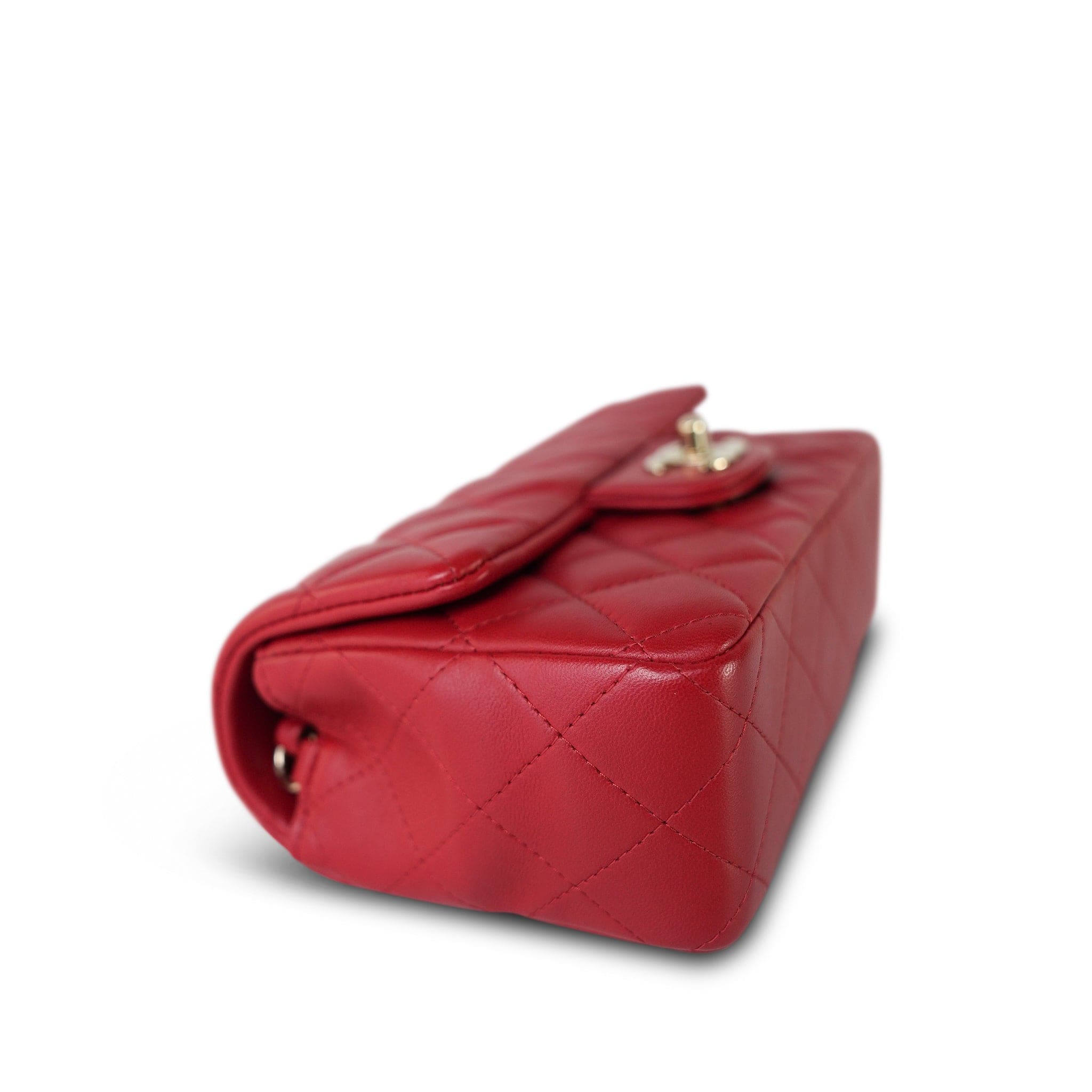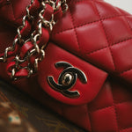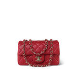 20S Red Lambskin Quilted Mini Rectangular Flap Light Gold Hardware