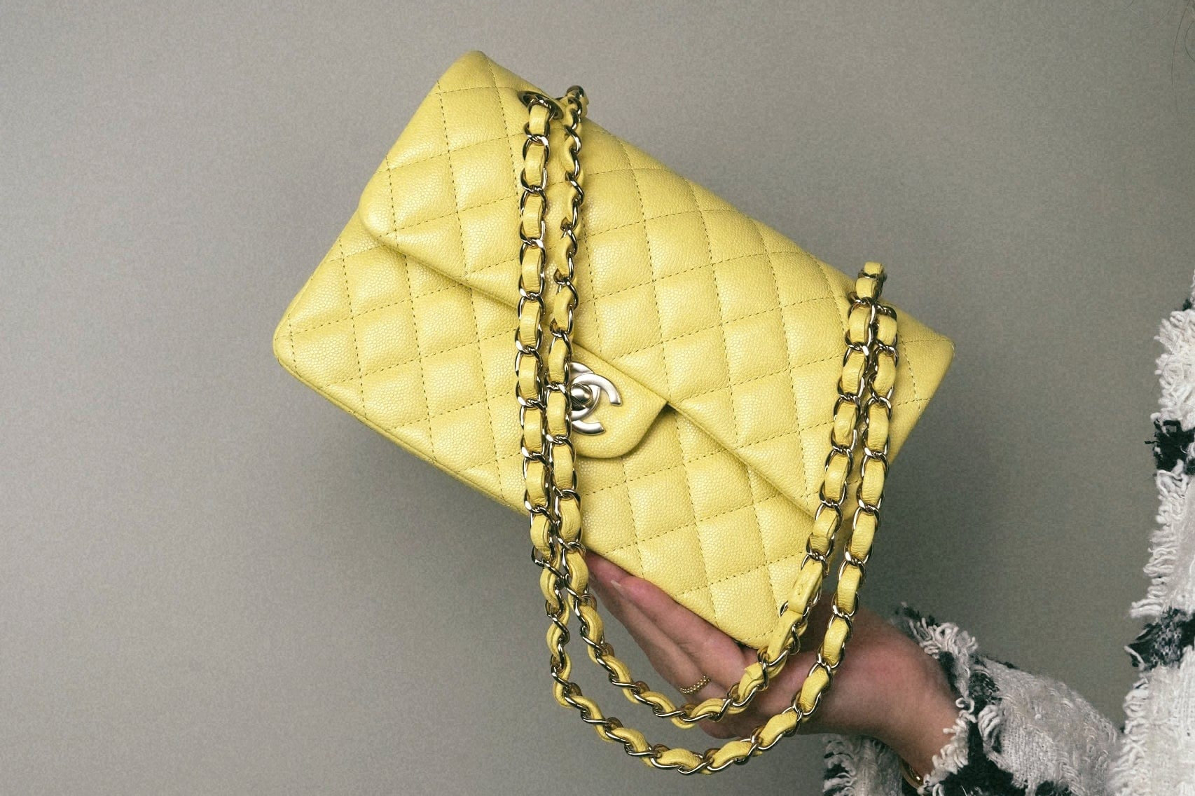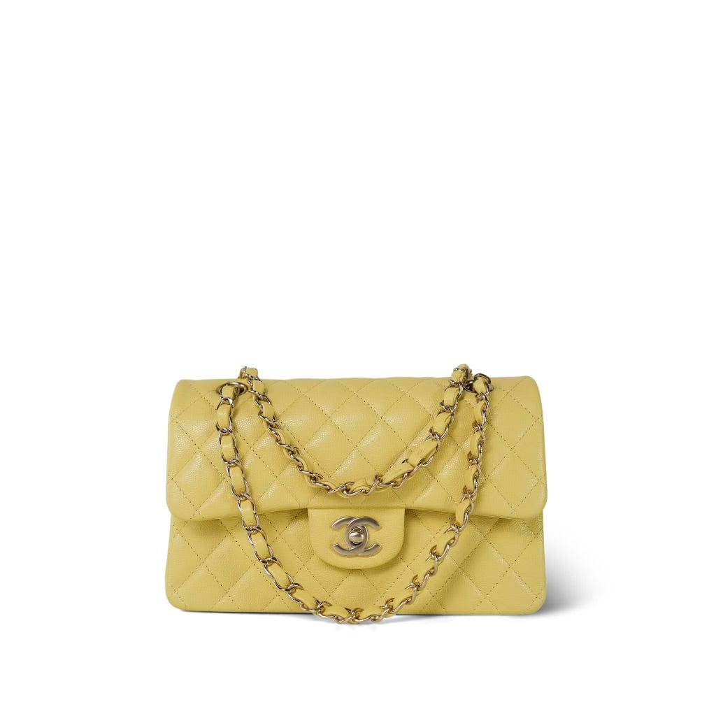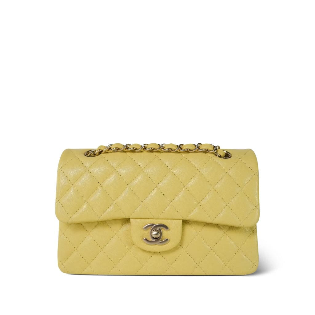 20S Yellow Caviar Quilted Classic Flap Small LGHW