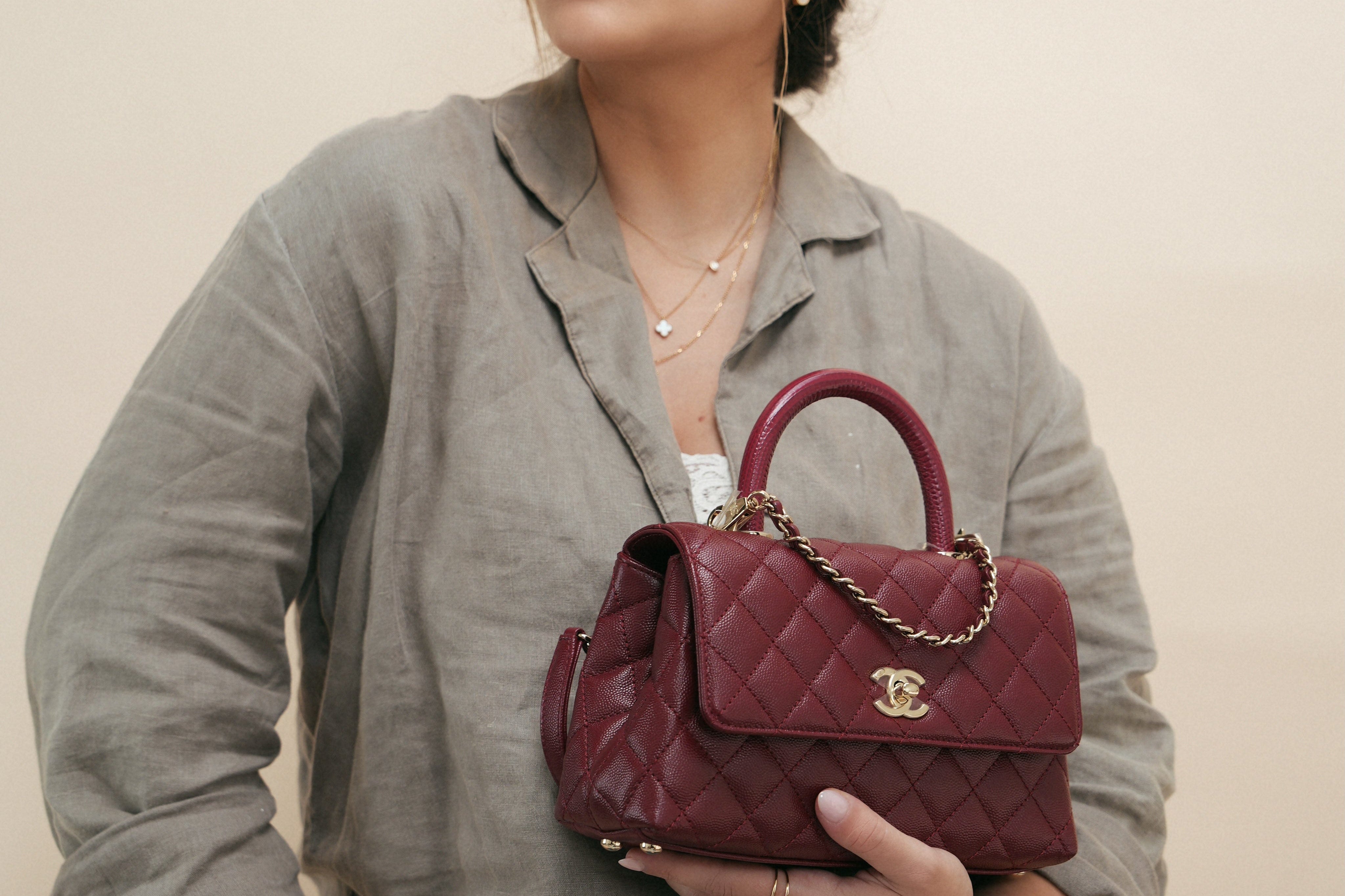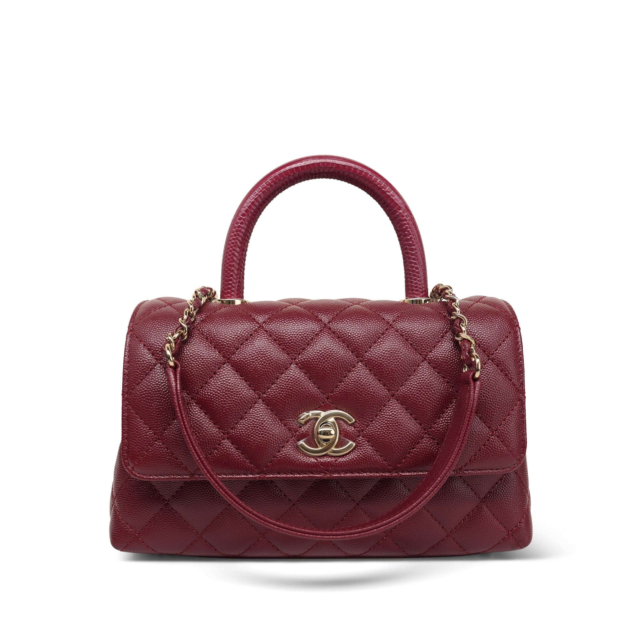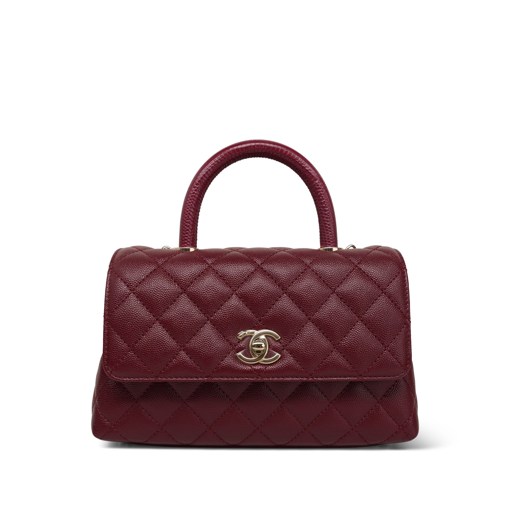 21A Burgundy Caviar Quilted Lizard Coco Handle Small LGHW