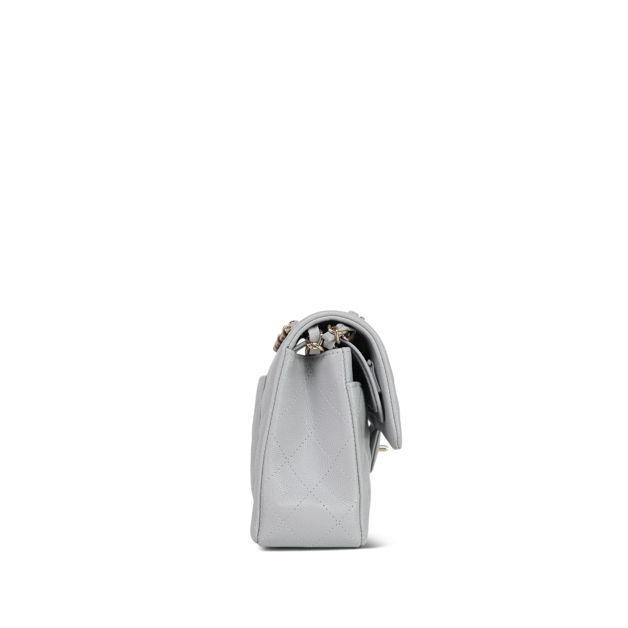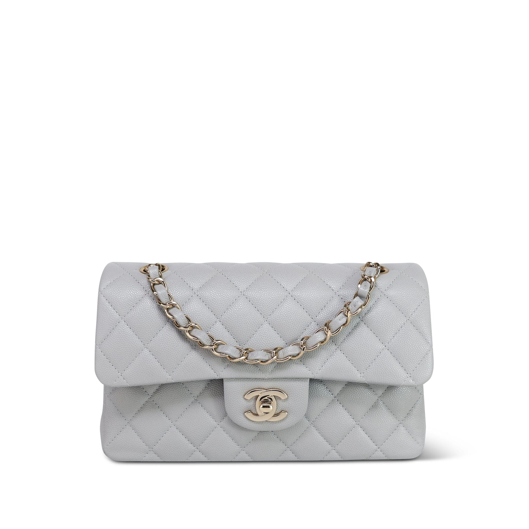 21A Grey Caviar Quilted Classic Flap Small Light Gold Hardware