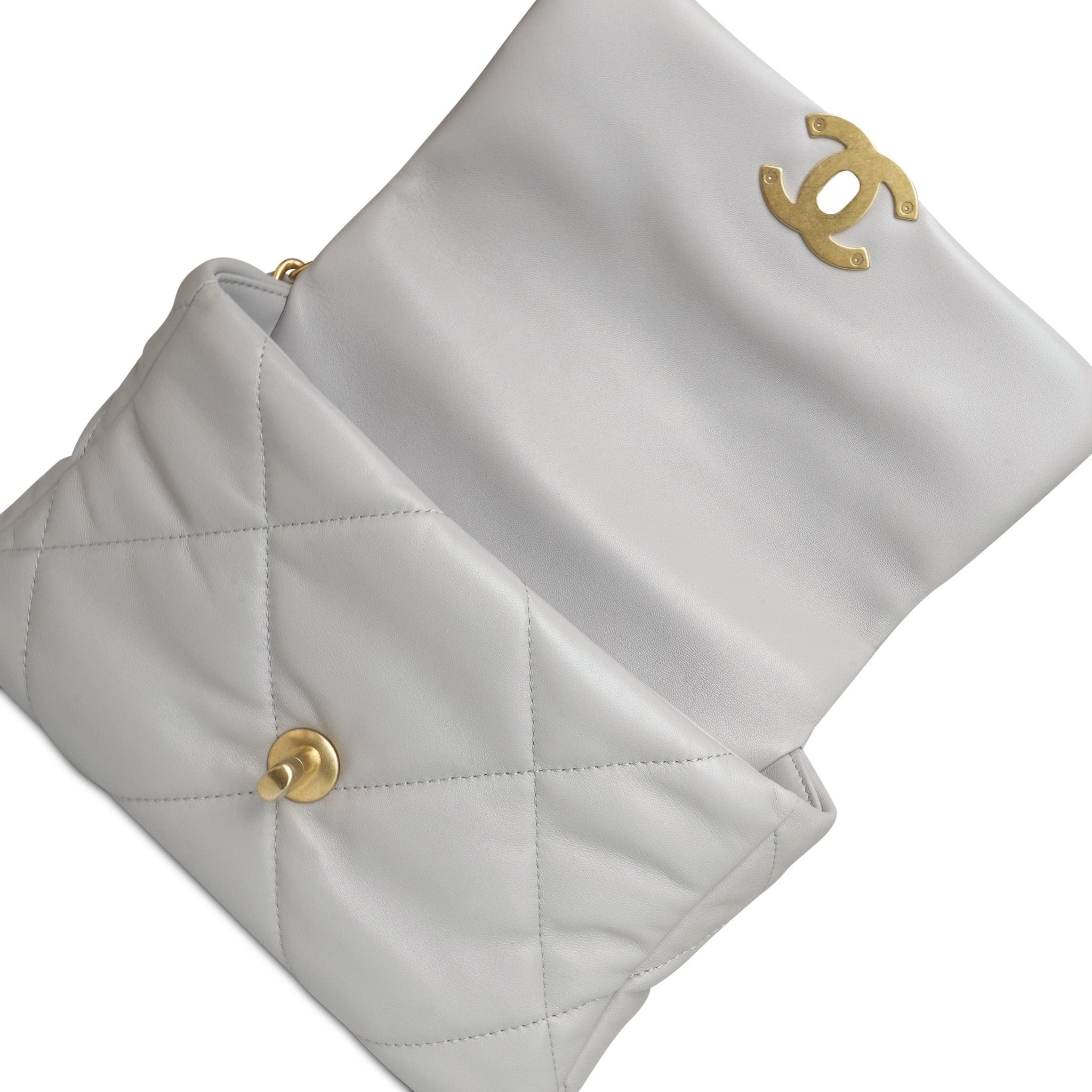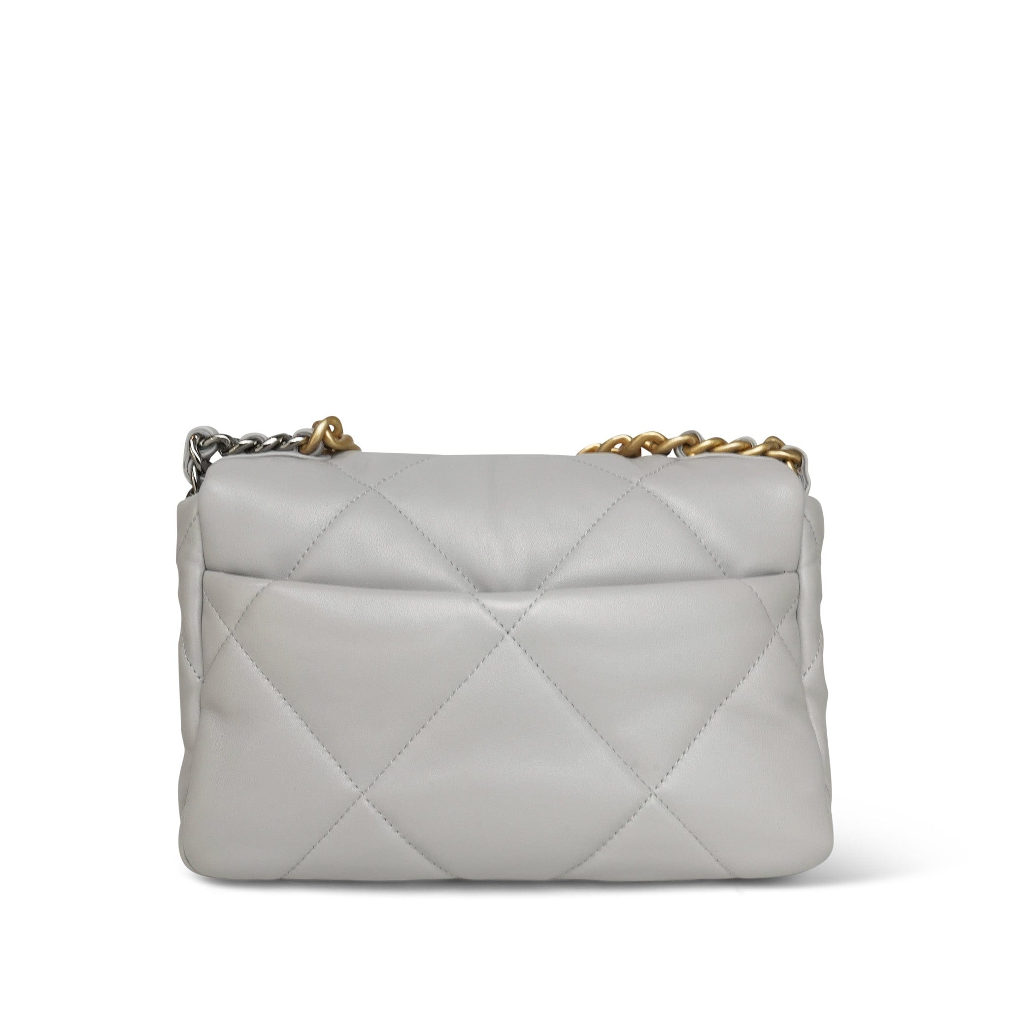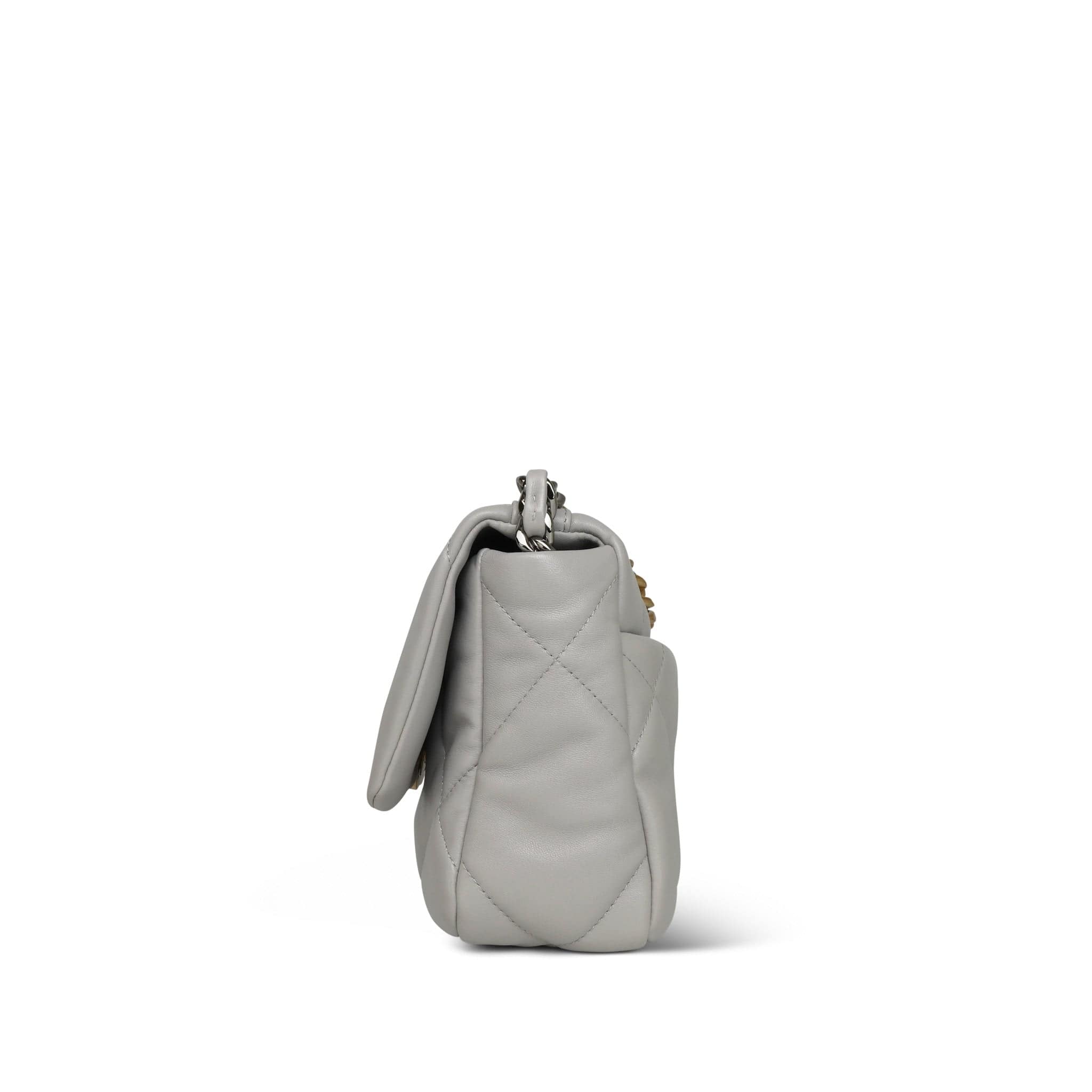 21A Light Grey Lambskin Quilted 19 Flap Small Mixed Hardware