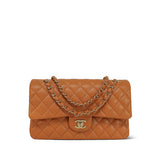 21A Caramel/Orange Caviar Quilted Classic Flap Medium LGHW