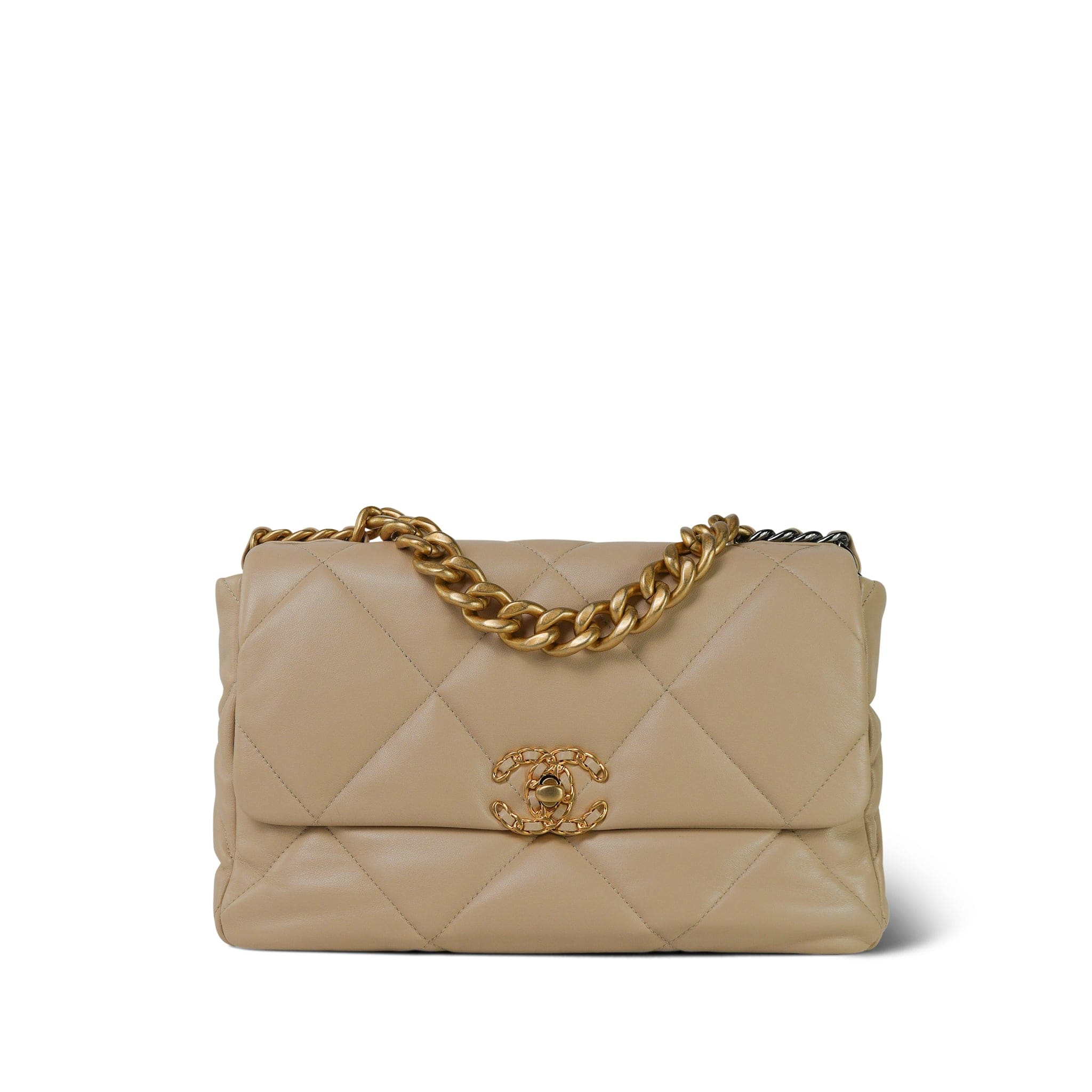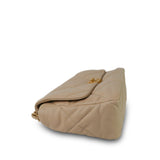 21B Beige Lambskin Quilted 19 Flap Medium/Large Mixed Hardware