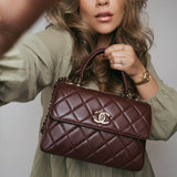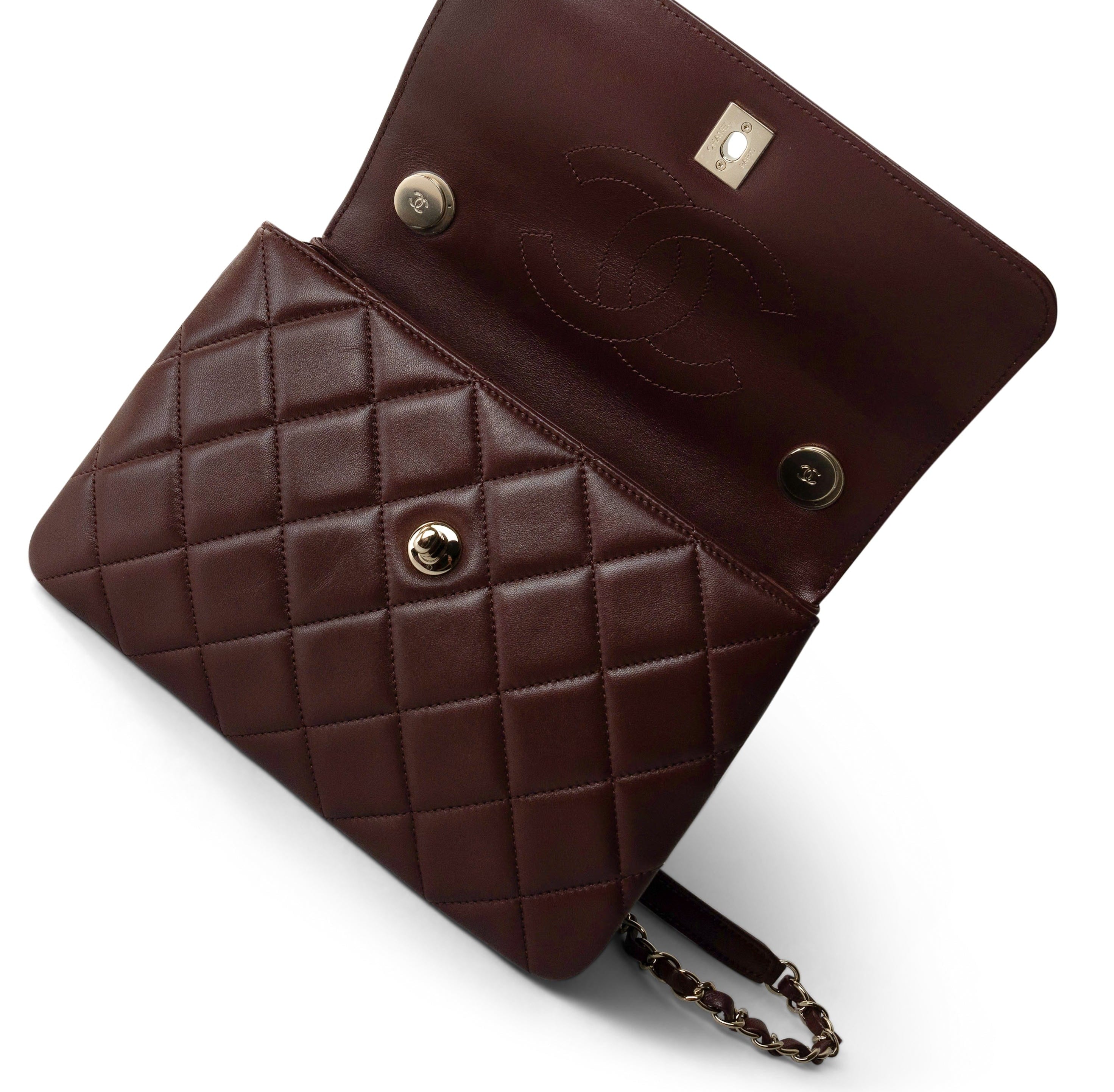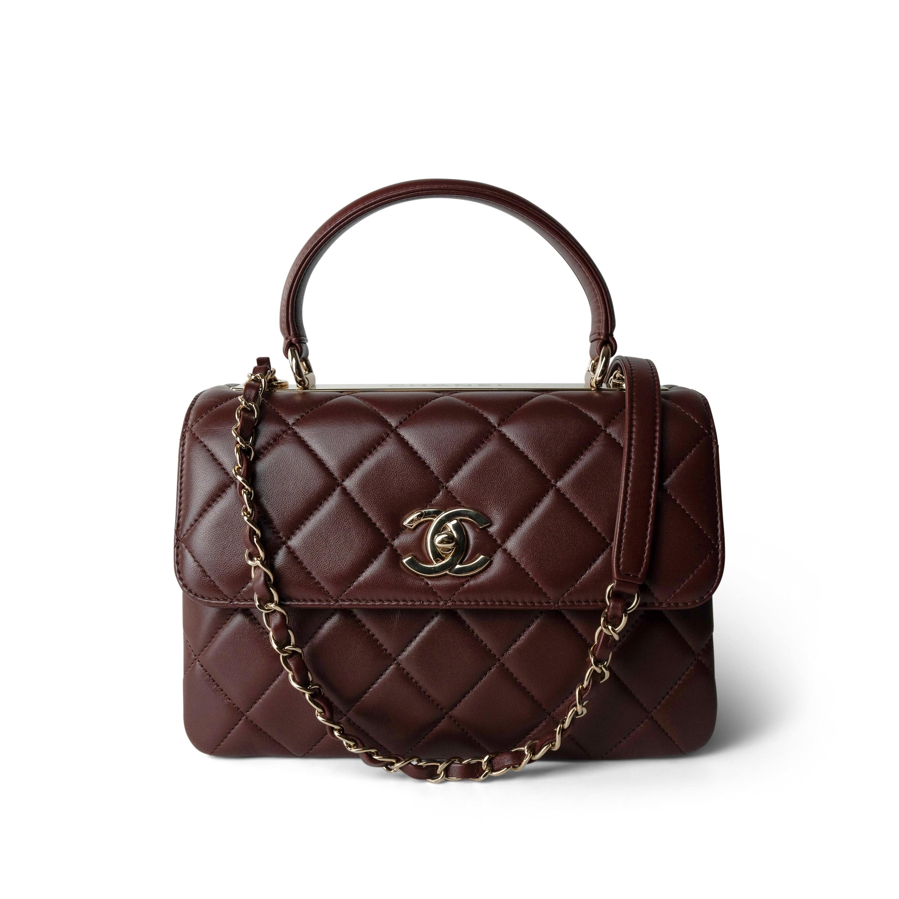 21B Burgundy Lambskin Quilted Trendy CC Small Light Gold Hardware