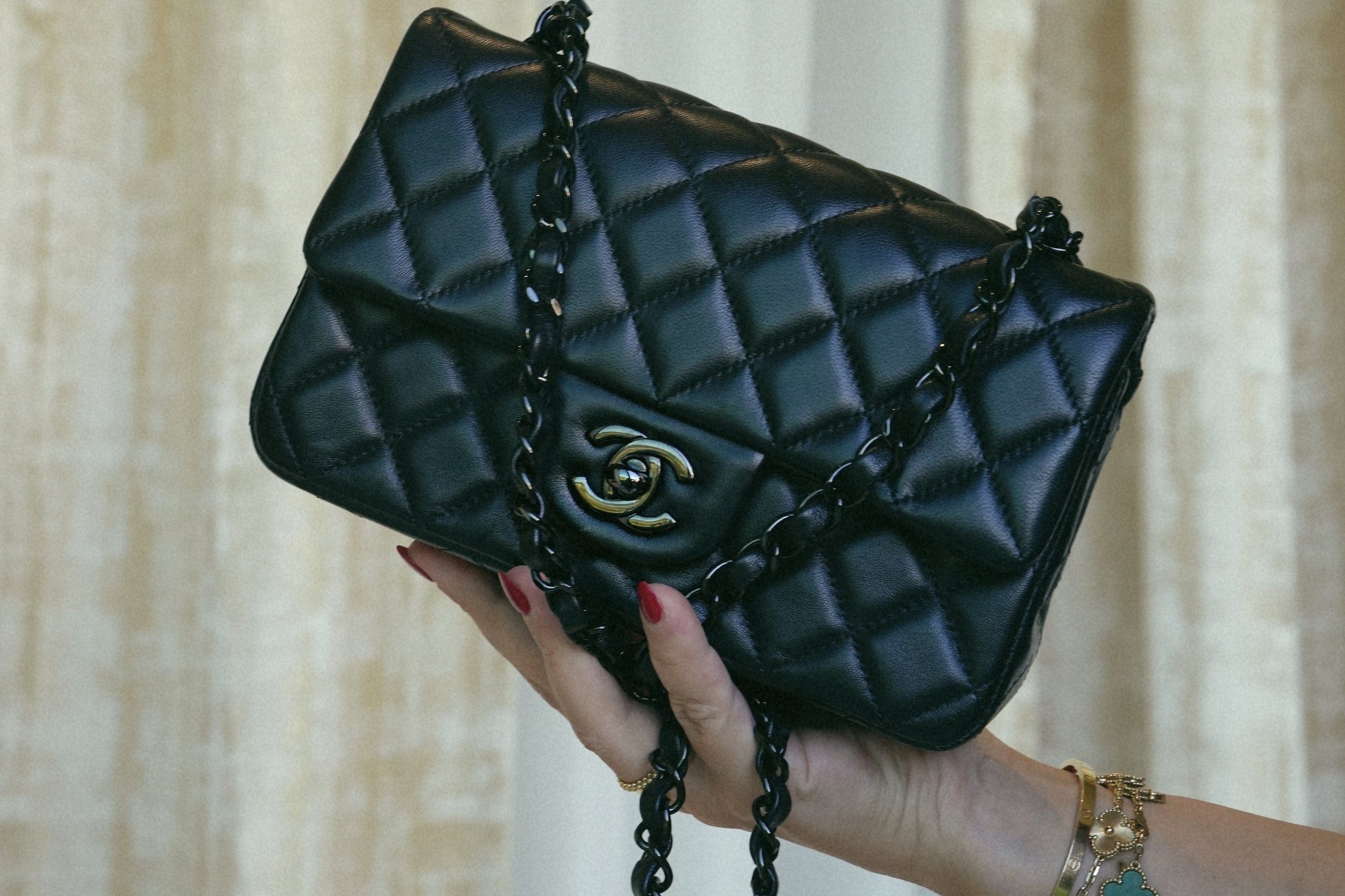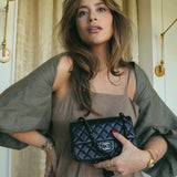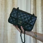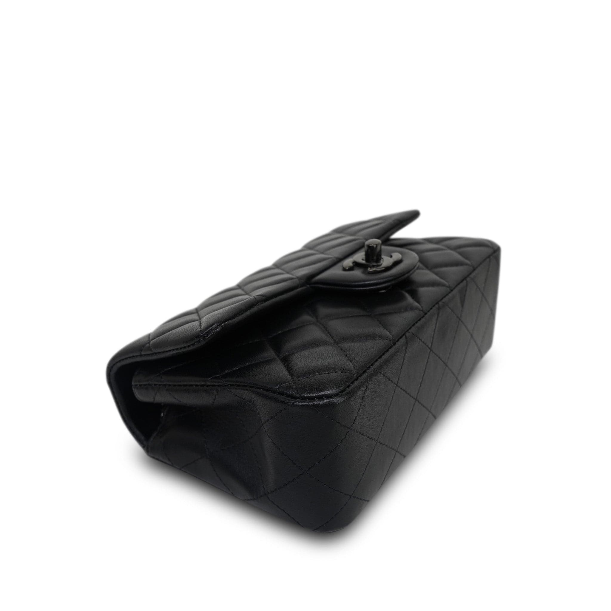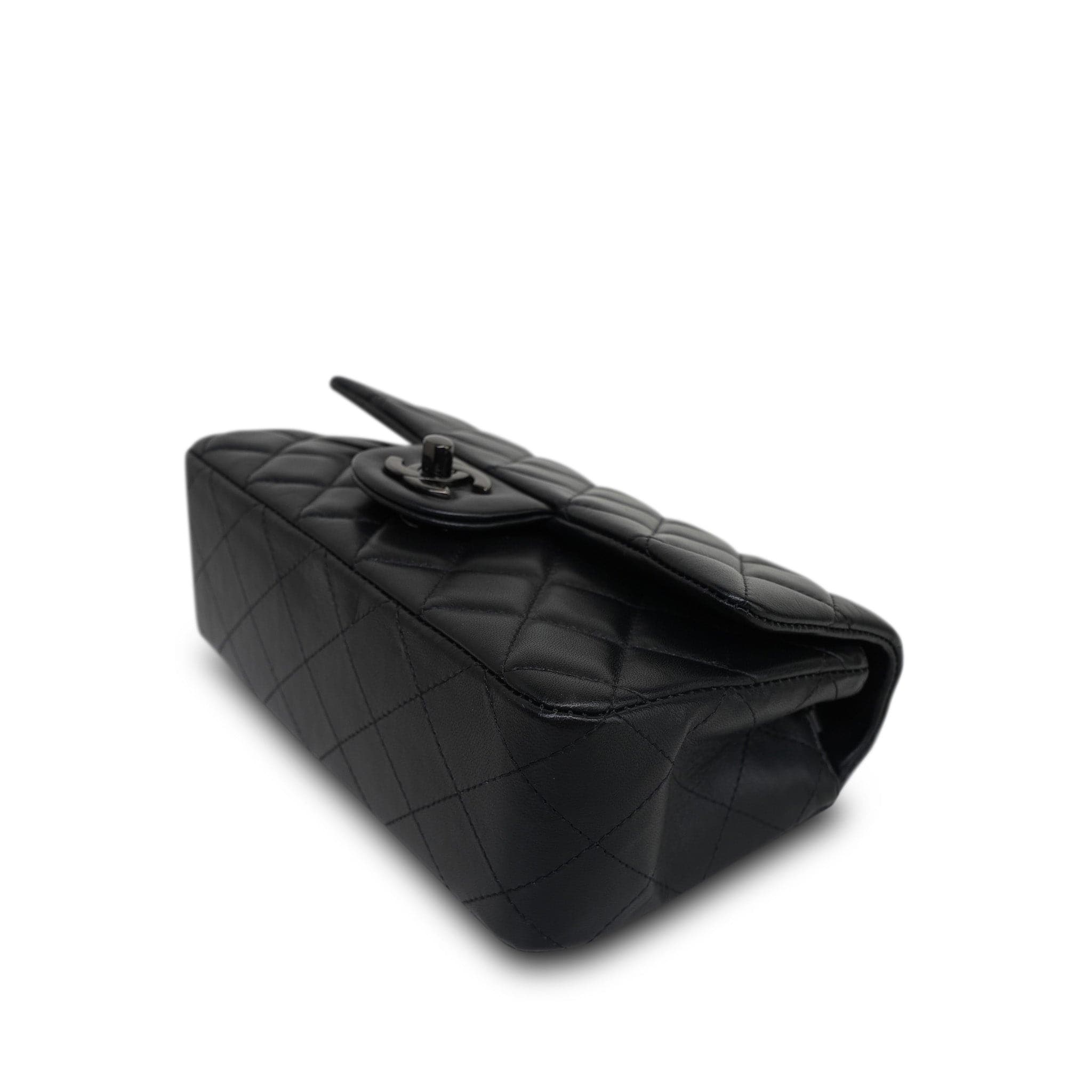 21B So Black Lambskin Quilted Mini Rectangular Flap