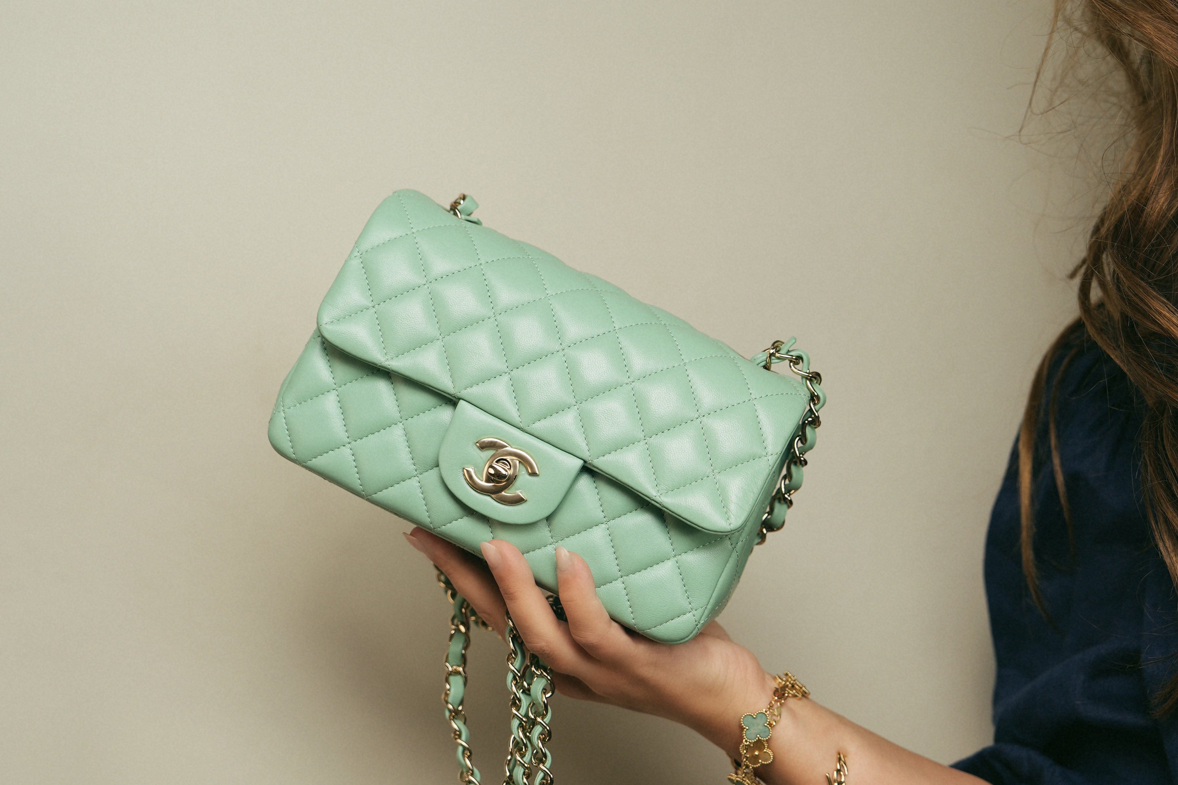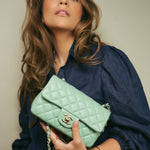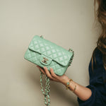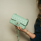 21C Light Green Lambskin Quilted Mini Rectangular Flap Light Gold Hardware