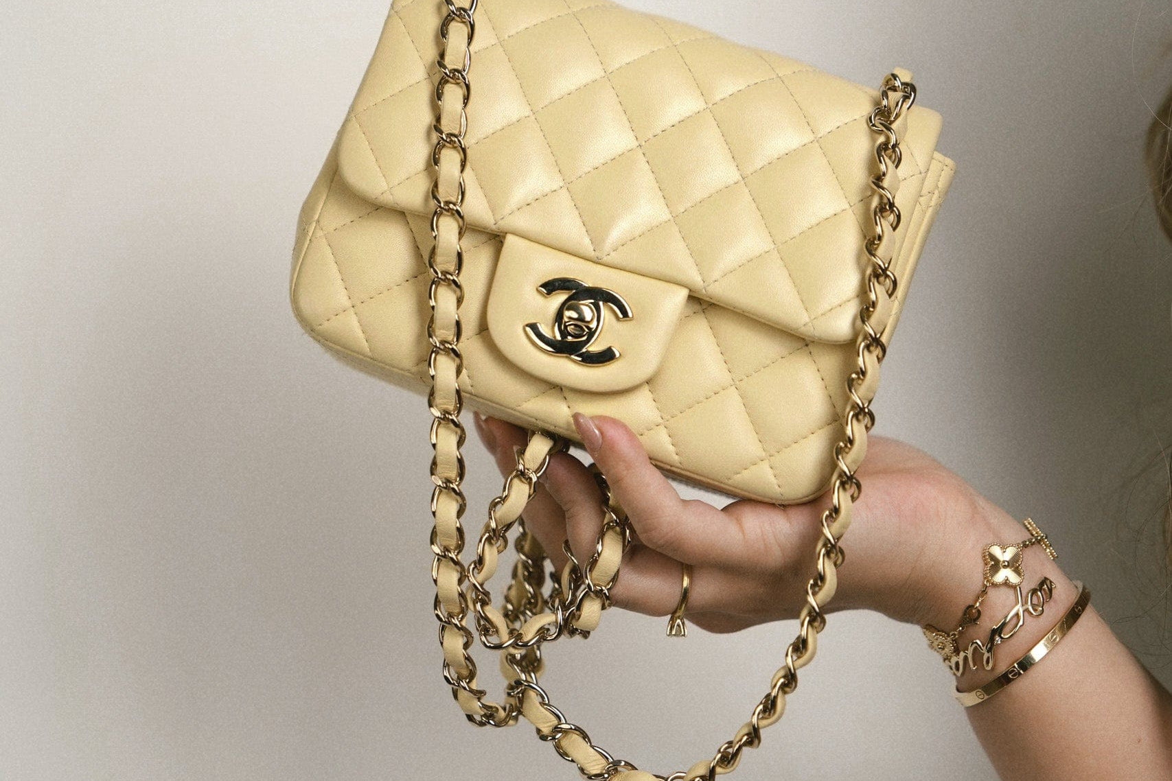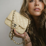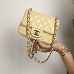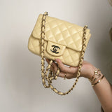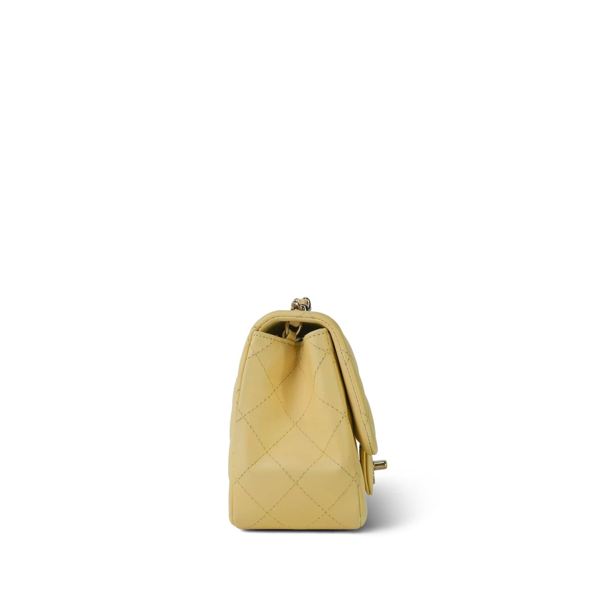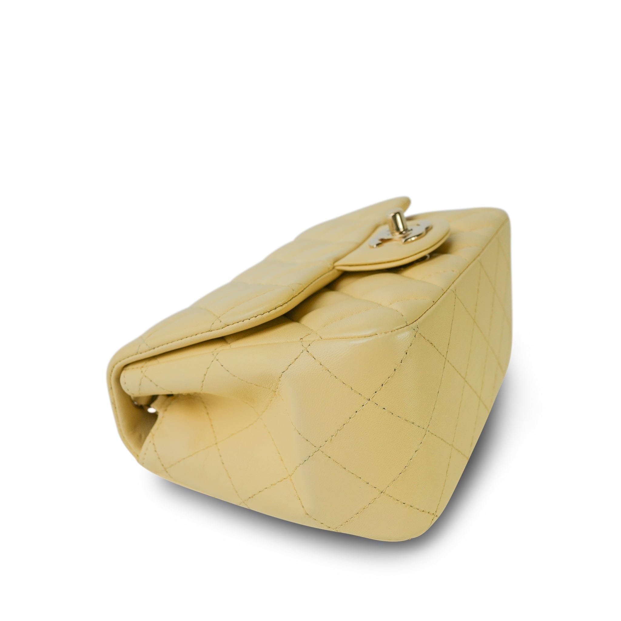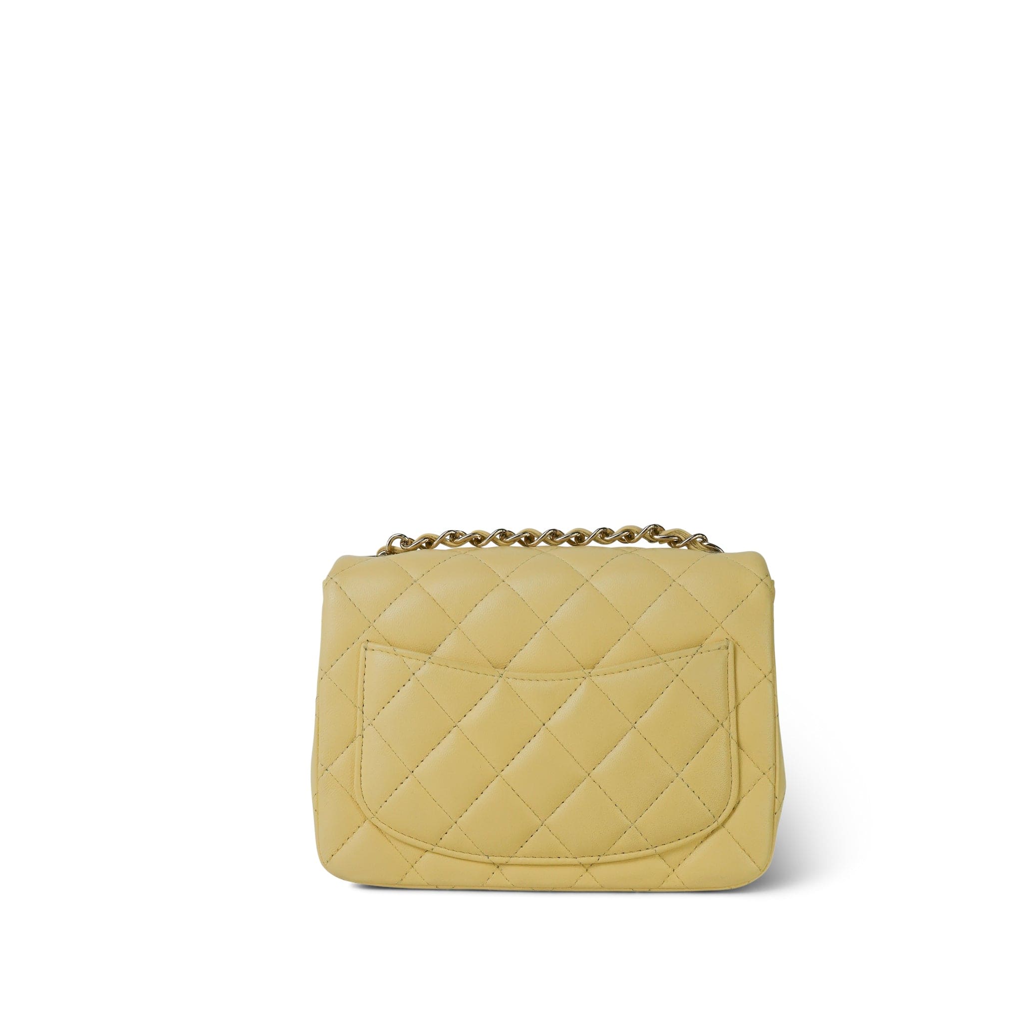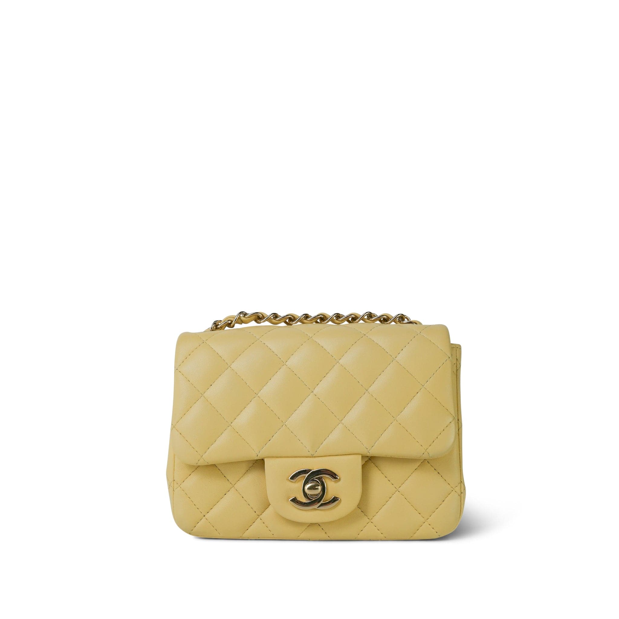 21C Light Yellow Lambskin Quilted Mini Square Flap Light Gold Hardware