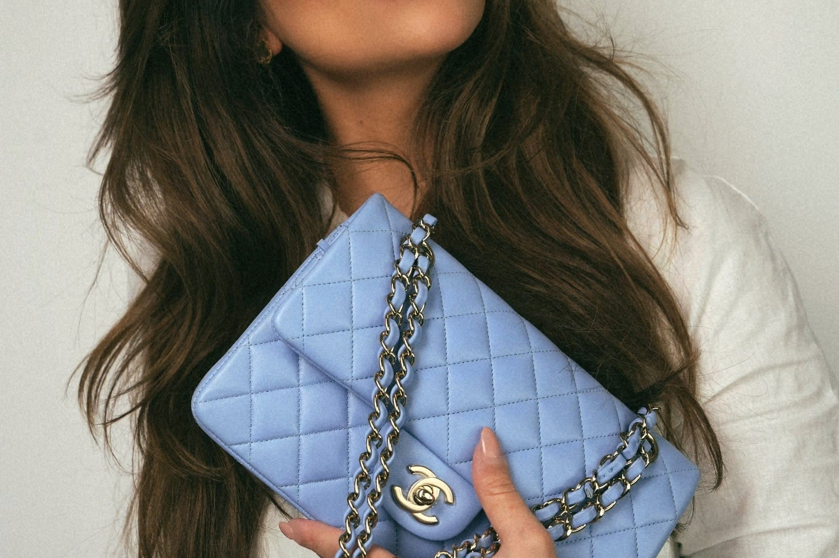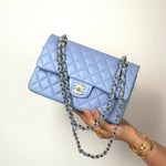 21C Sky Blue Lambskin Quilted Mini Rectangular Flap Light Gold Hardware