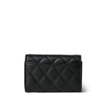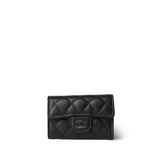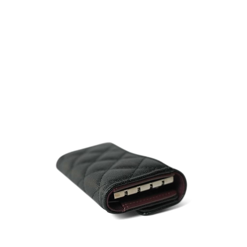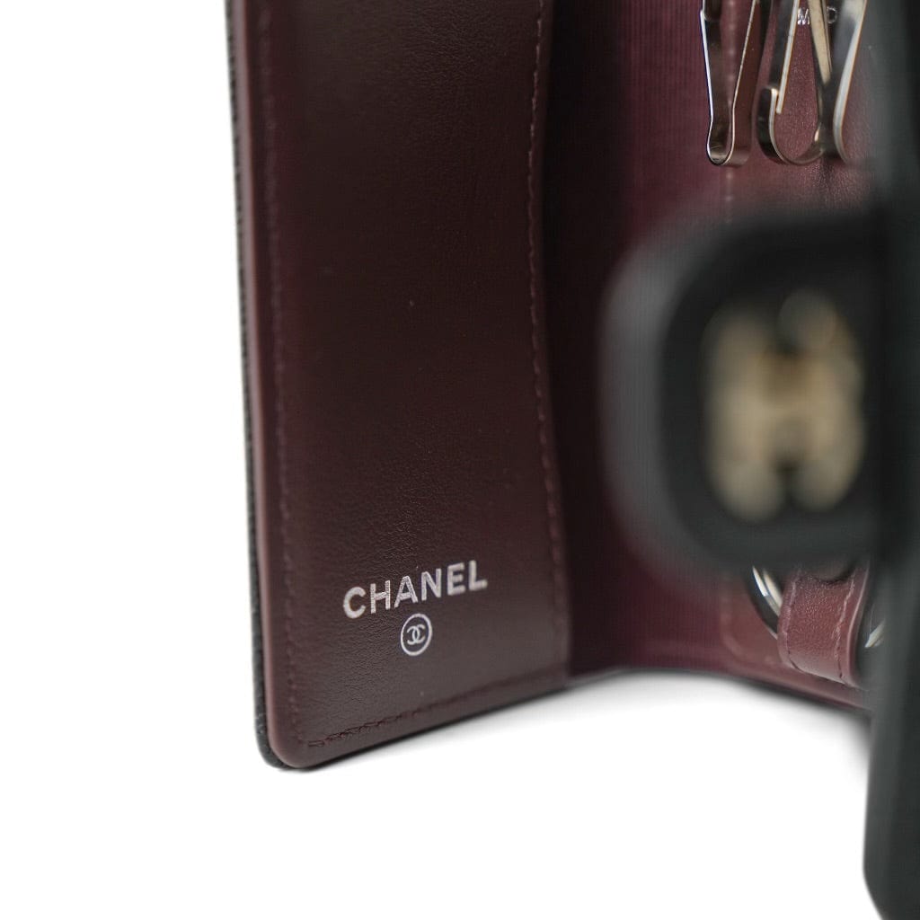 21K Black Caviar Quilted Classic Flap Key Holder Silver Hardware