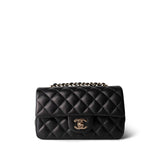 21K Black Lambskin Quilted Mini Rectangular Flap LGHW