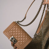 21K Caramel Boy Bag Small Caviar Quilted LGHW
