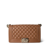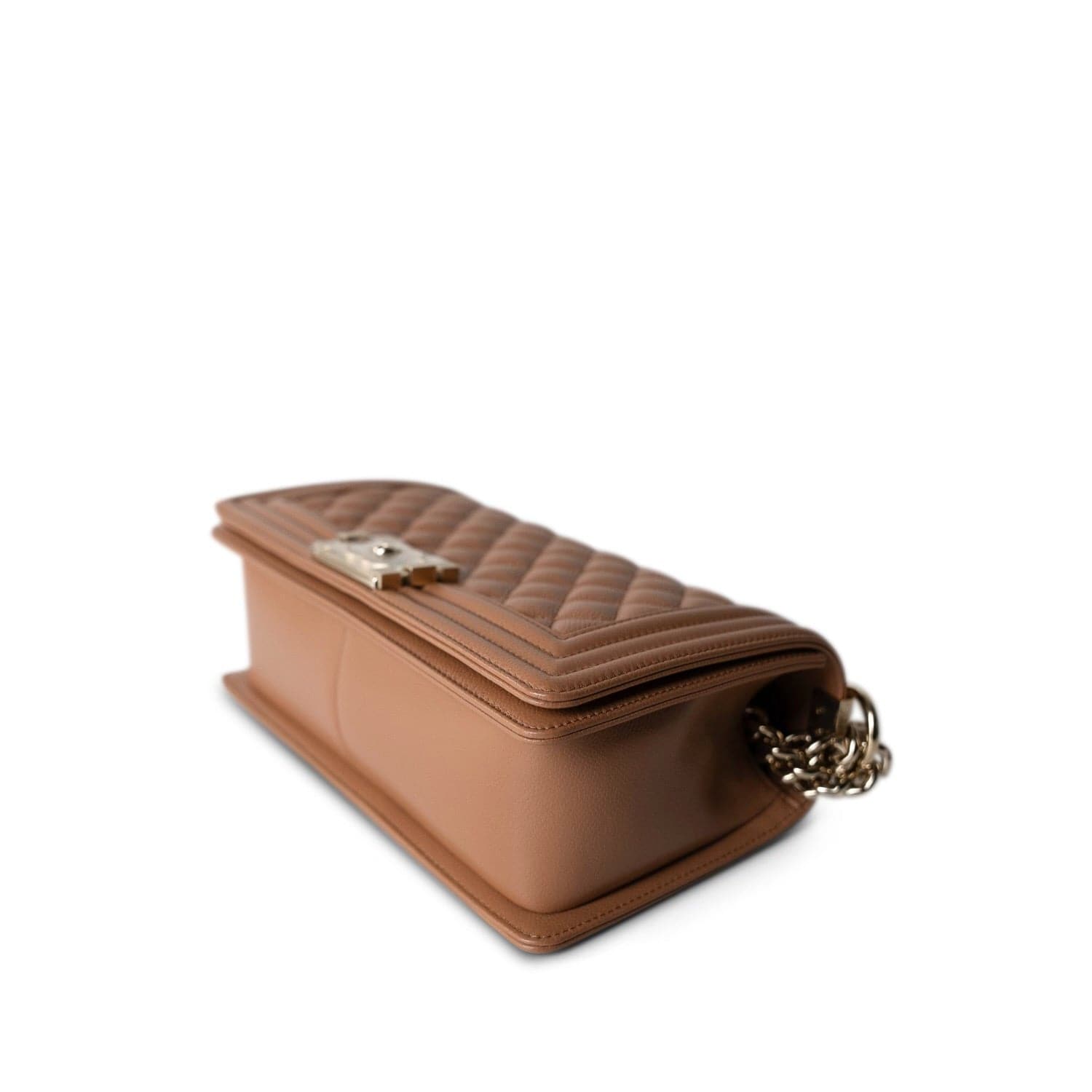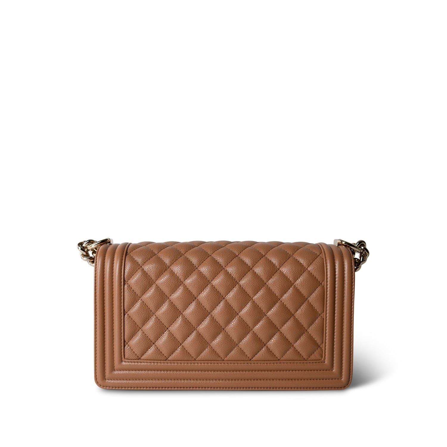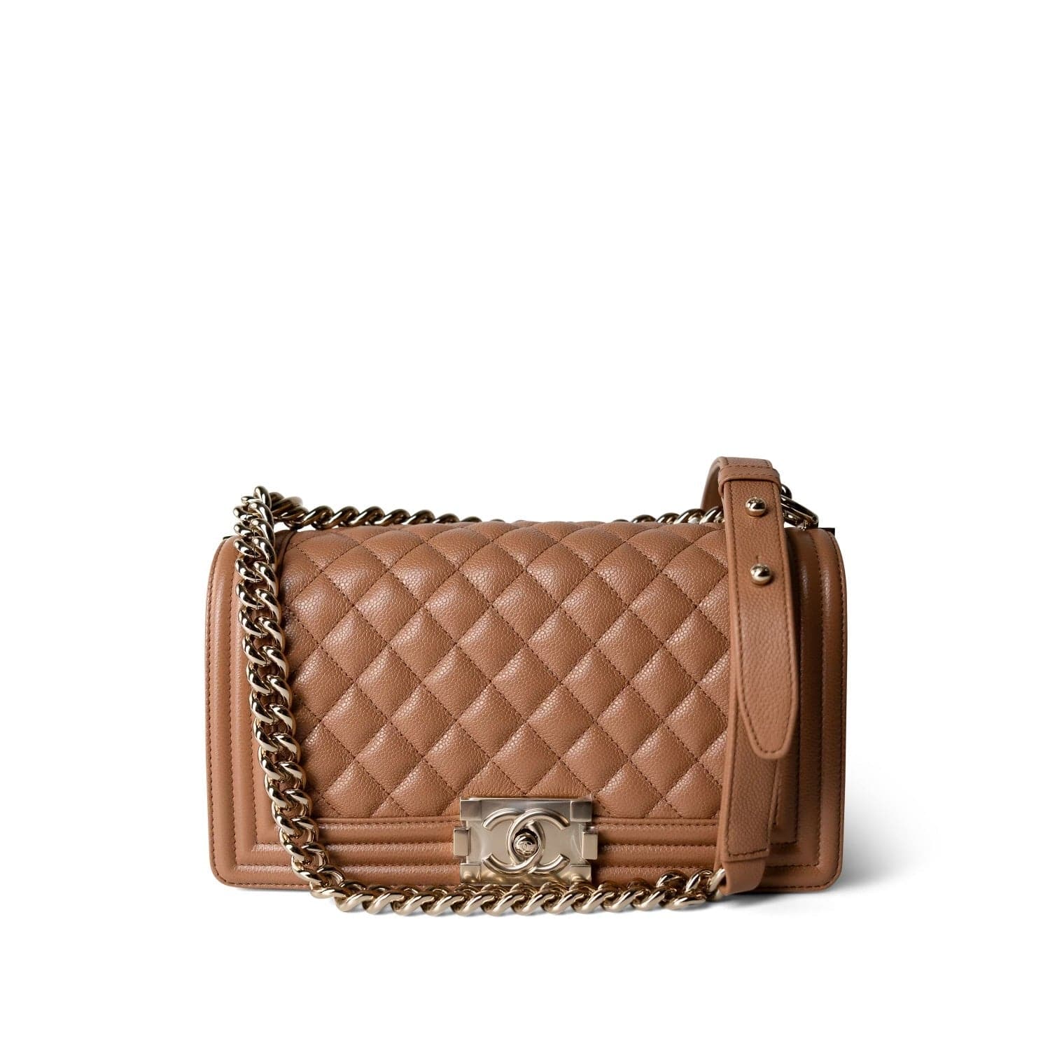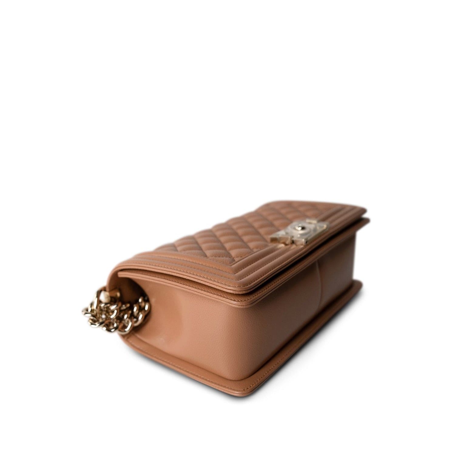 21K Caramel Caviar Quilted Boy Bag Medium Light Gold Hardware