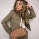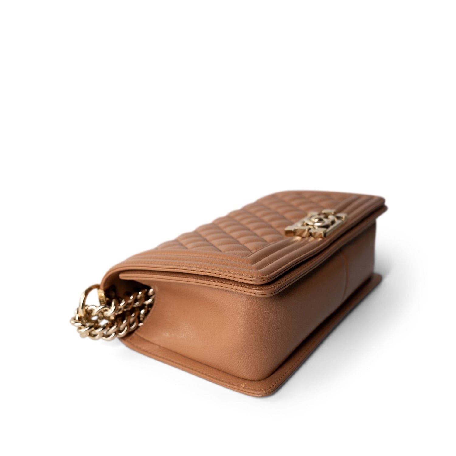 21K Caramel Caviar Quilted Boy Bag Old Medium Light Gold Hardware