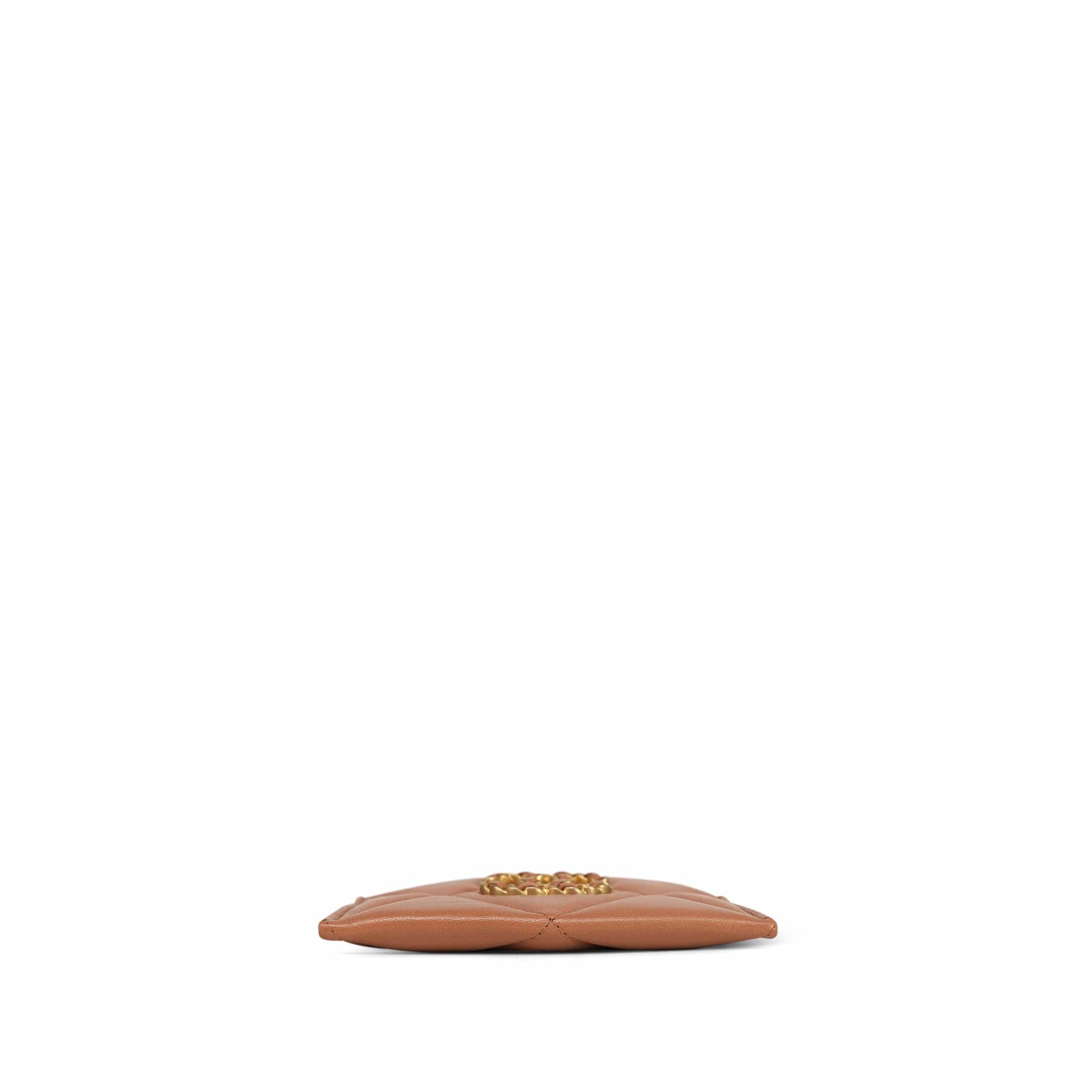 21K Caramel Lambskin Quilted 19 Card Holder Aged Gold Hardware