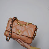 21K Caramel Lambskin Quilted 19 Flap Small MHW