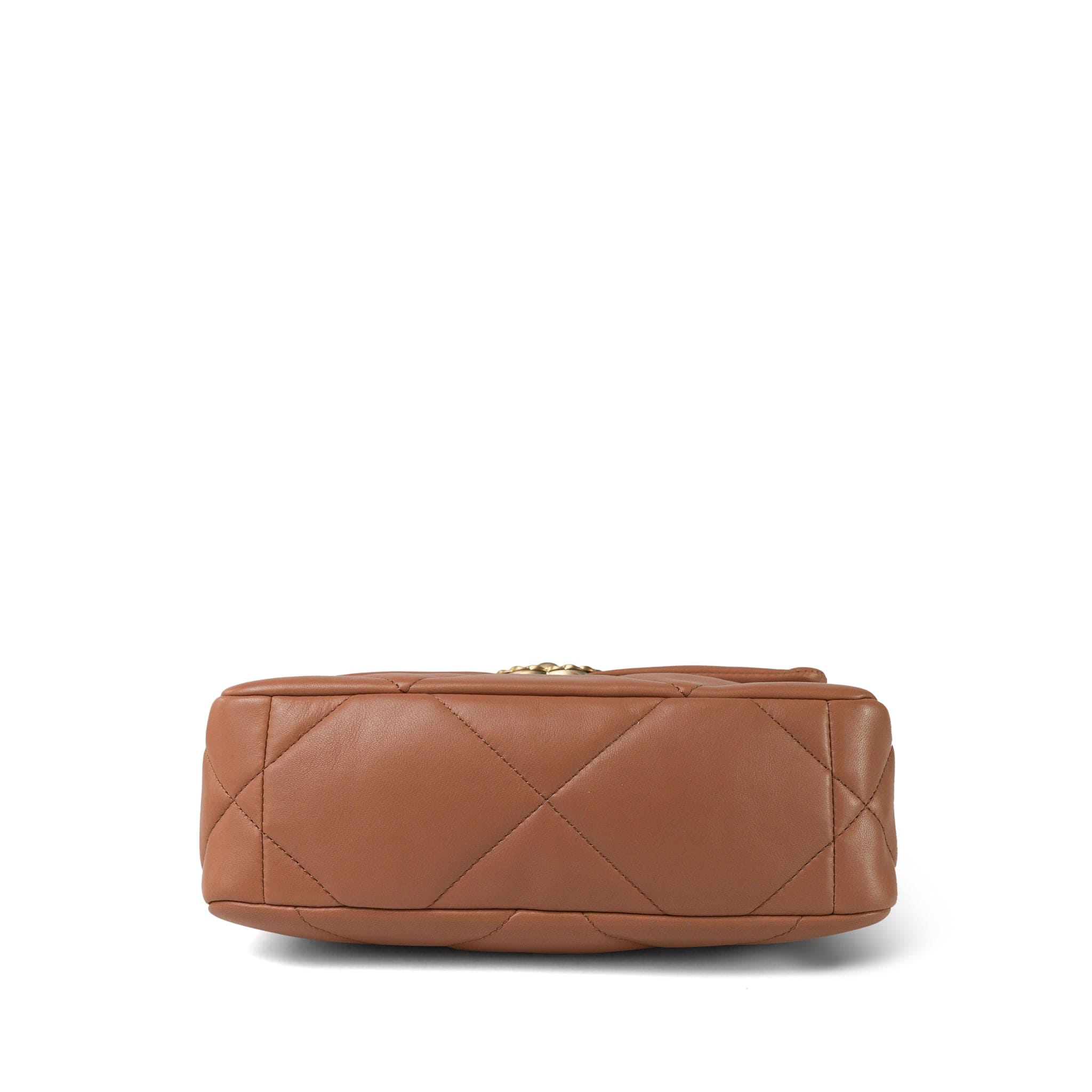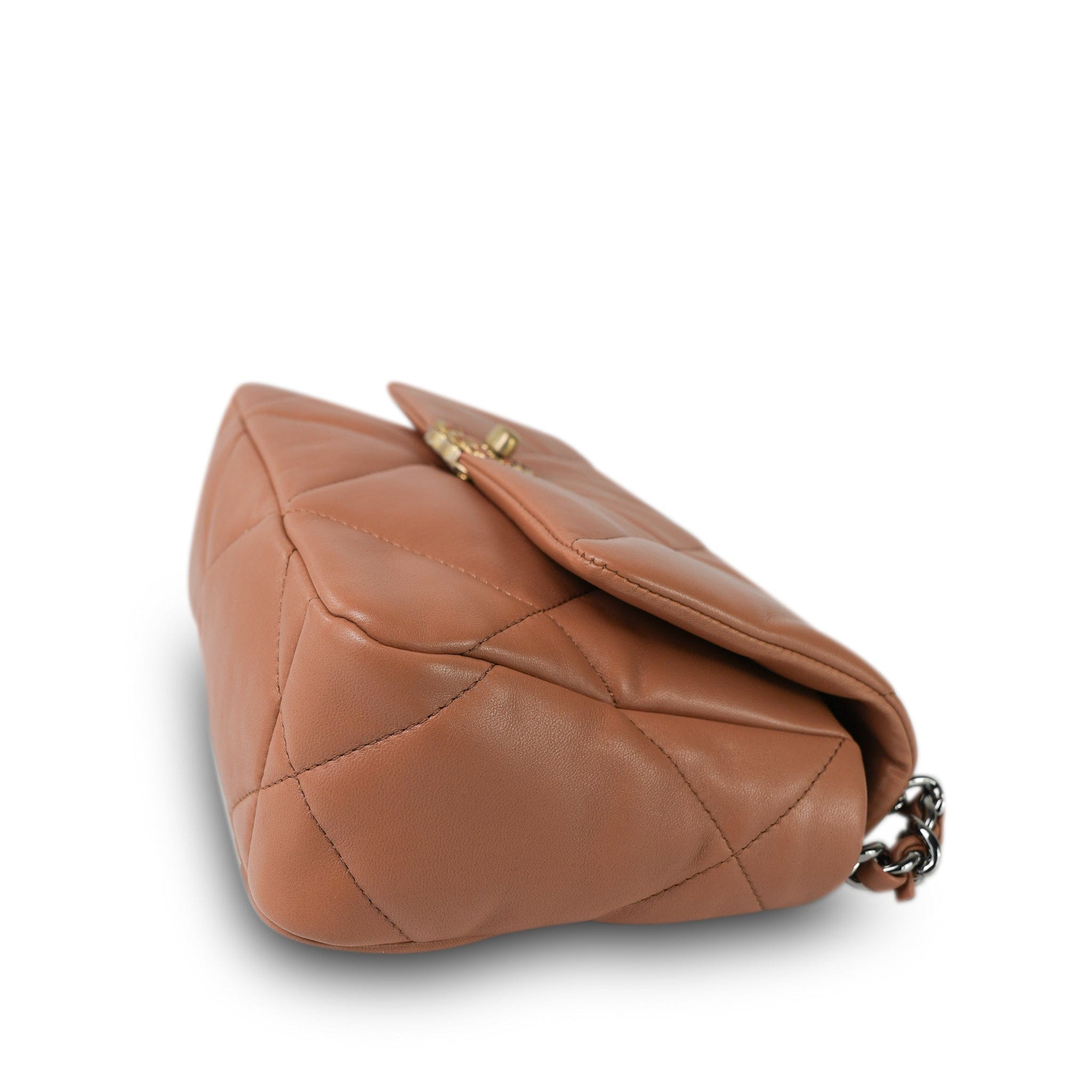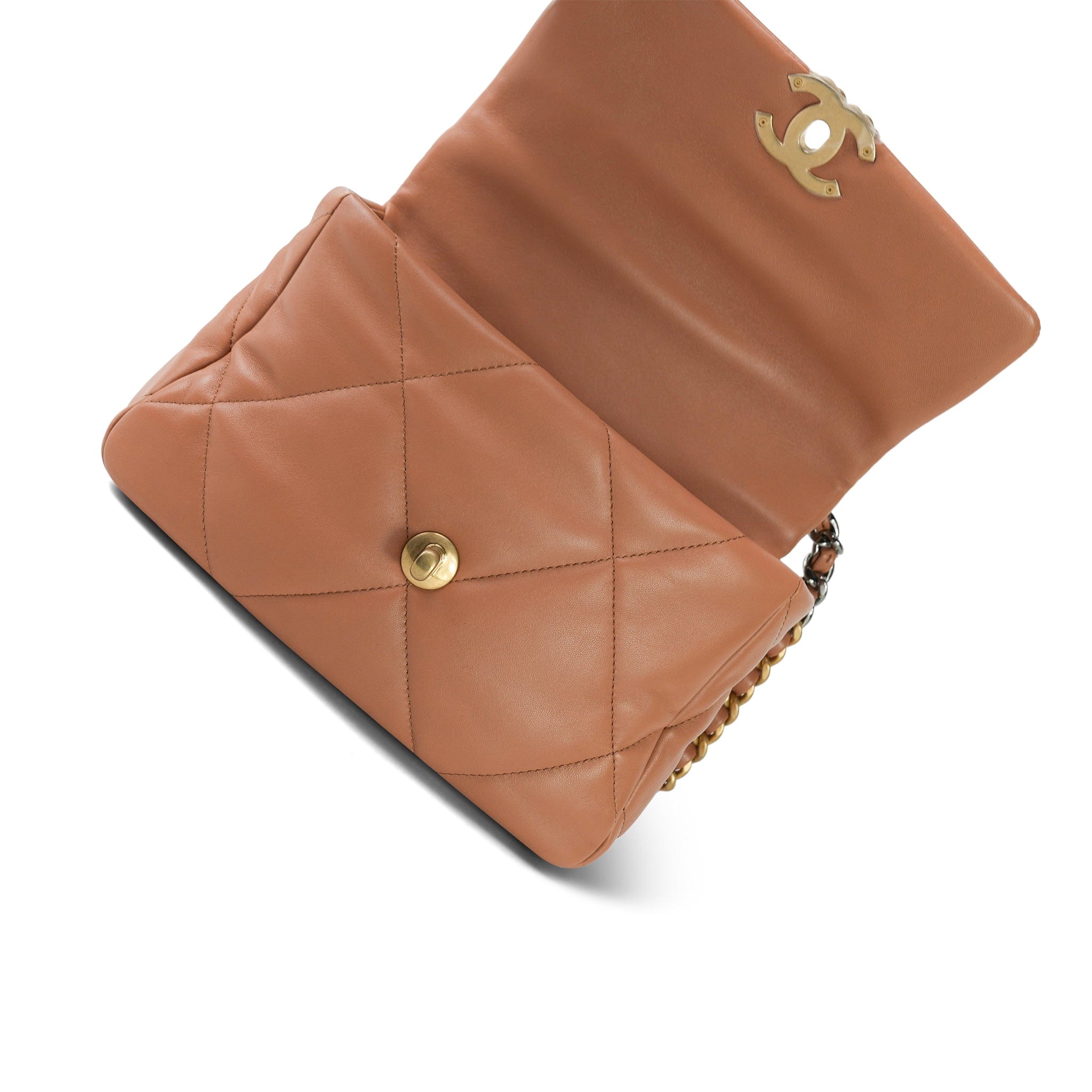 21K Caramel Lambskin Quilted Small 19 Flap Mixed Hardware