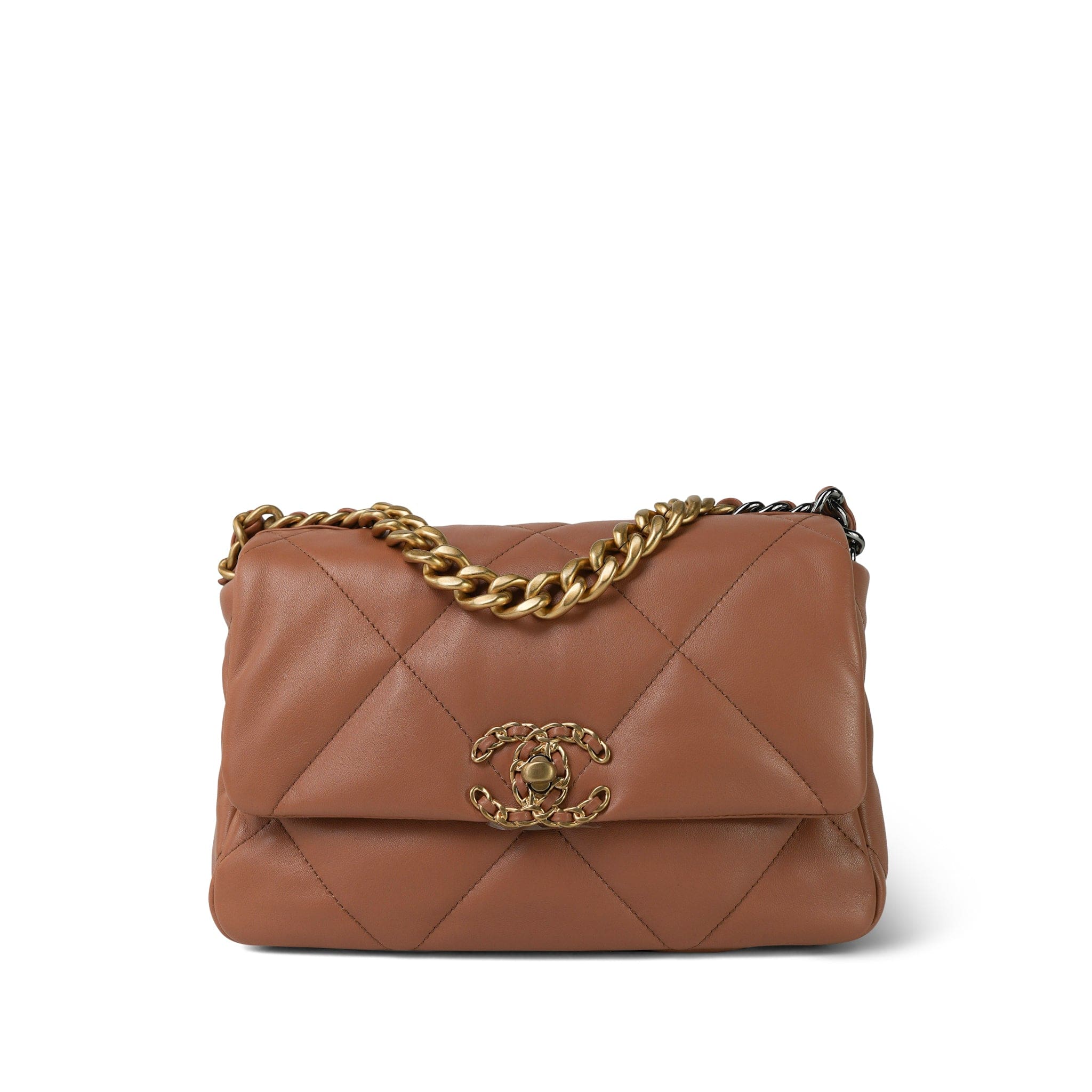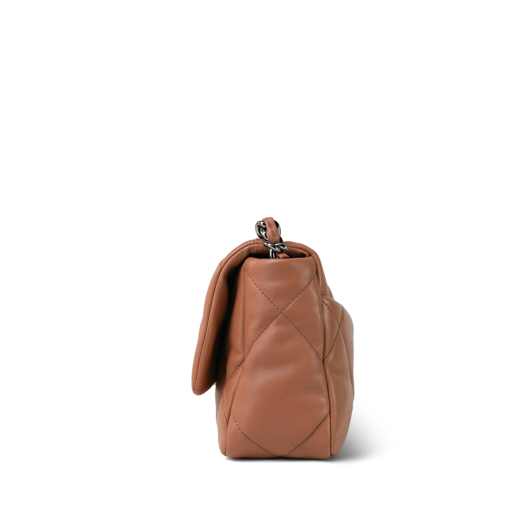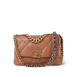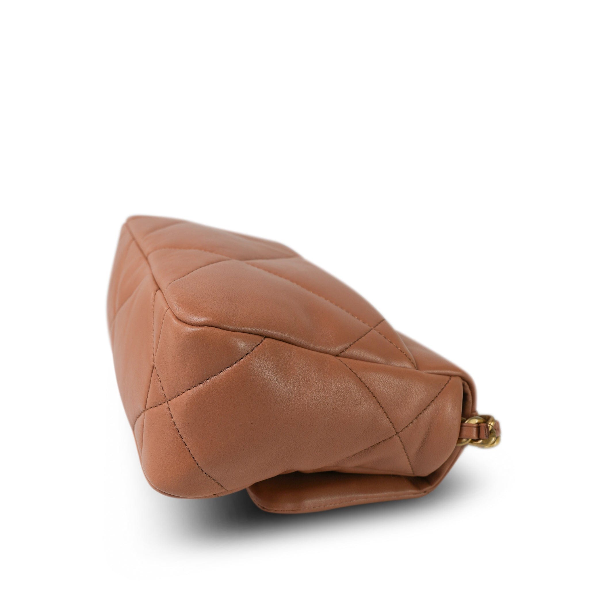 21K Caramel Lambskin Quilted Small 19 Flap Mixed Hardware