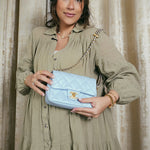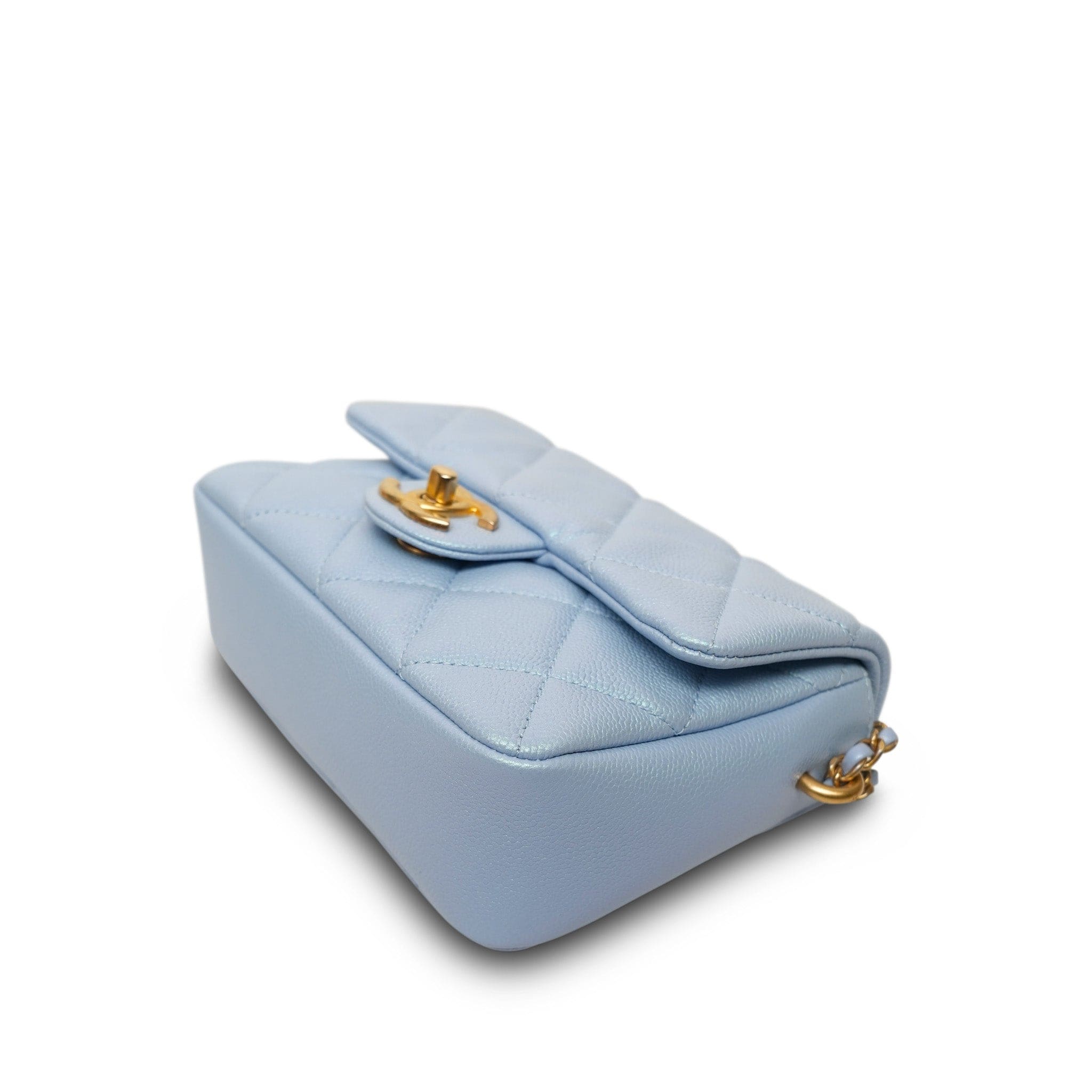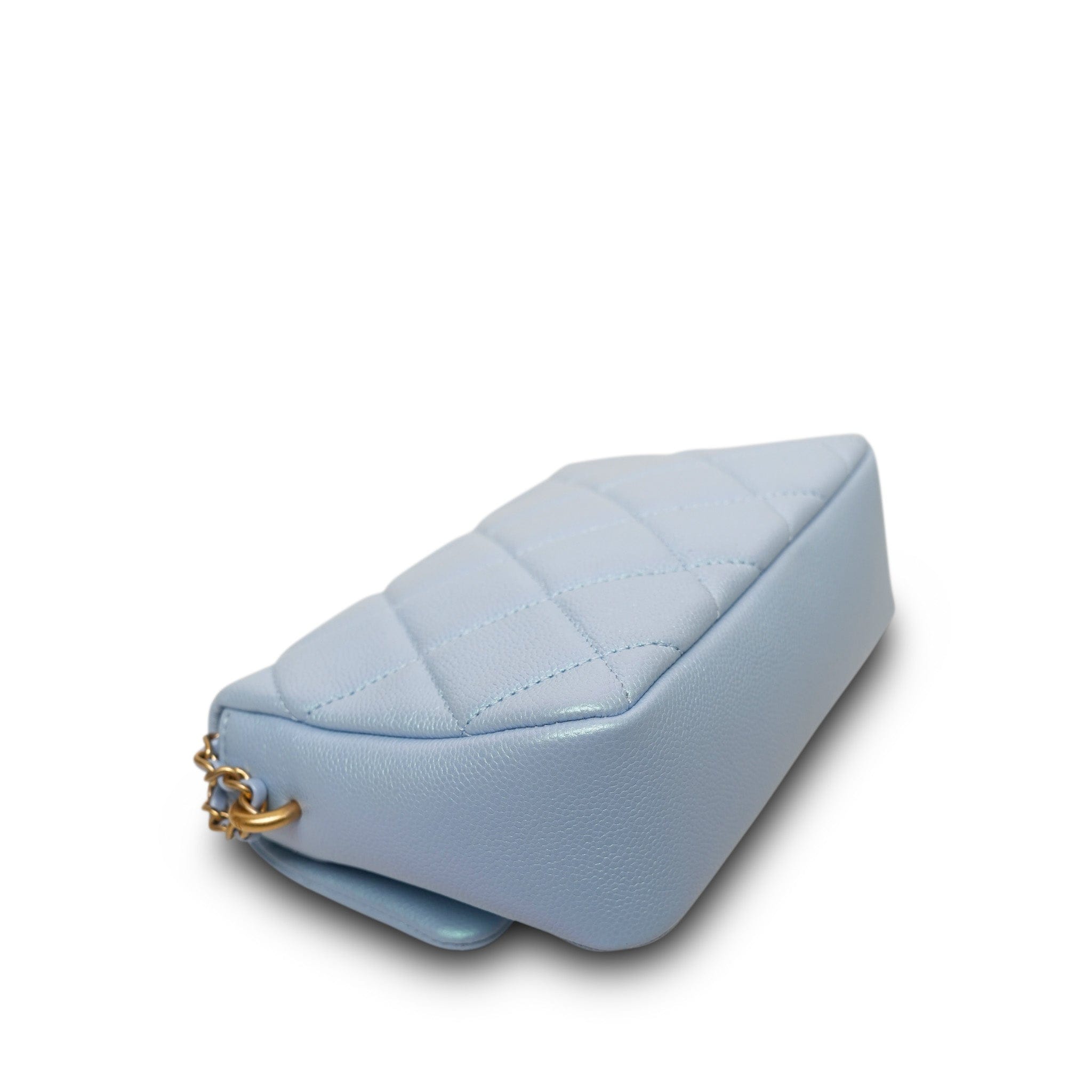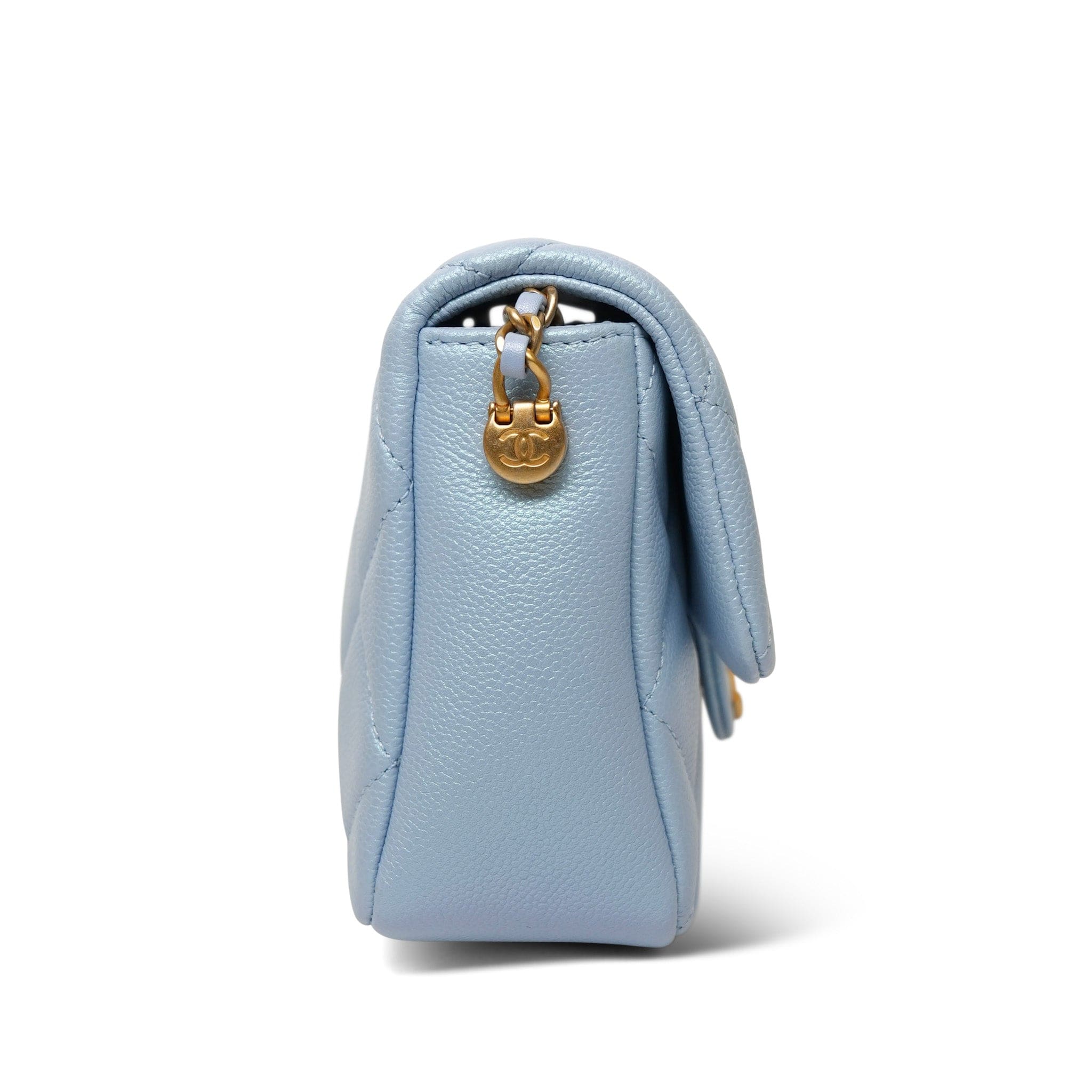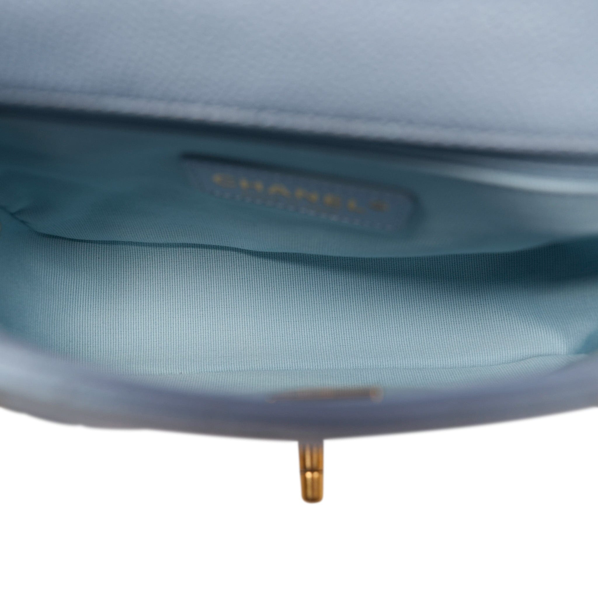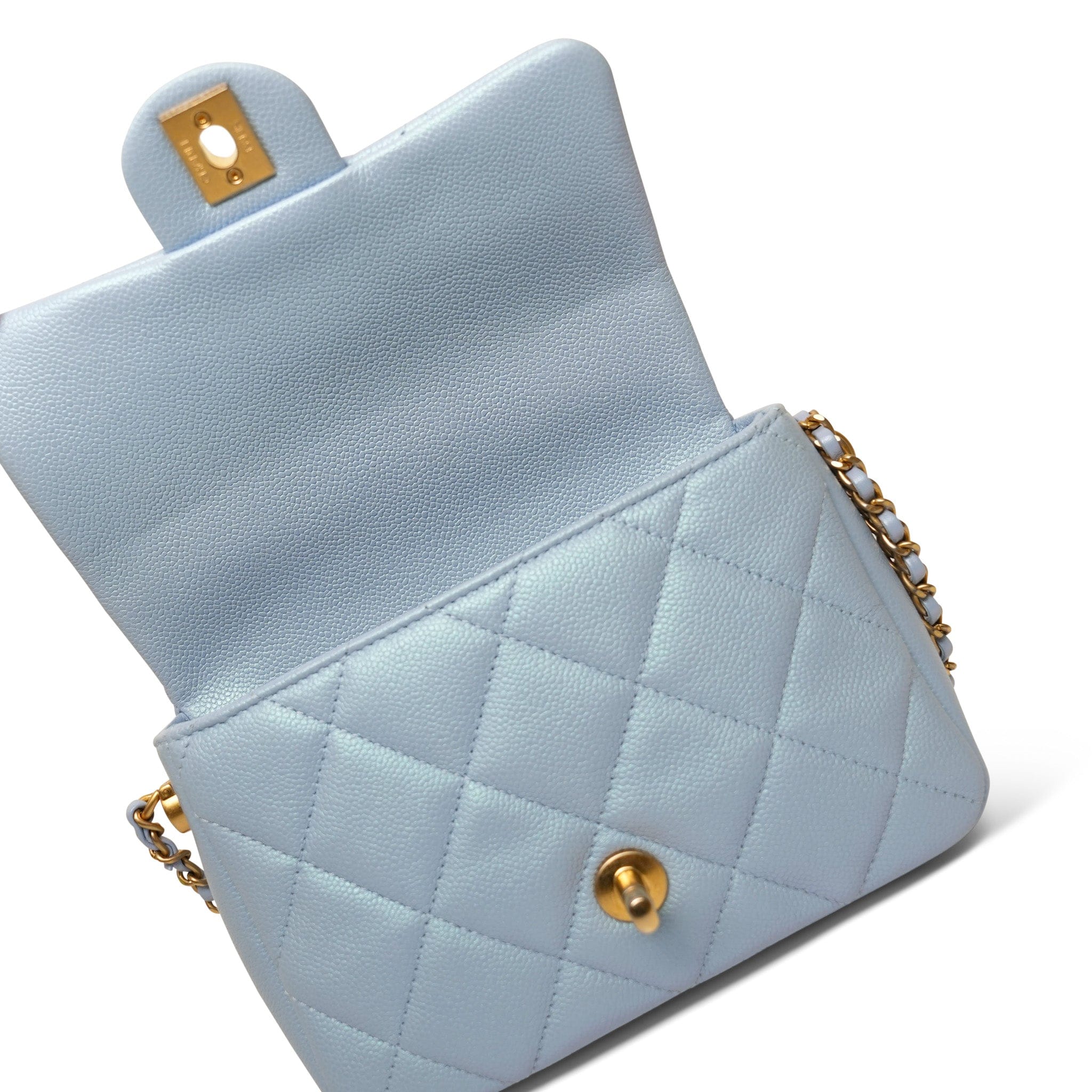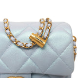21K Iridescent Light Blue Caviar Quilted My Perfect Mini Flap Bag Aged Gold Hardware