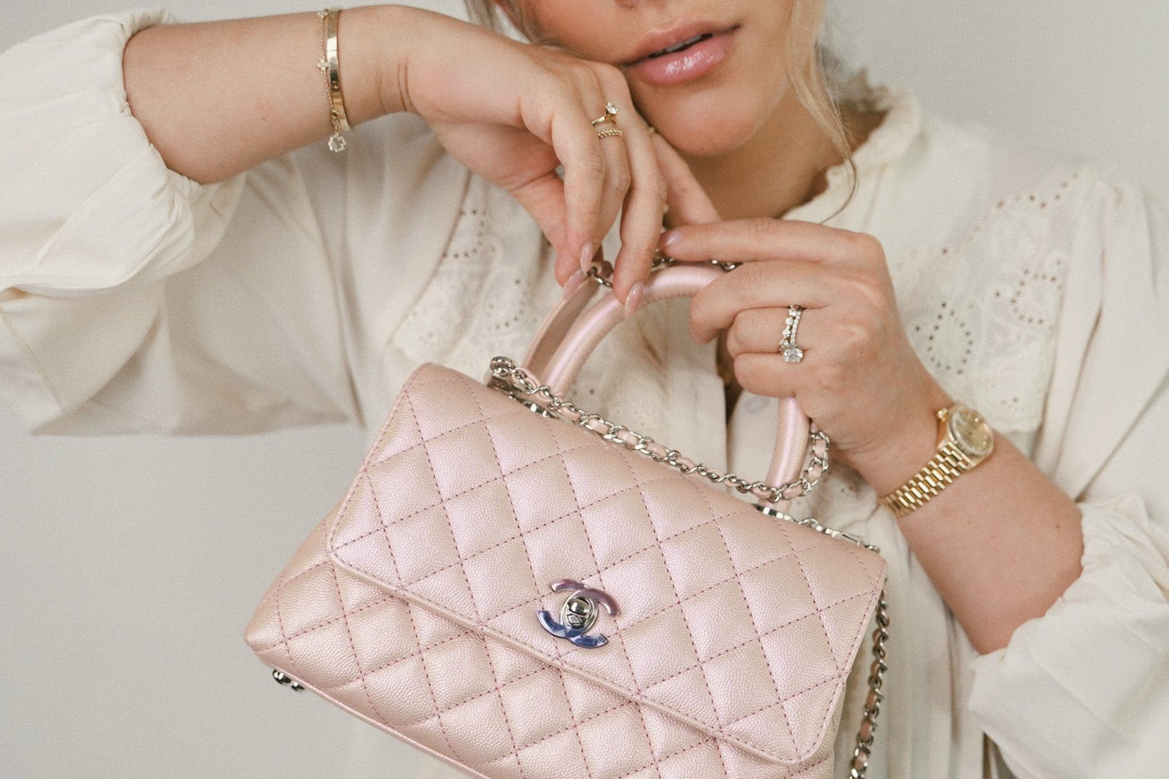 21K Iridescent Pink Caviar Quilted Small Coco Handle