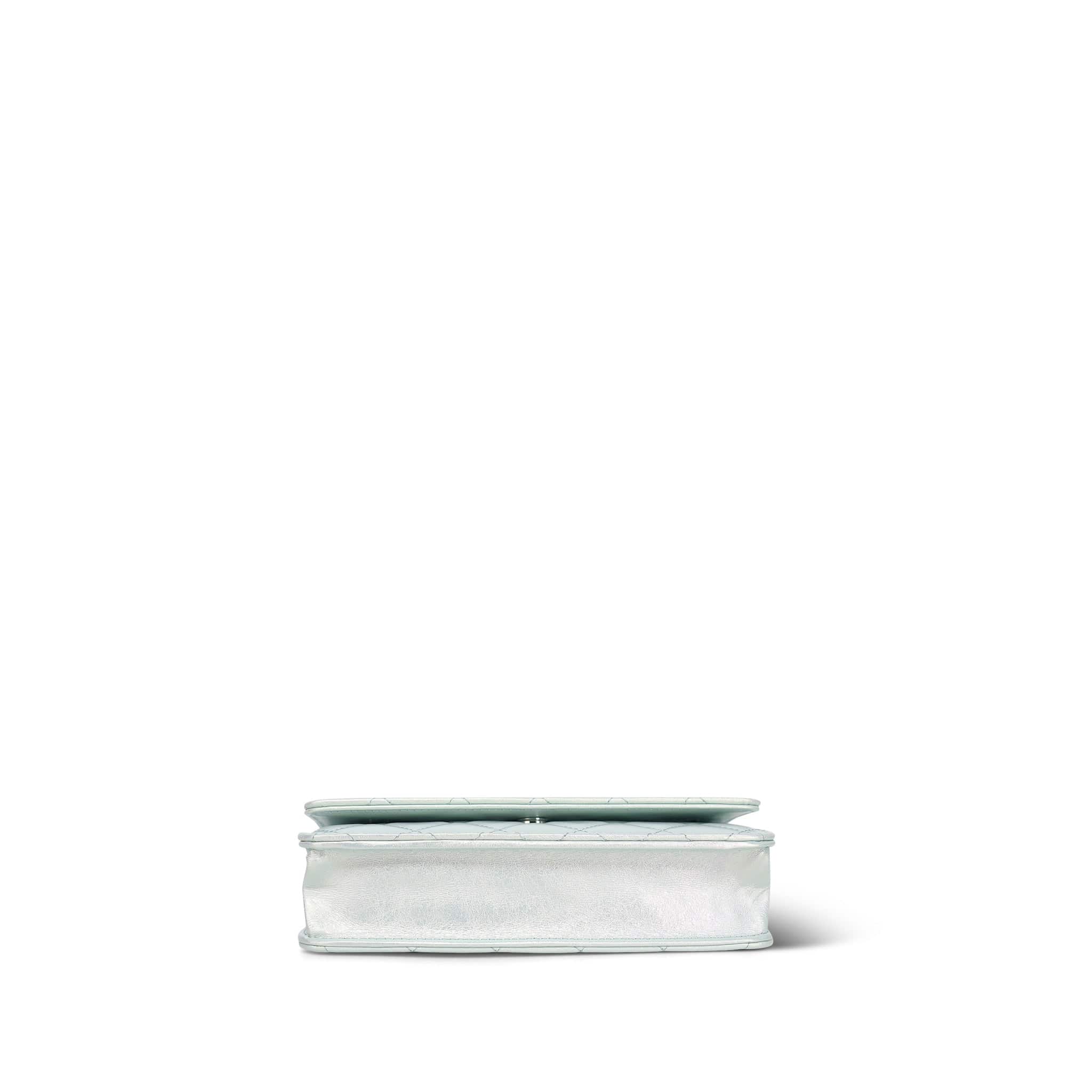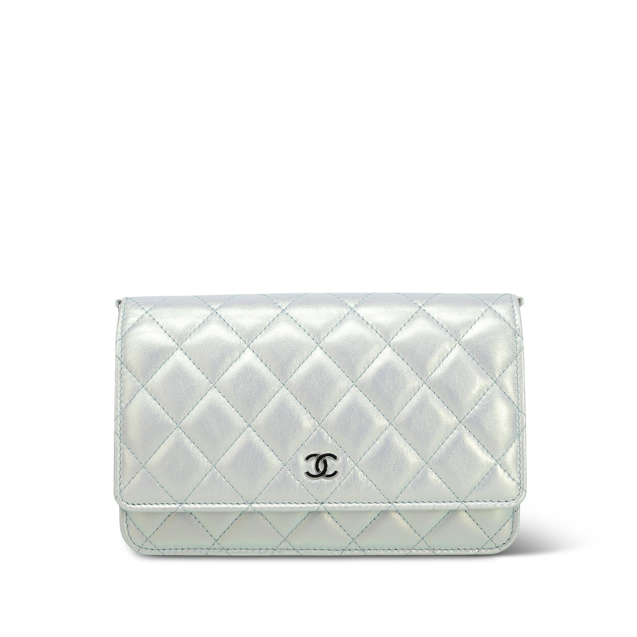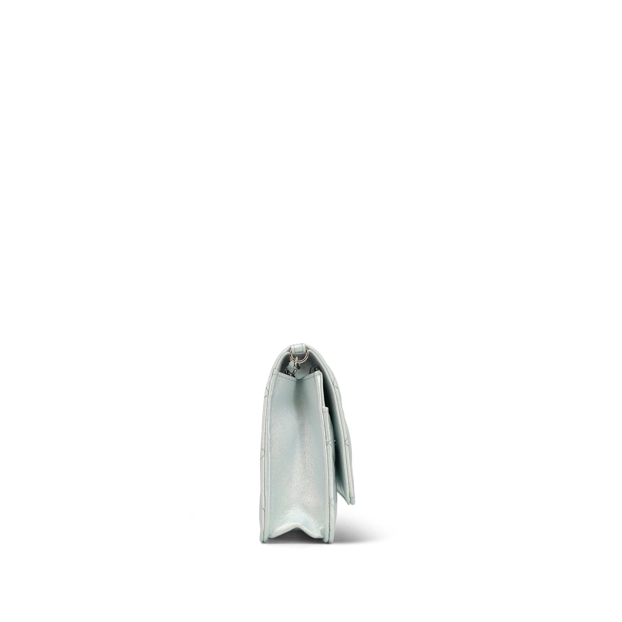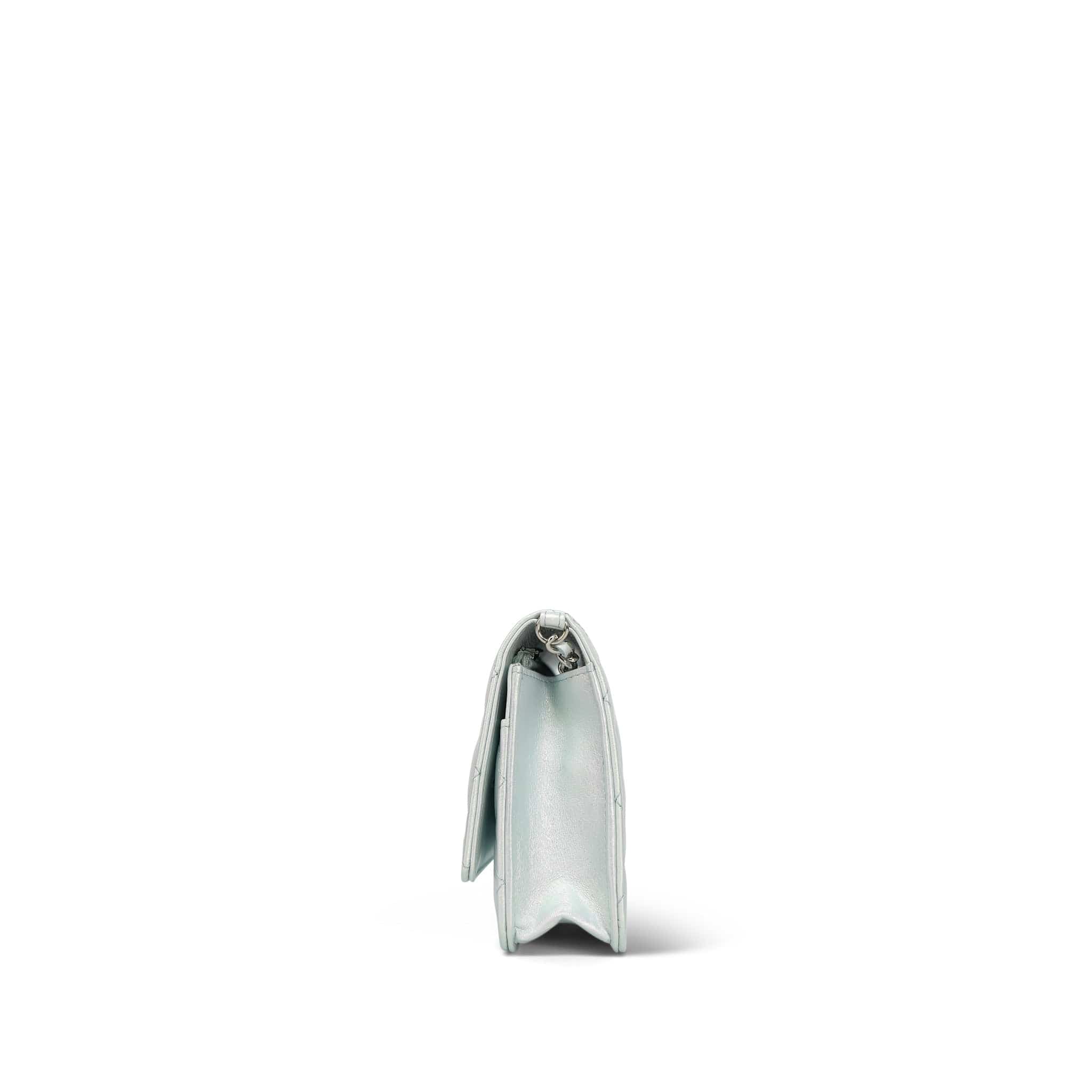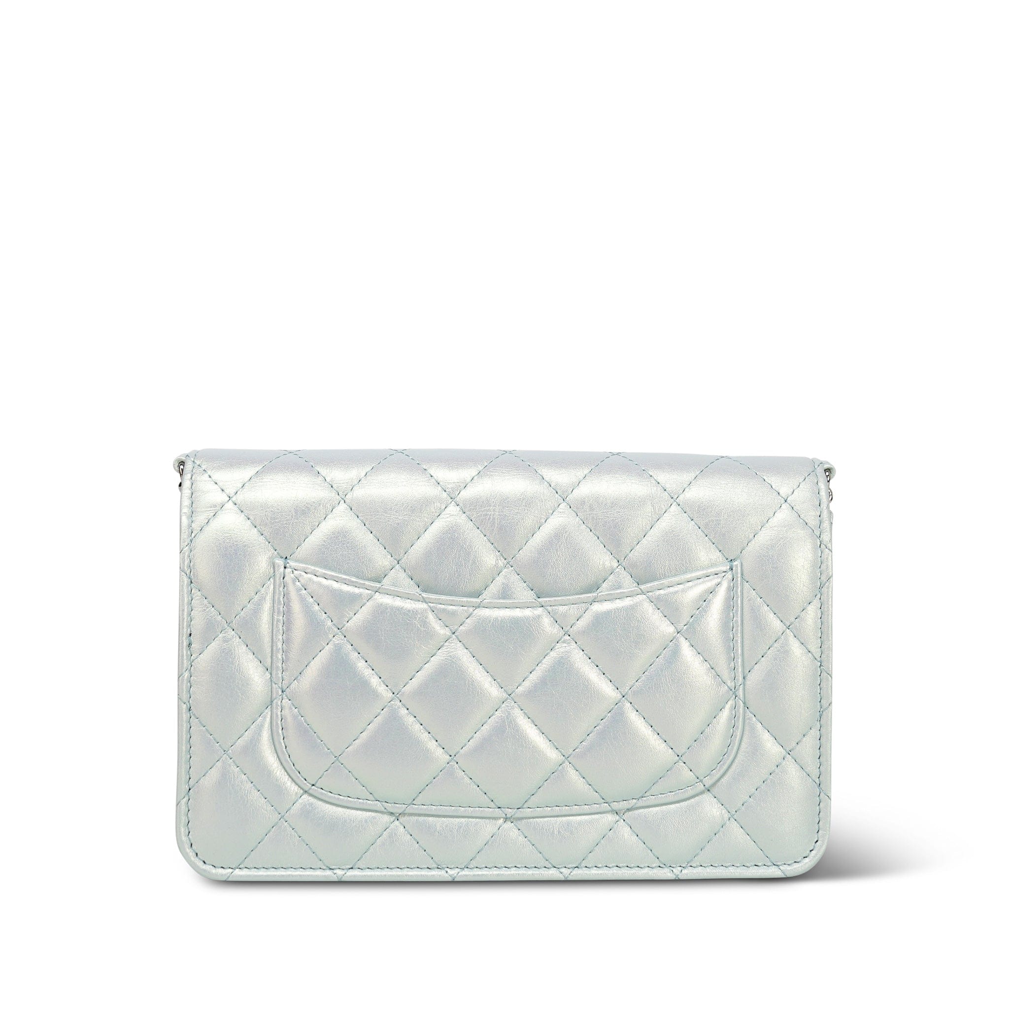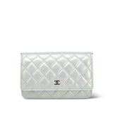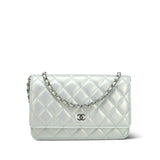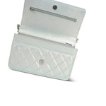 21K Light Blue/ White Iridescent Calfskin Quilted Wallet on Chain WOC Silver Hardware