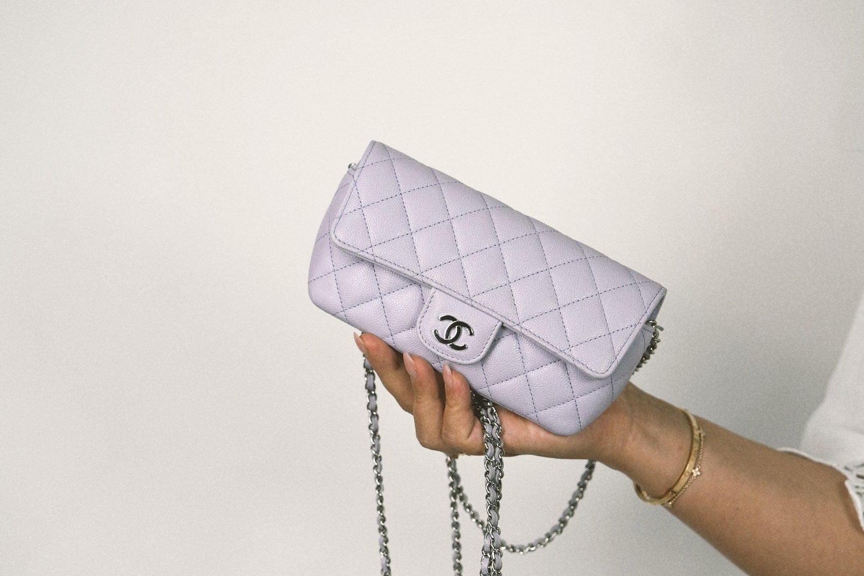 21K Lilac Caviar Quilted Classic Sunglasses Case with Chain SHW