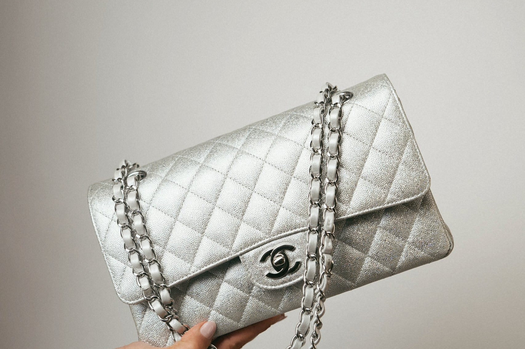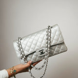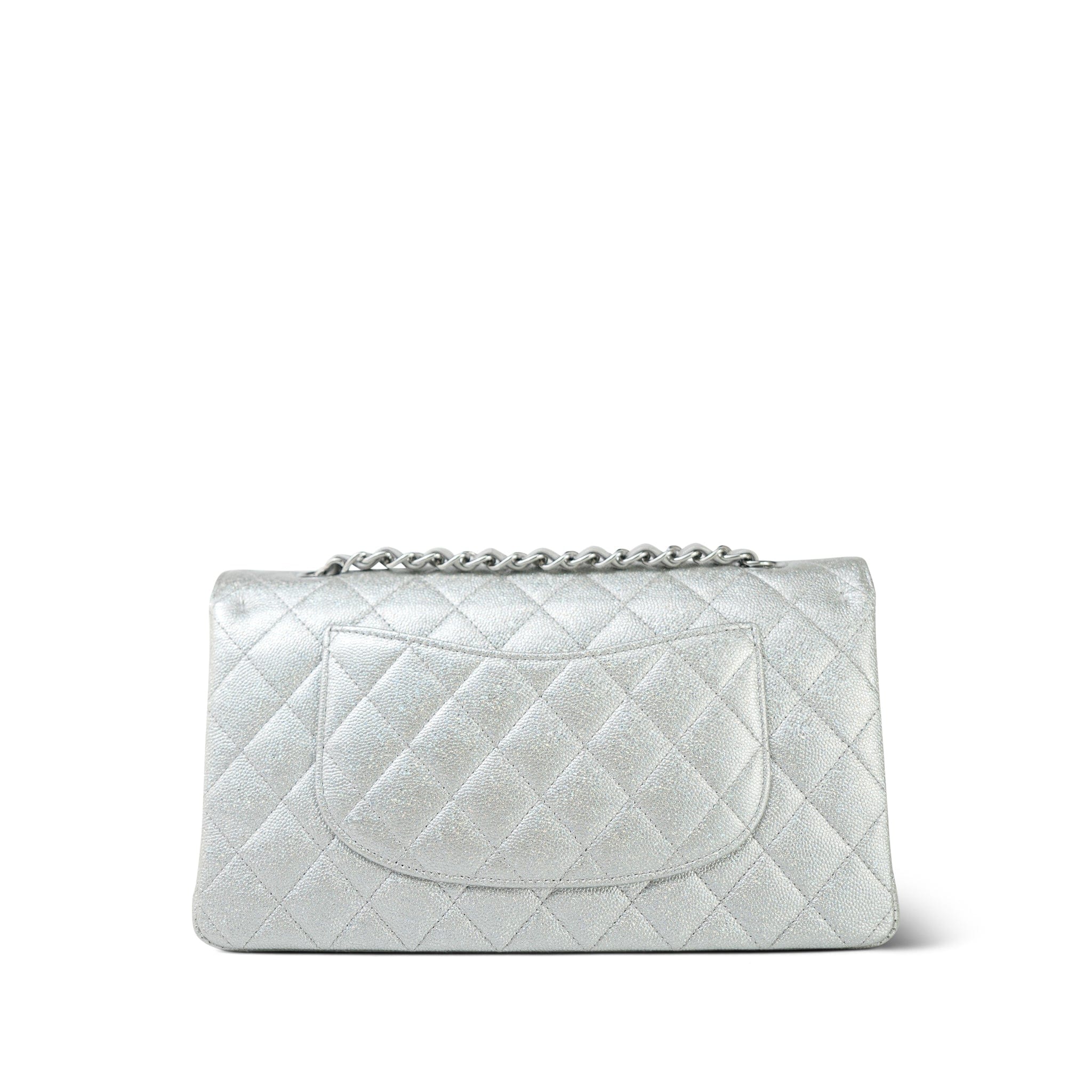 21K Silver Metallic Caviar Quilted Classic Flap Medium Silver Hardware