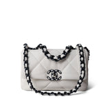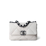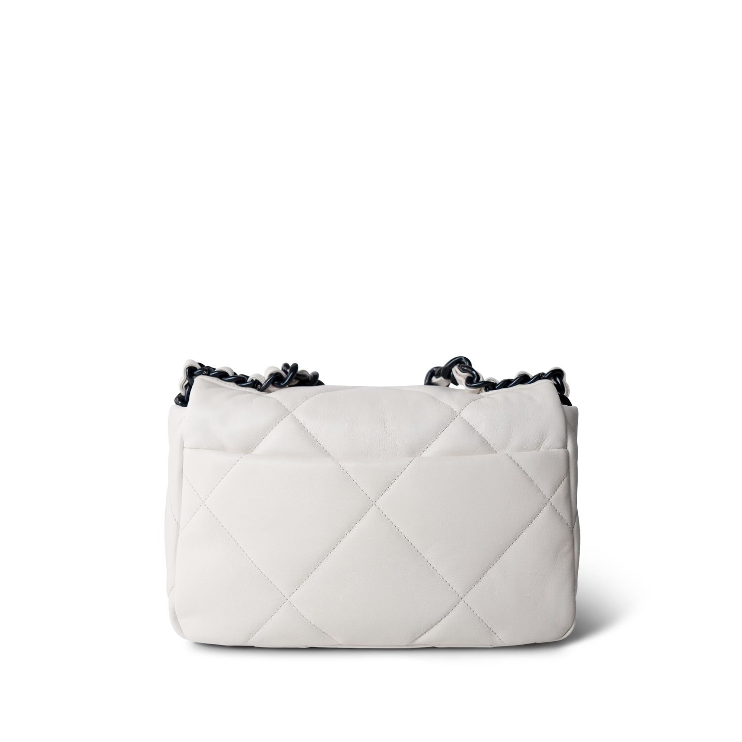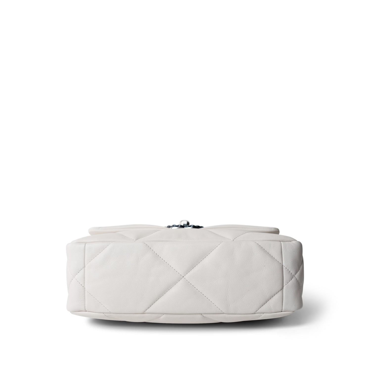21K White Lambskin Quilted 19 Flap Small Black Hardware