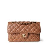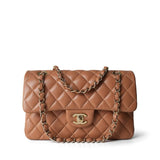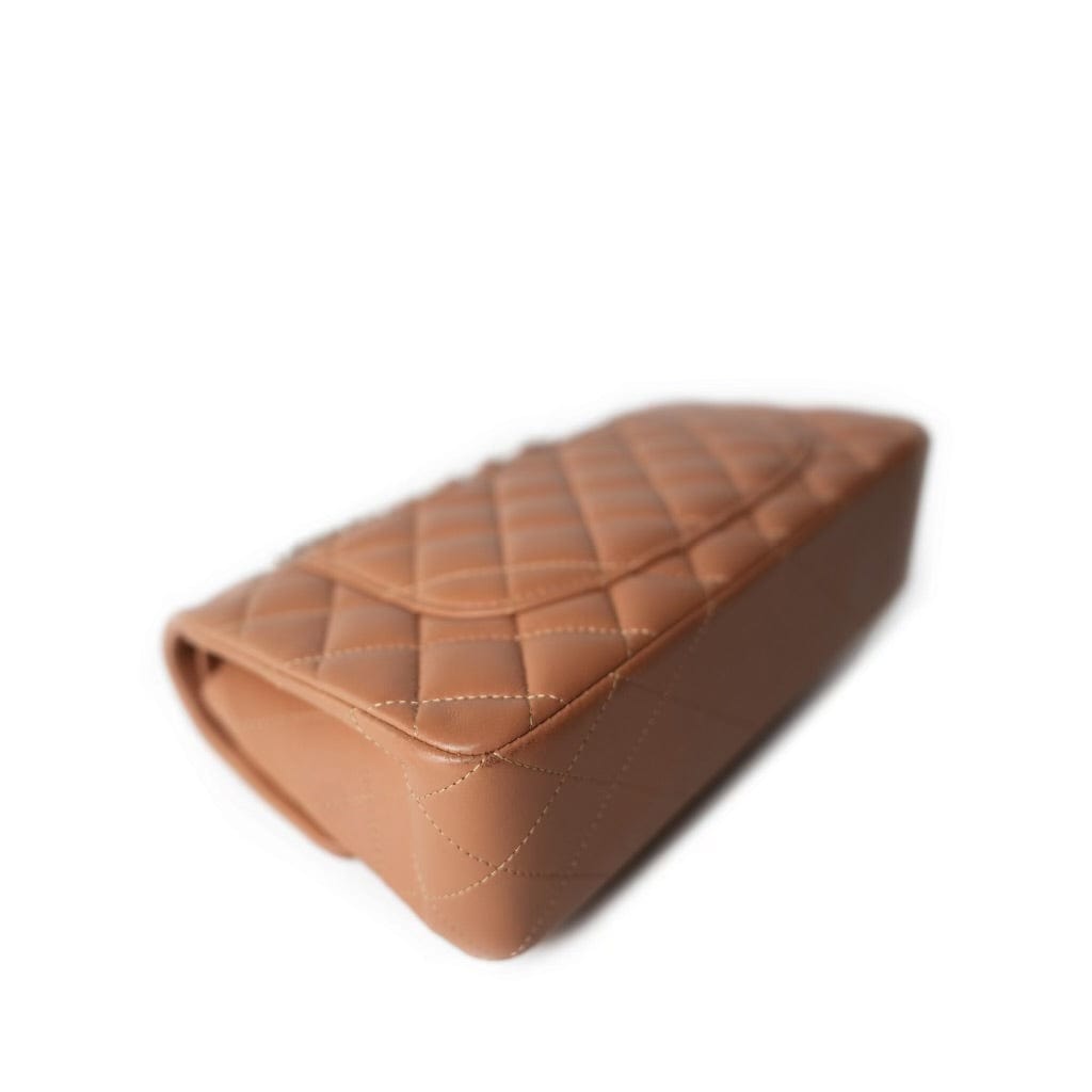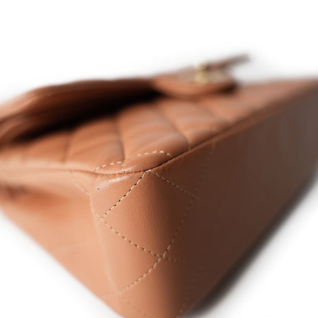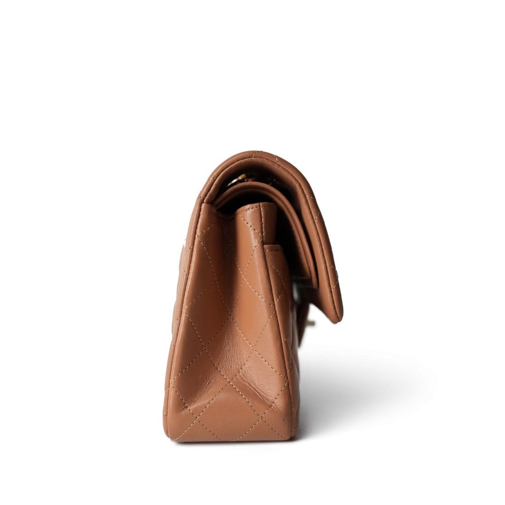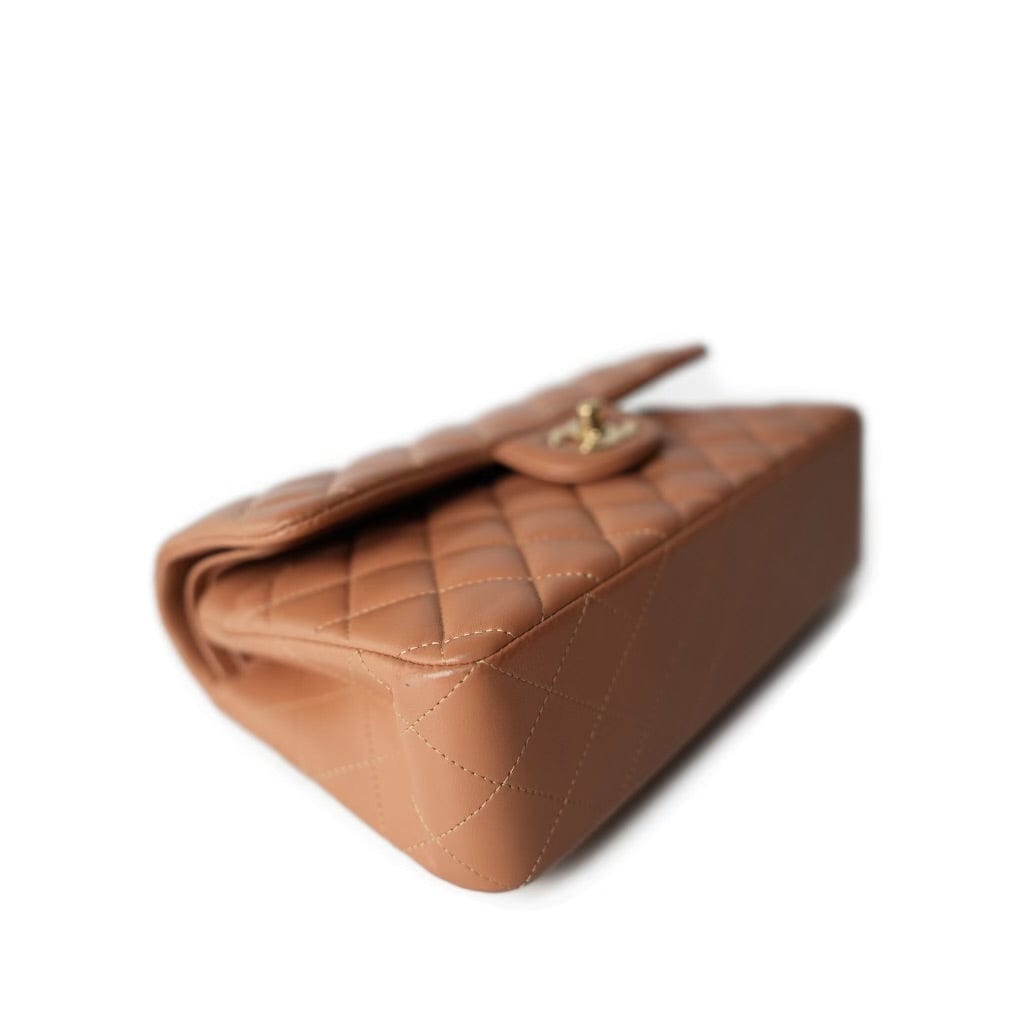 21P Caramel Lambskin Quilted Classic Flap Small LGHW