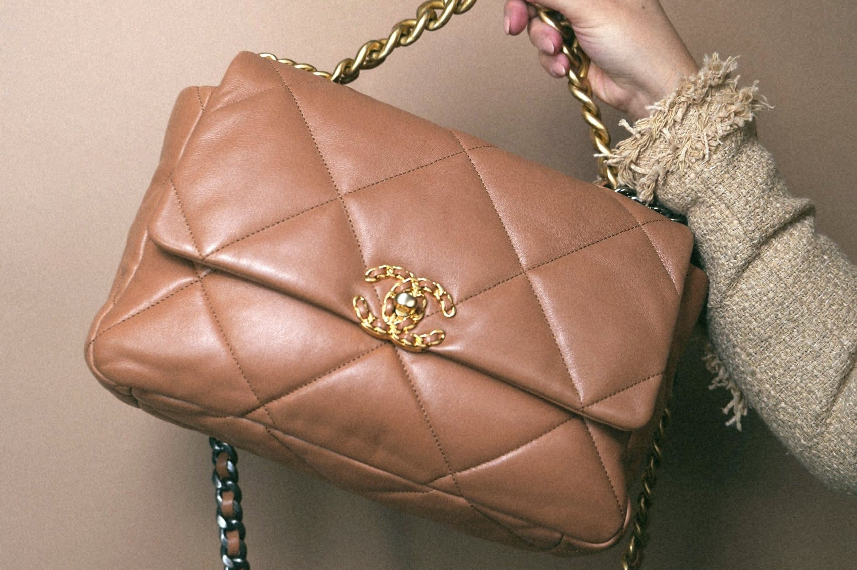 21P Caramel Lambskin Quilted Large 19 Flap MHW