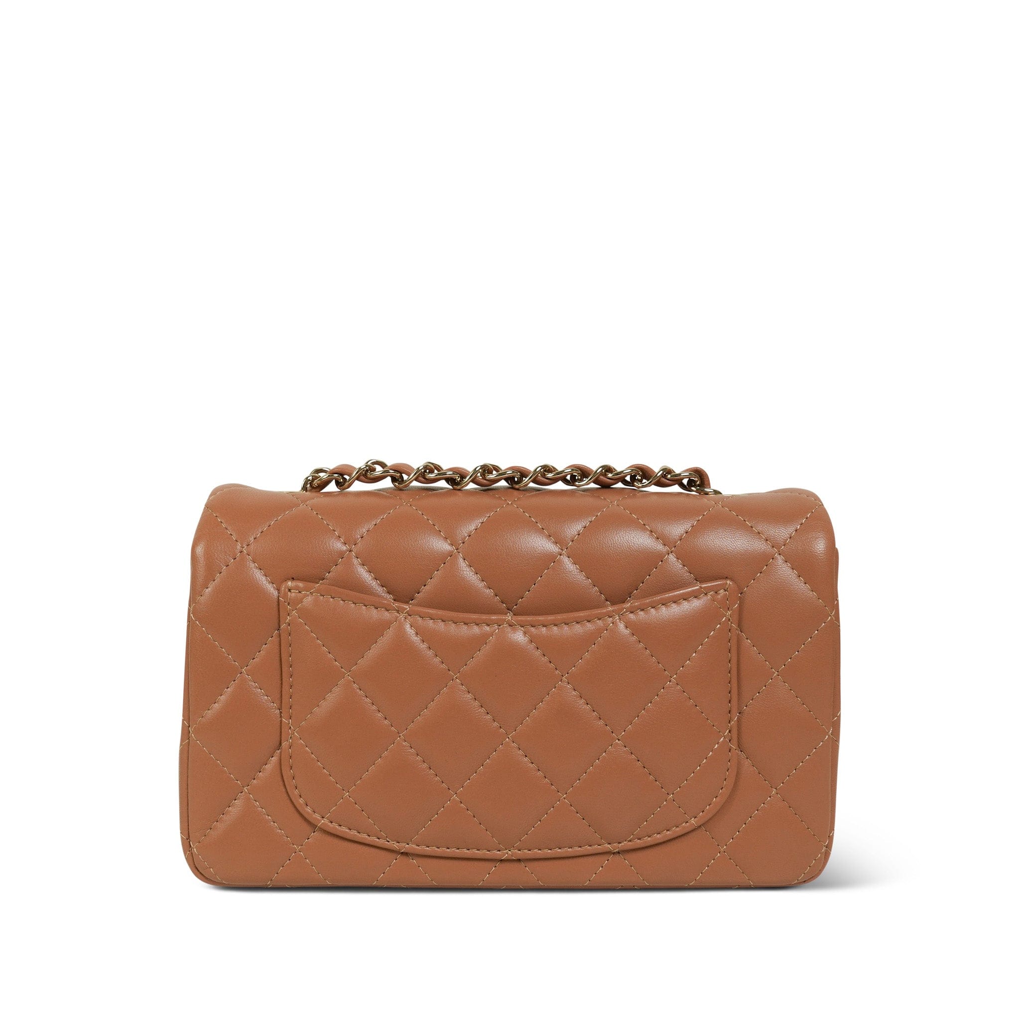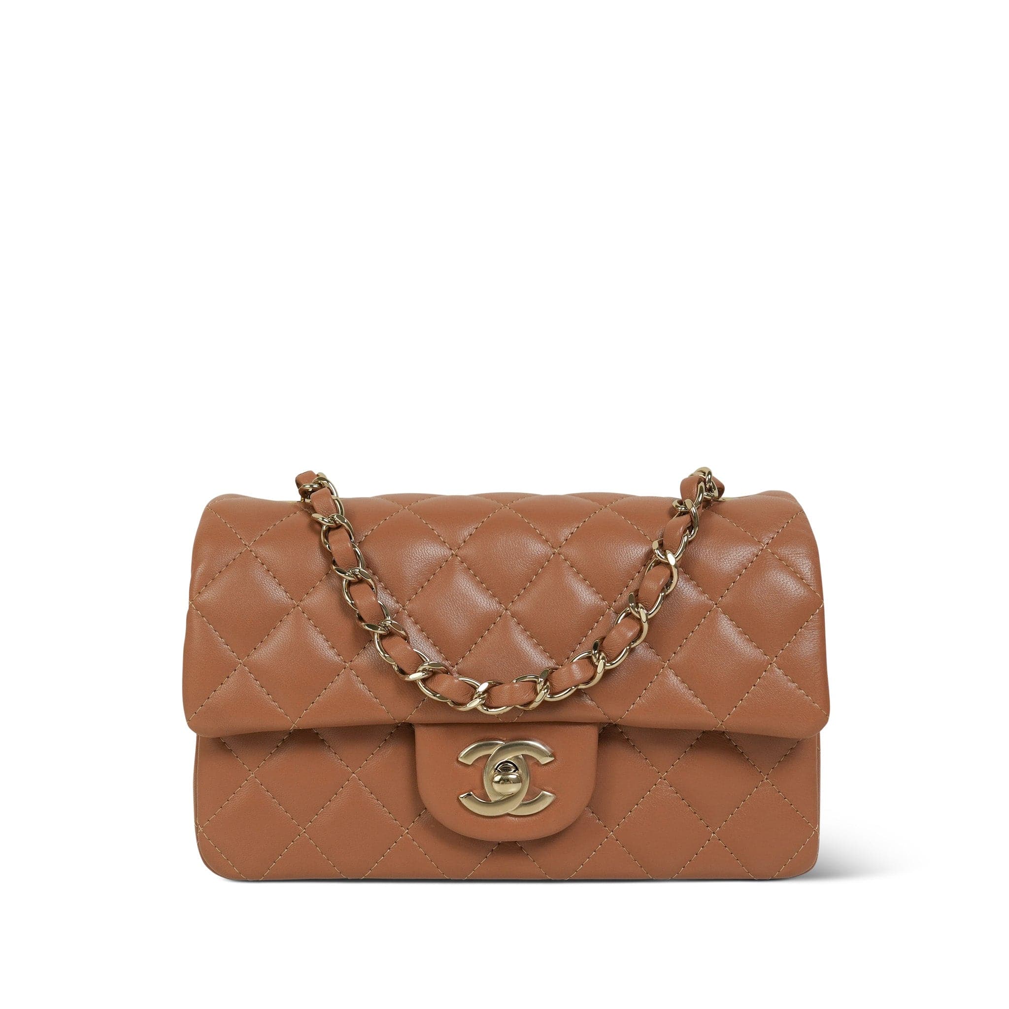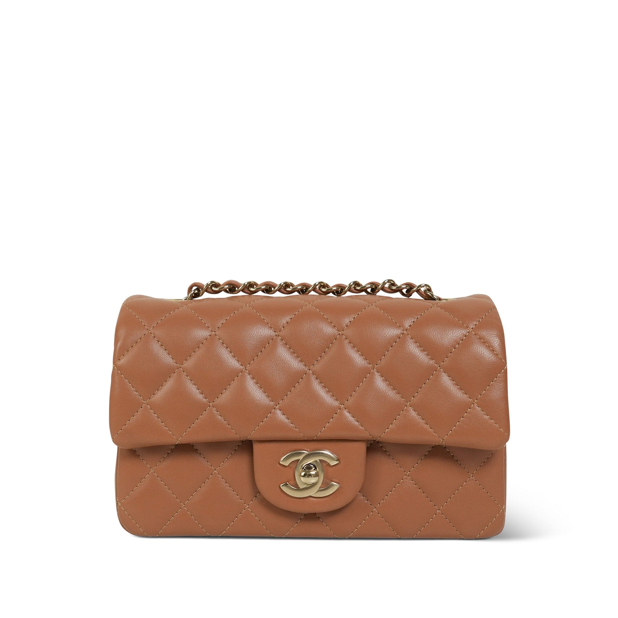 21P Caramel Lambskin Quilted Mini Rectangular Flap LGHW