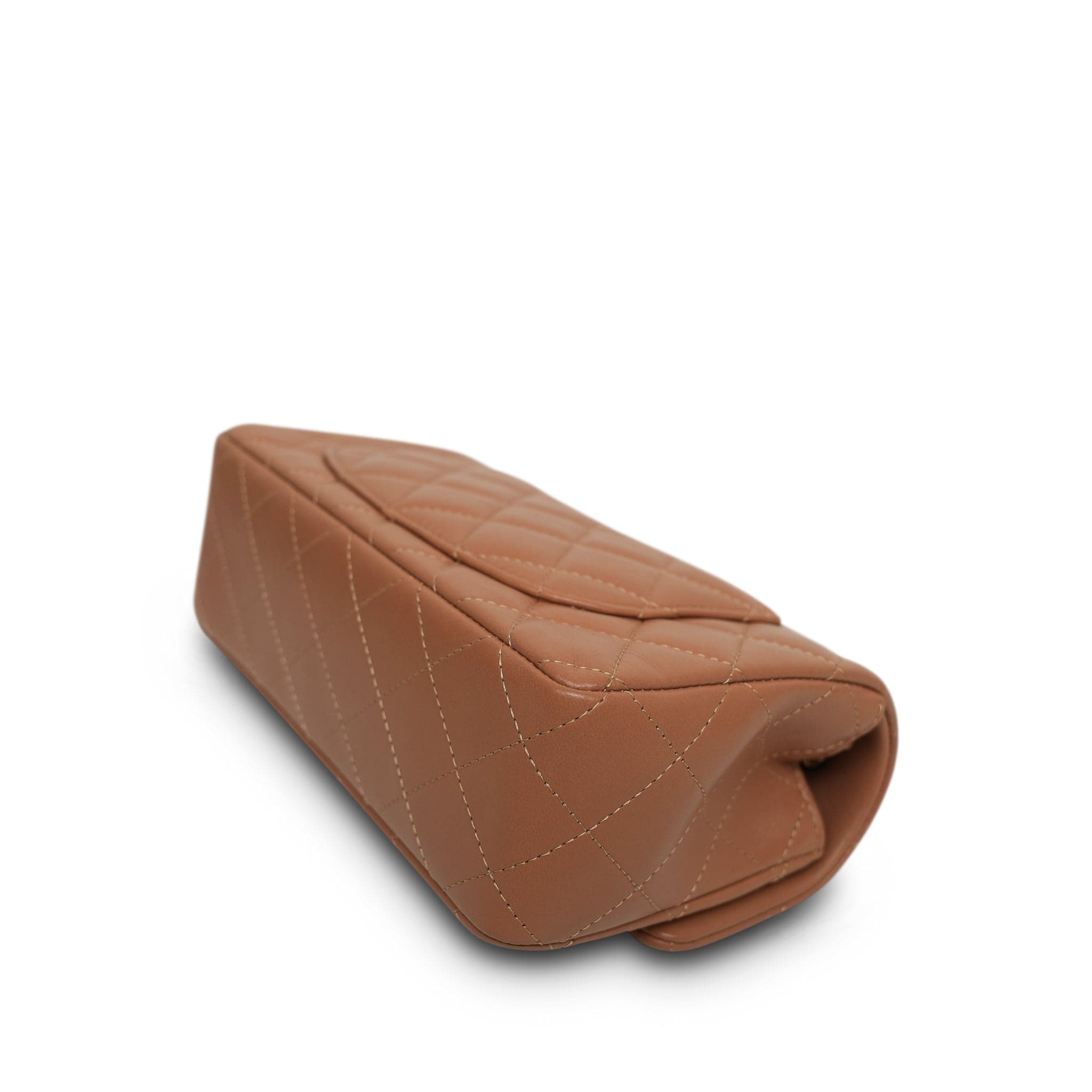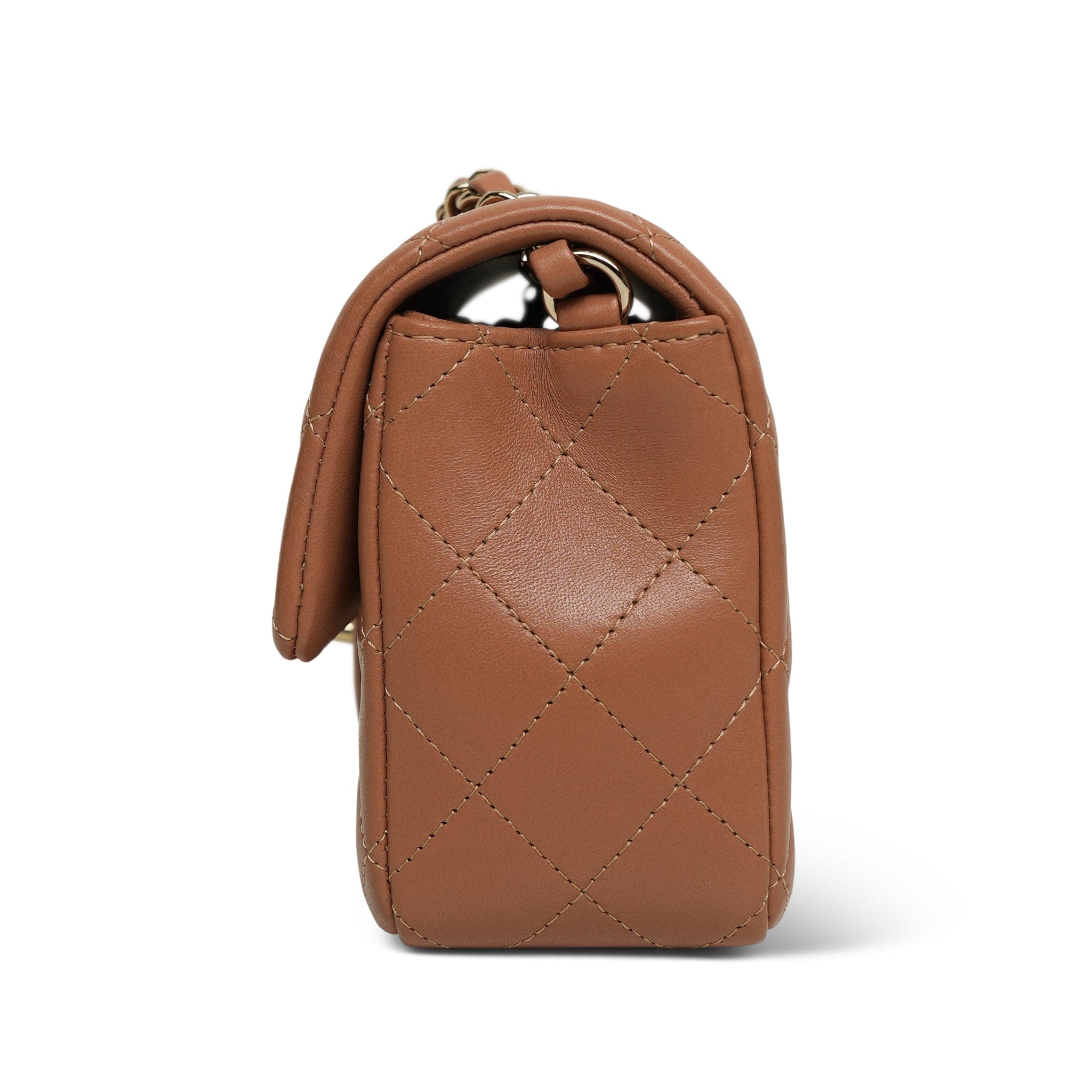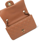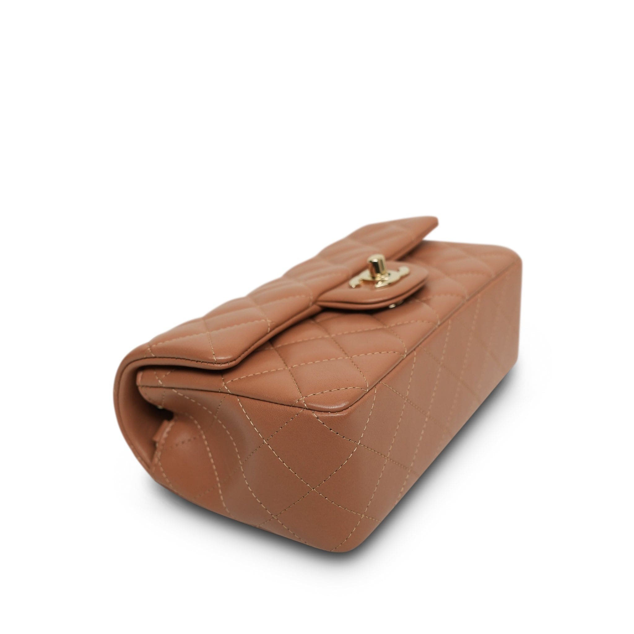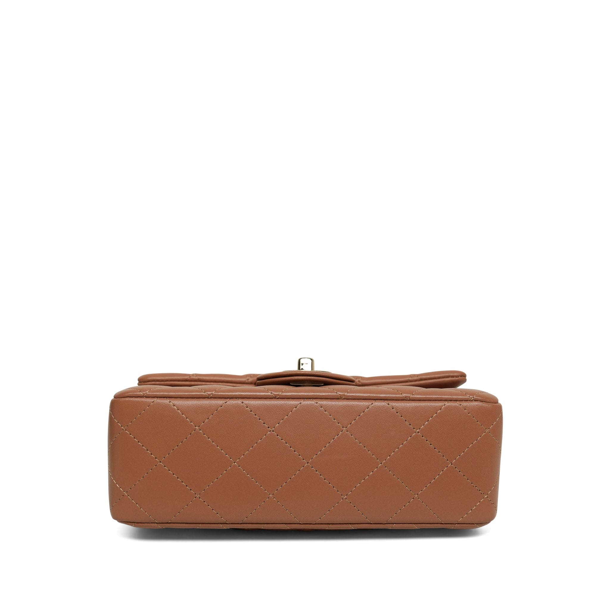 21P Caramel Lambskin Quilted Mini Rectangular Flap Light Gold Hardware