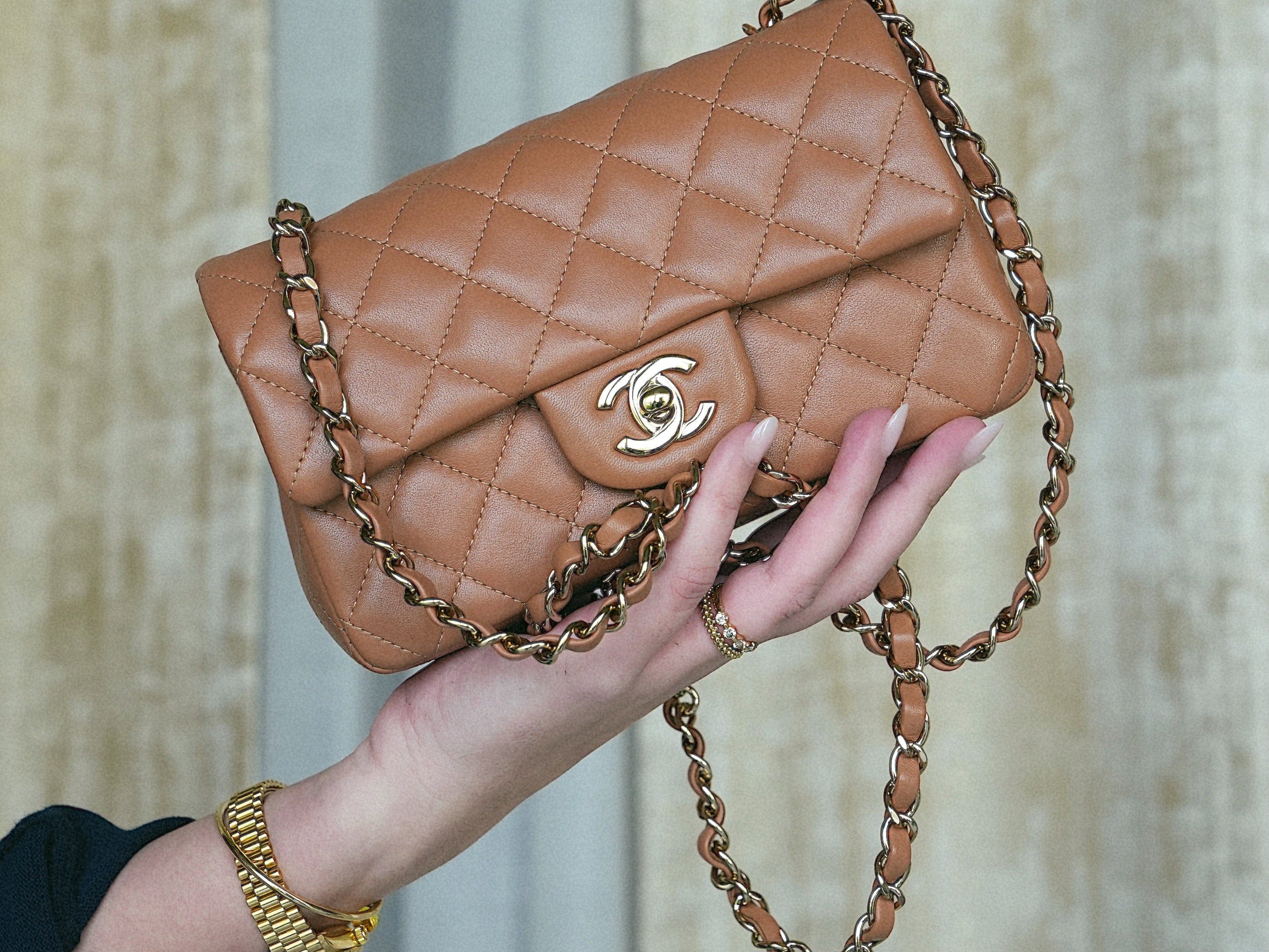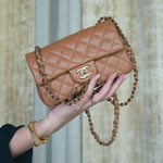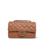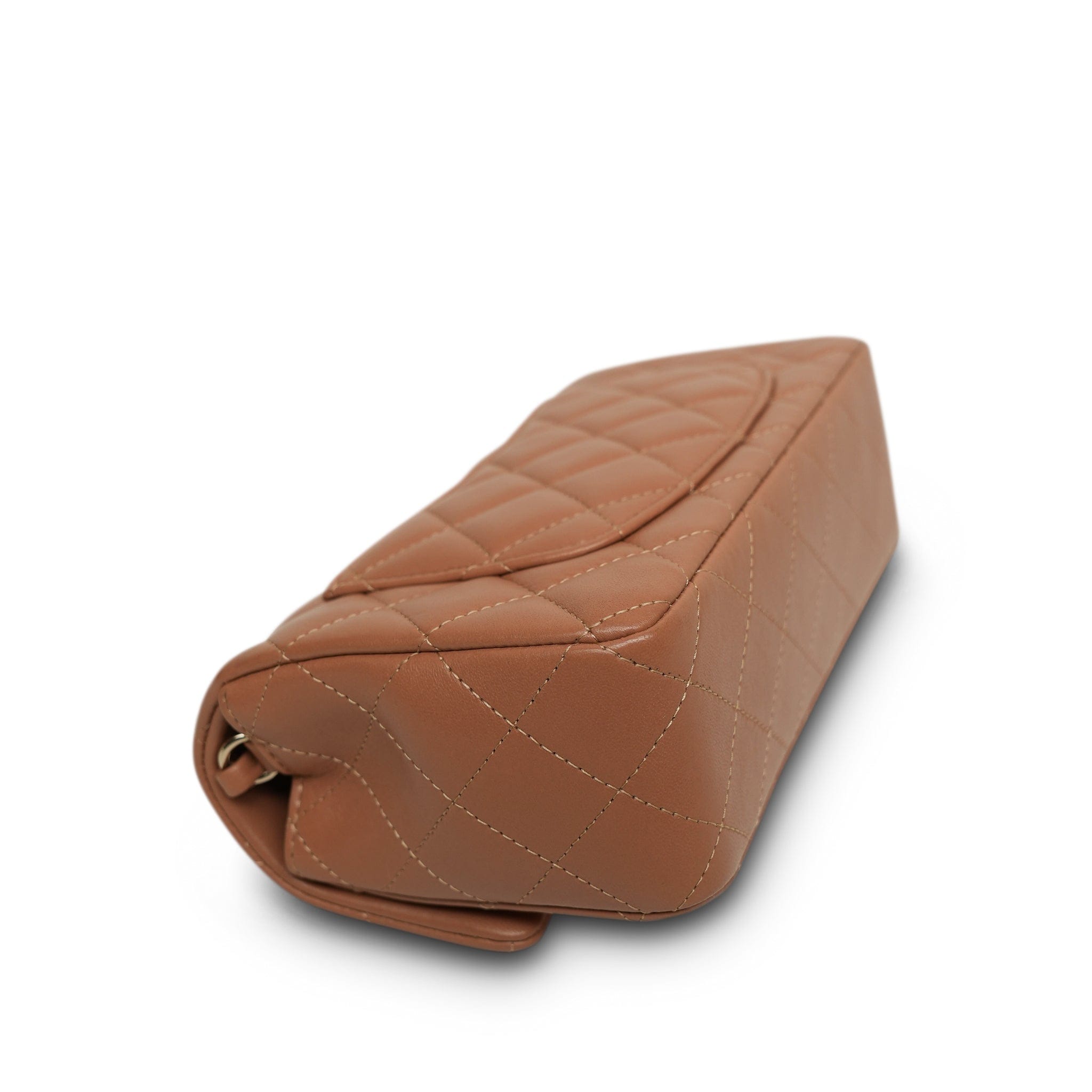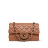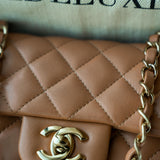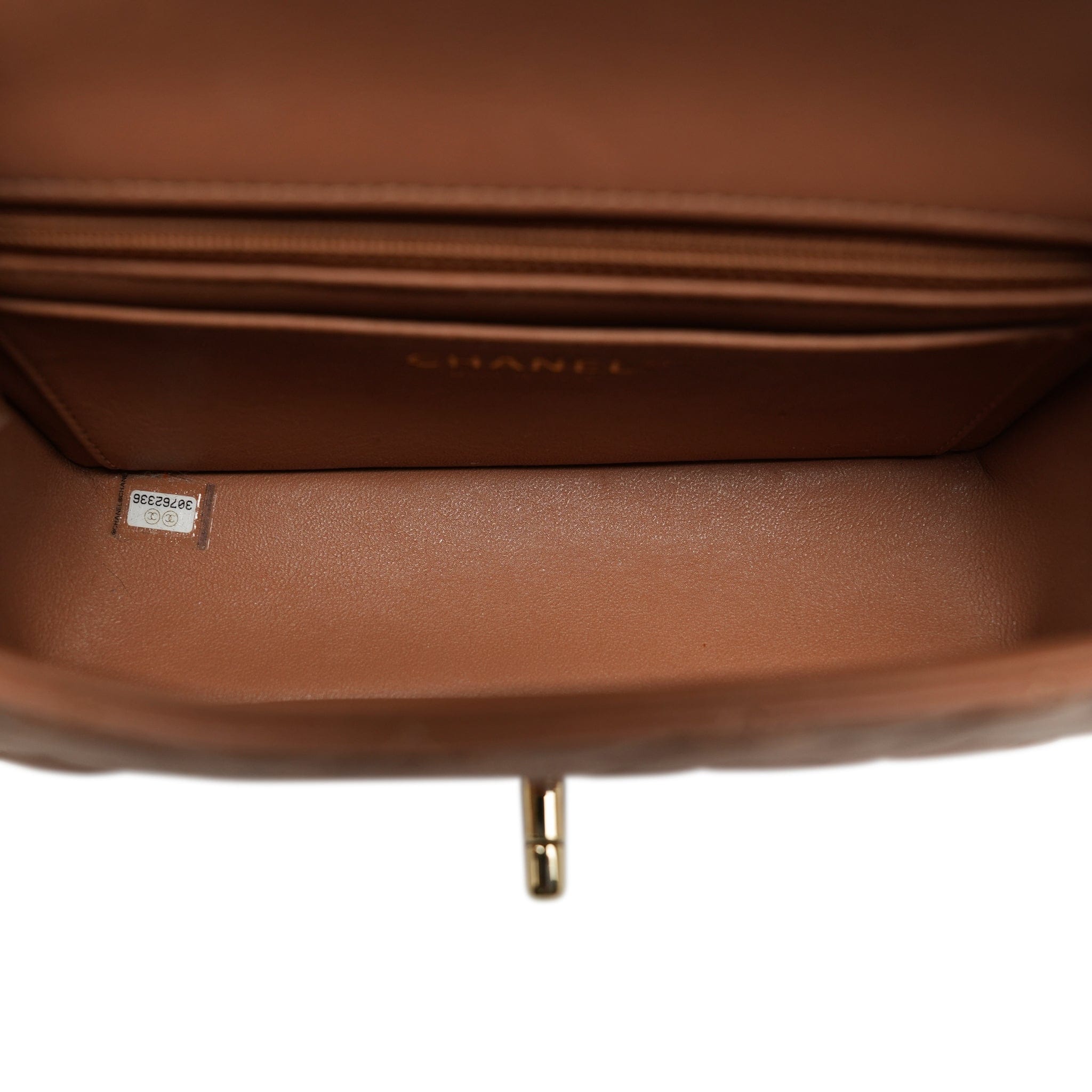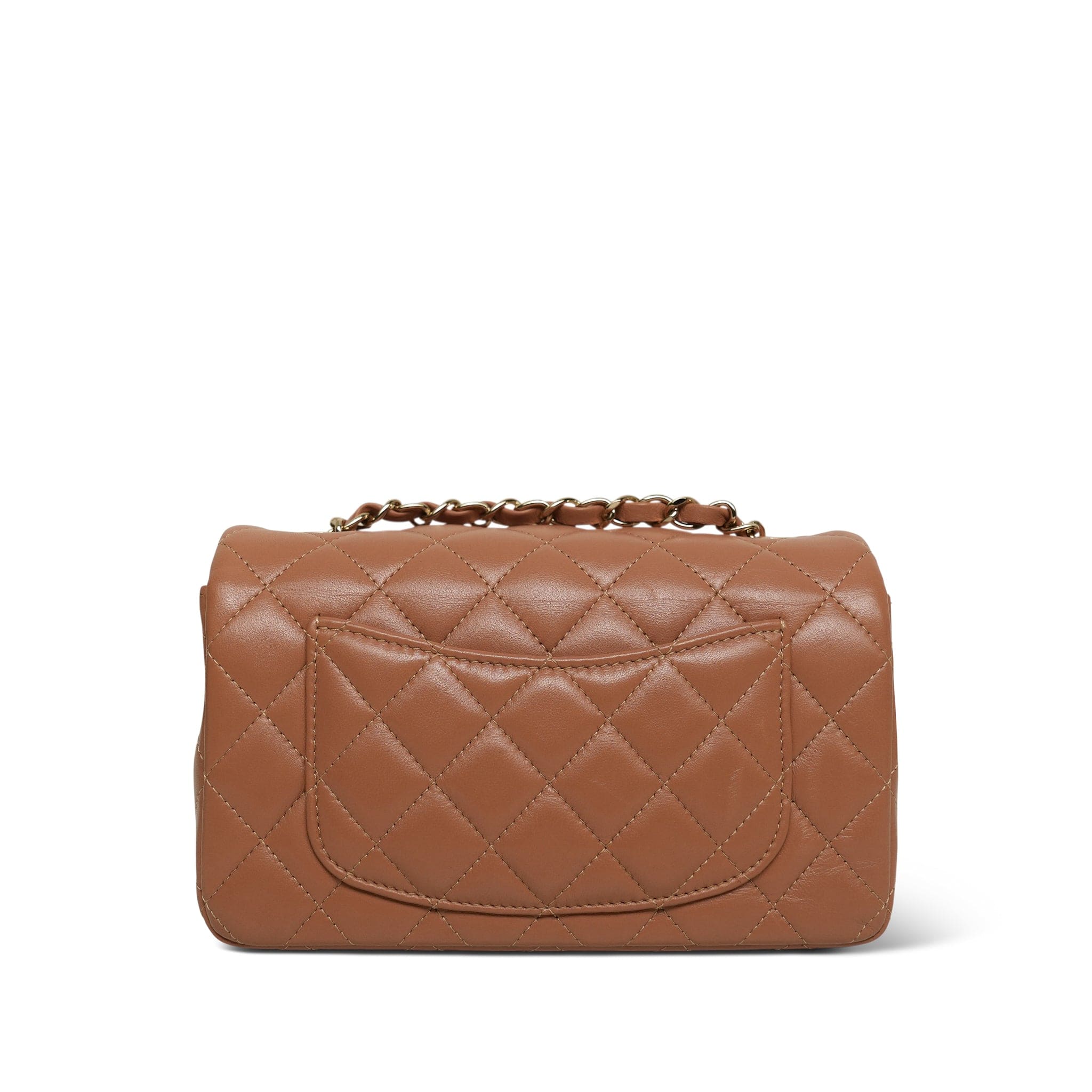 21P Caramel Lambskin Quilted Mini Rectangular Flap Light Gold Hardware