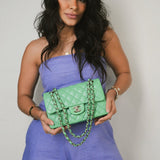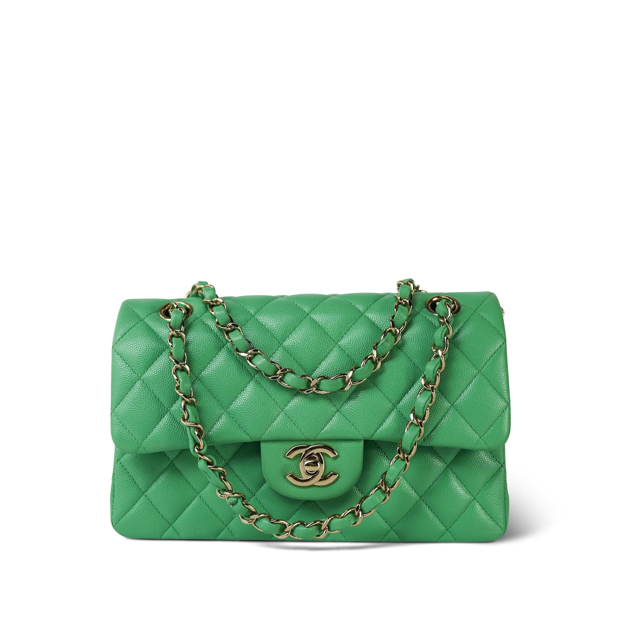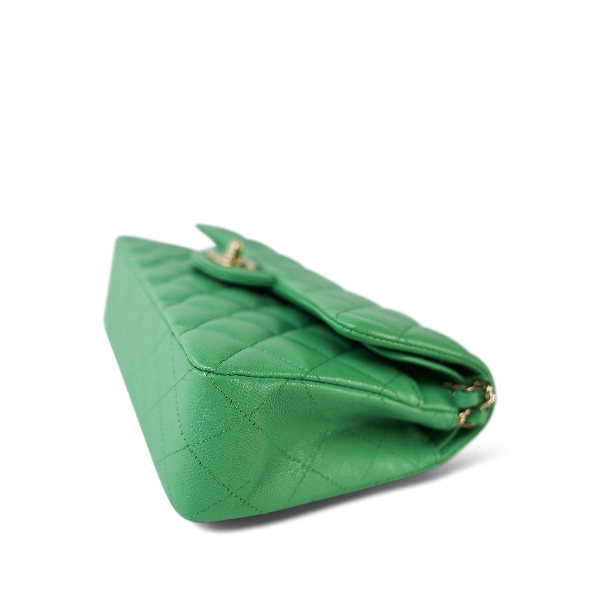 21P Green Caviar Quilted Classic Flap Small Light Gold Hardware