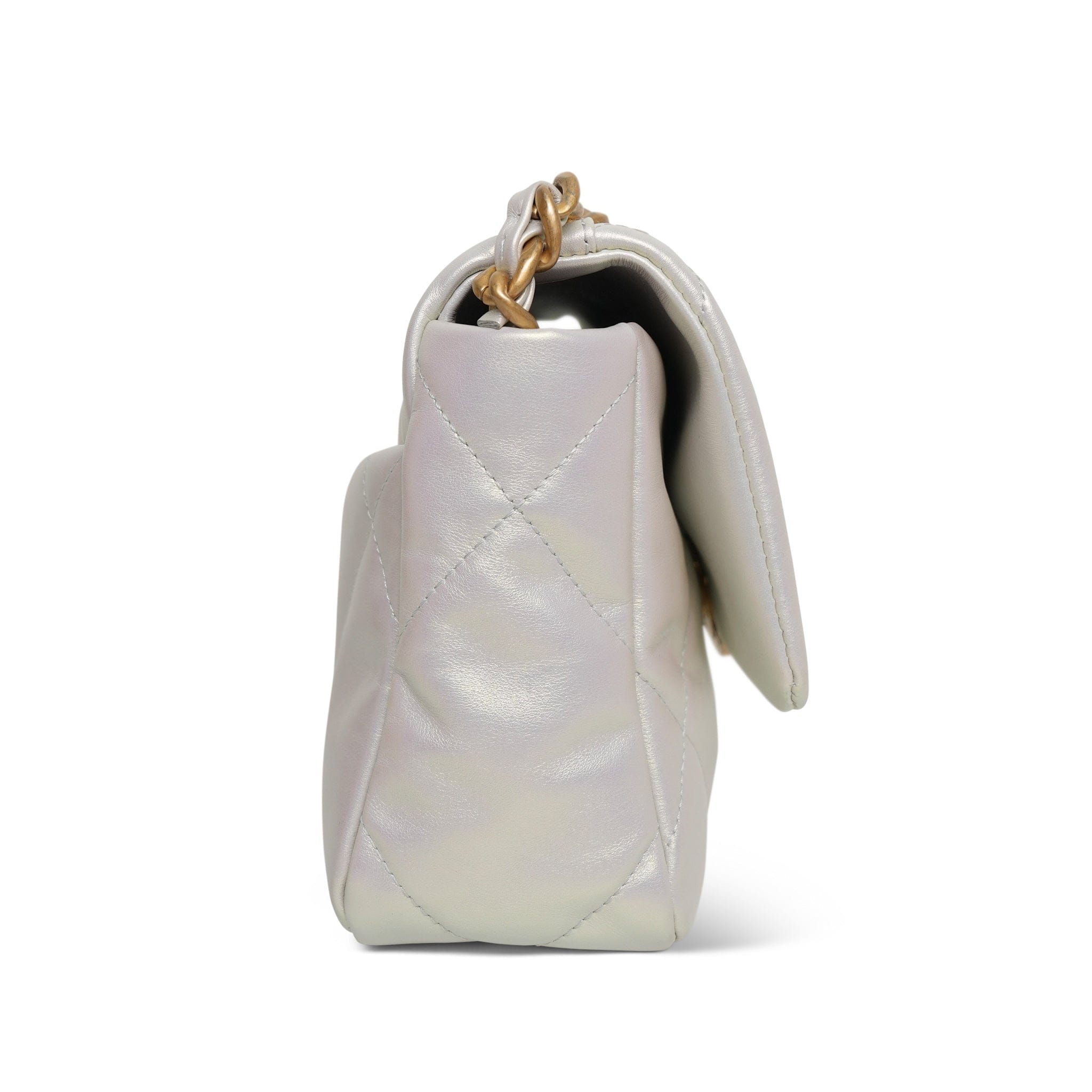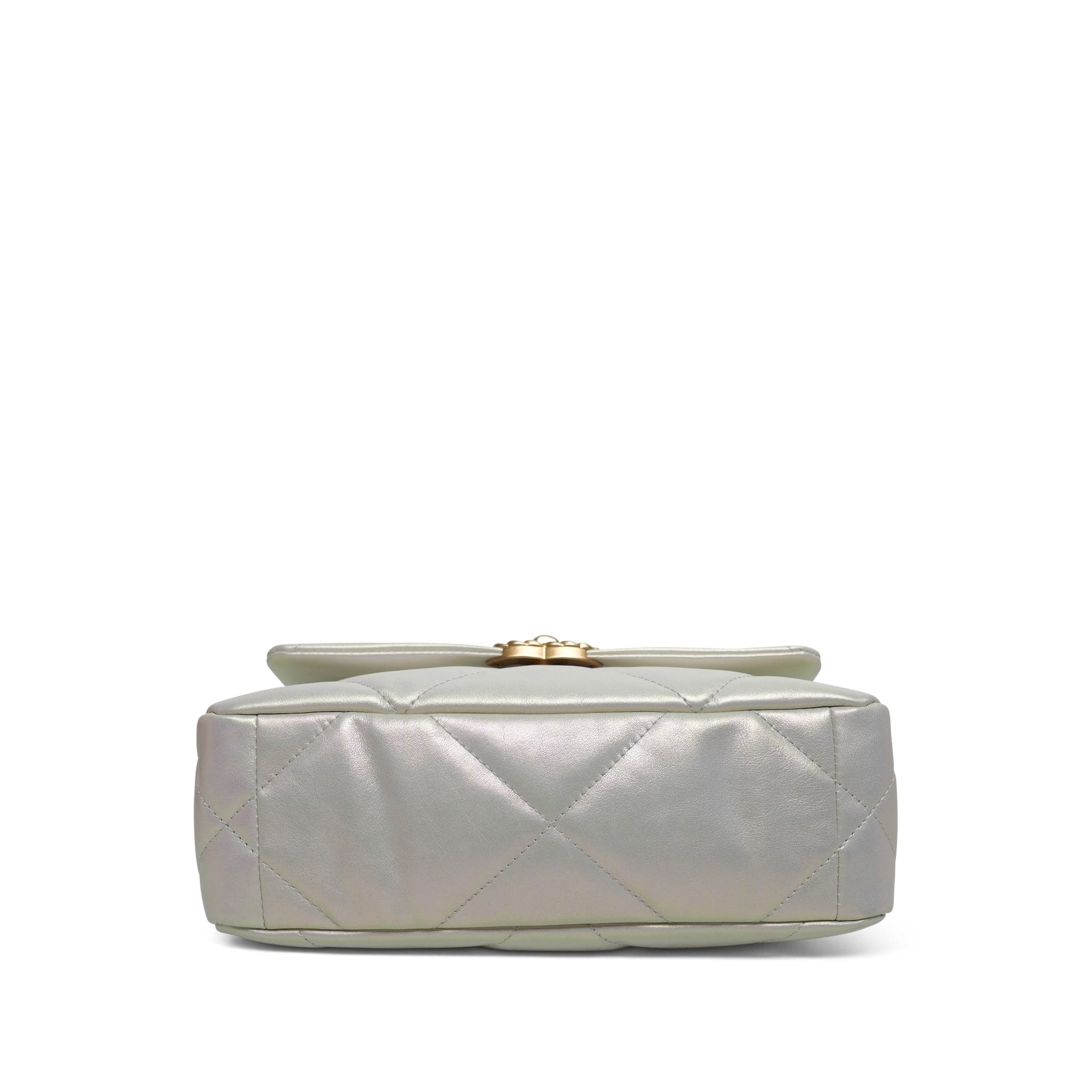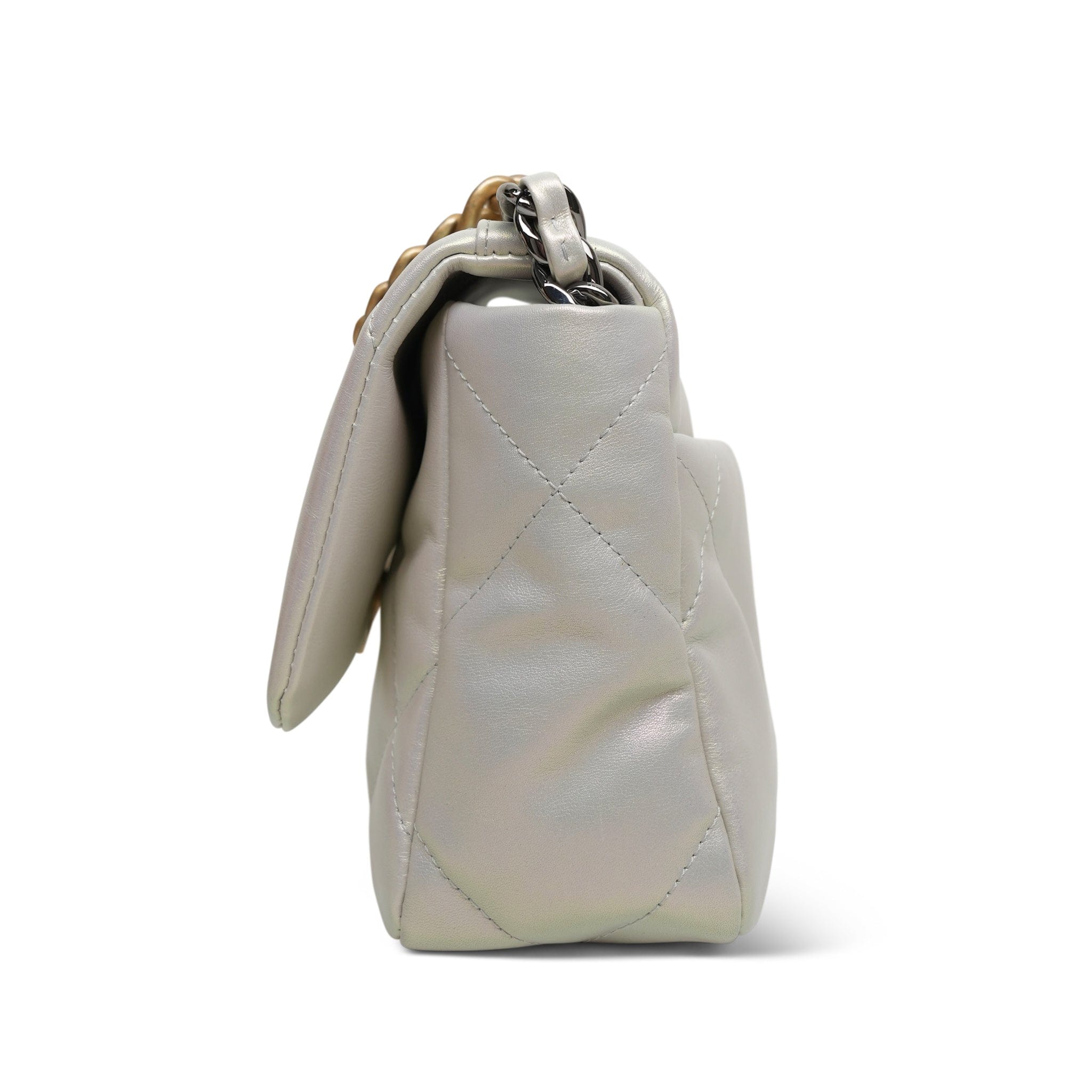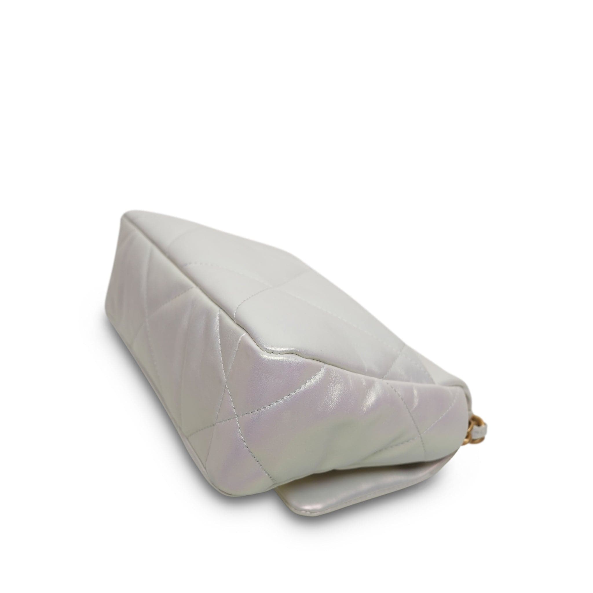 21P Iridescent White Calfskin Quilted 19 Flap Small MHW