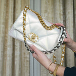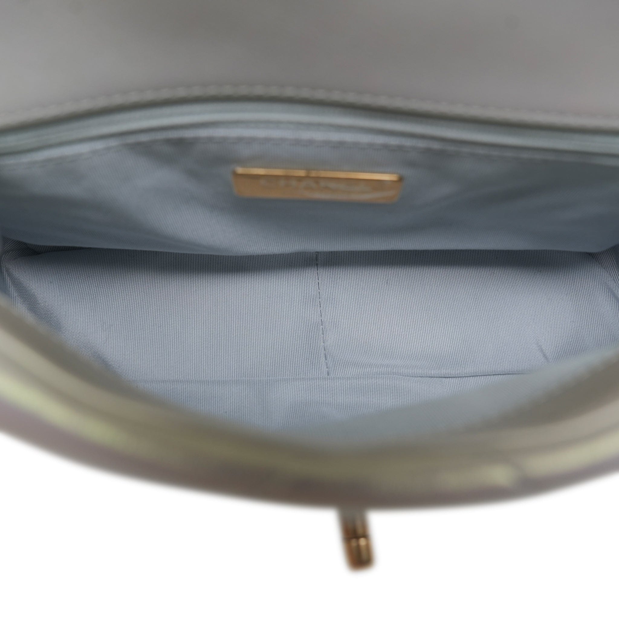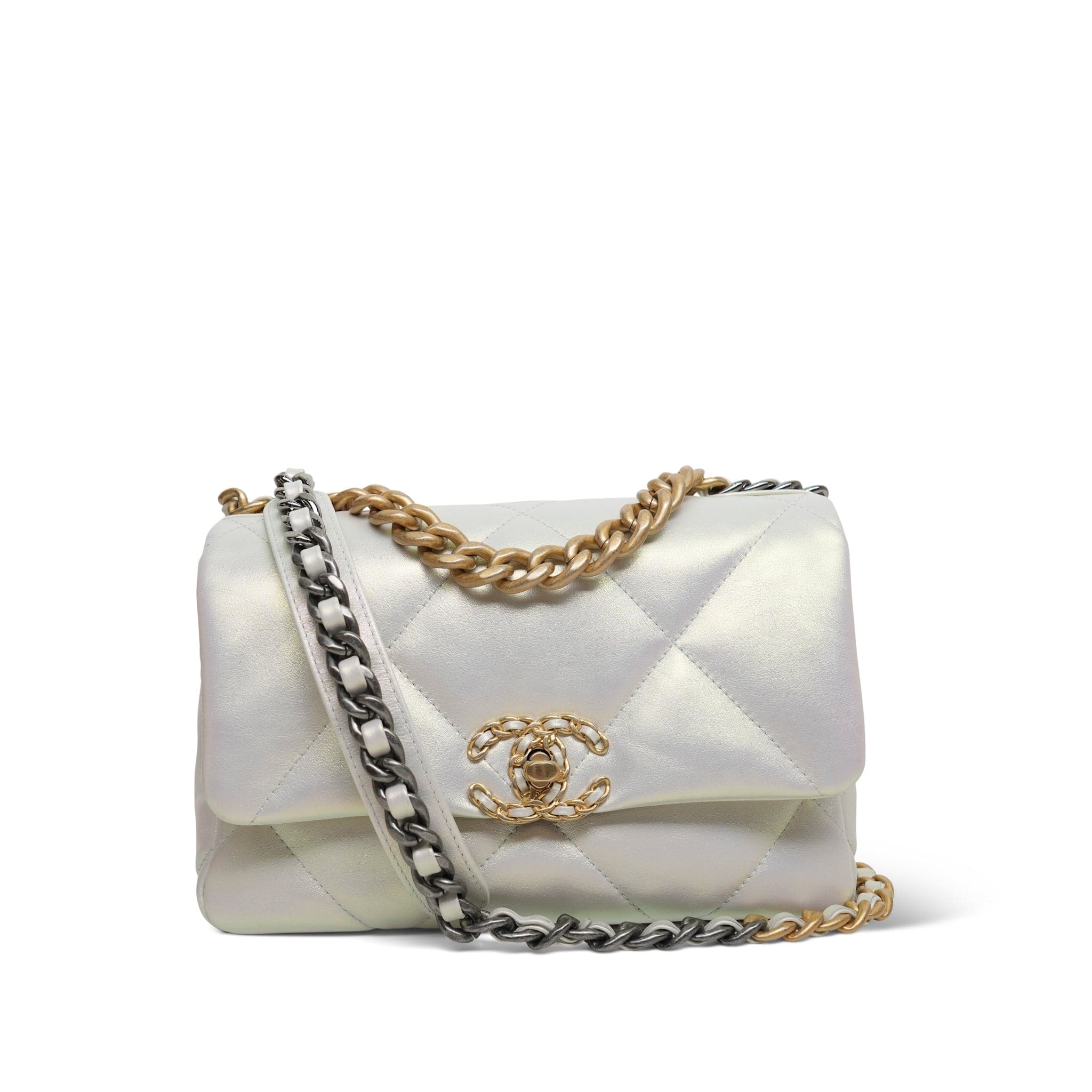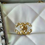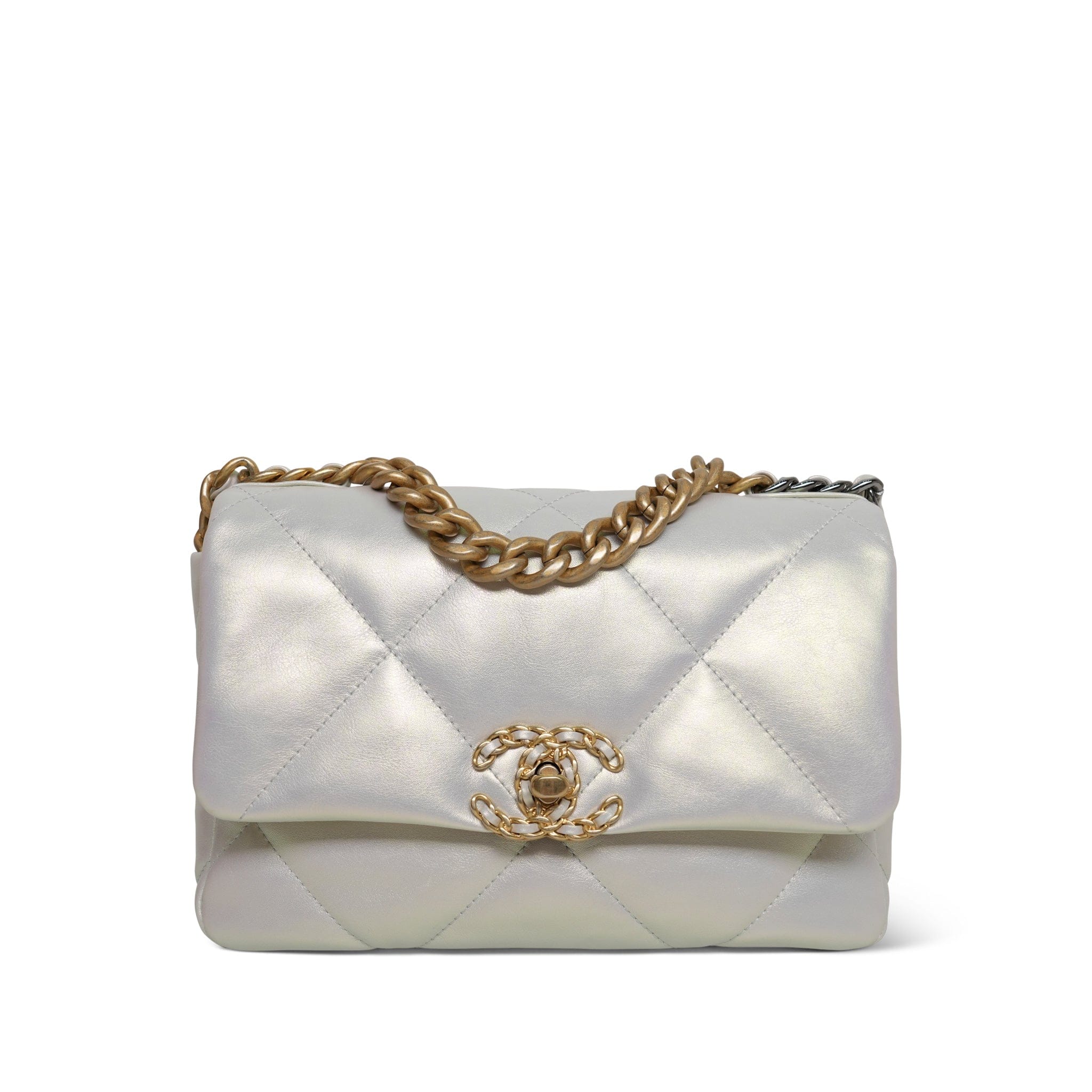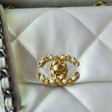 21P Iridescent White Calfskin Quilted 19 Flap Small MHW