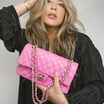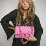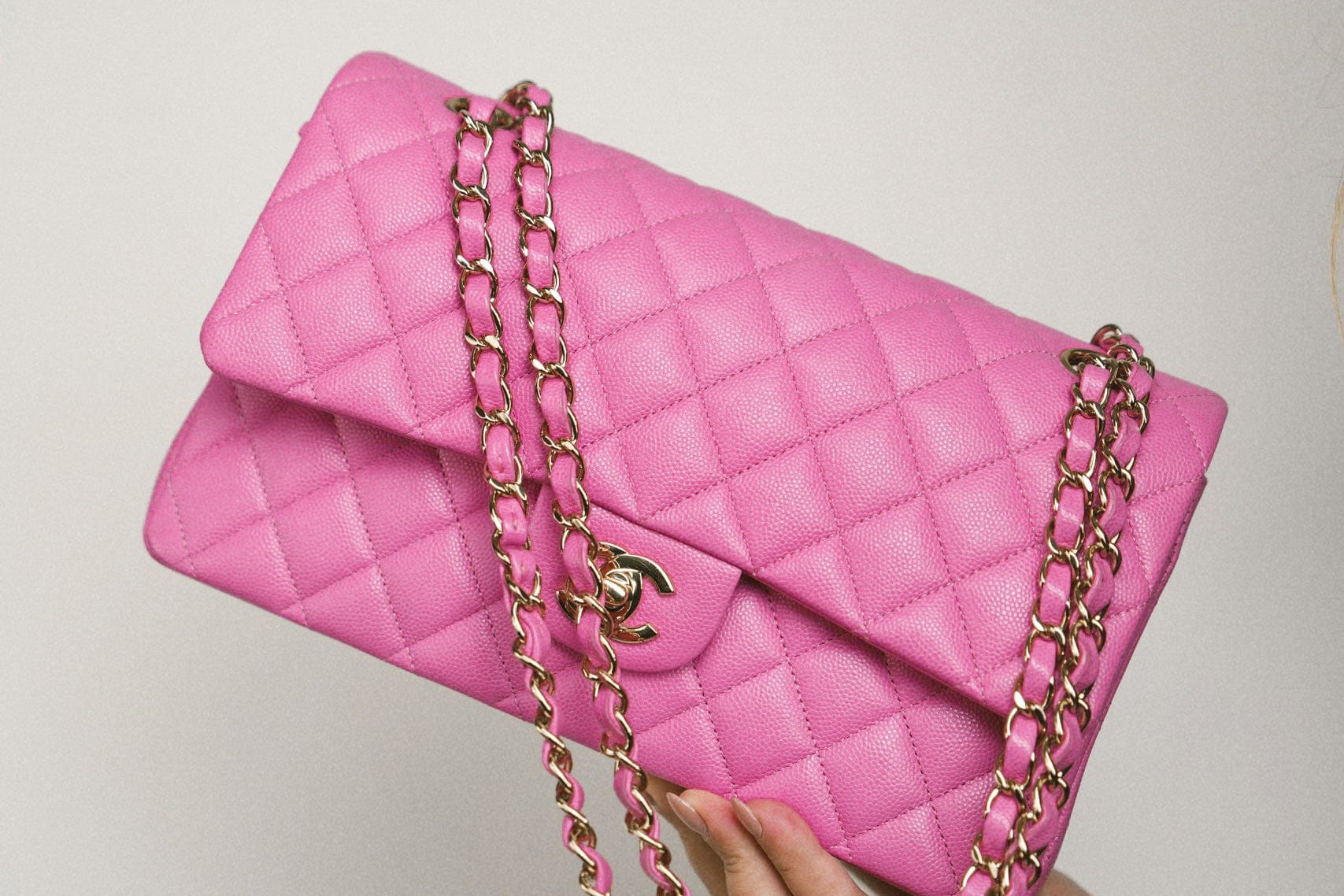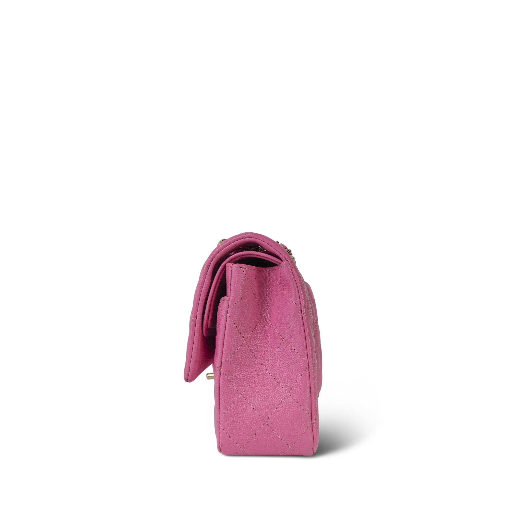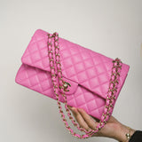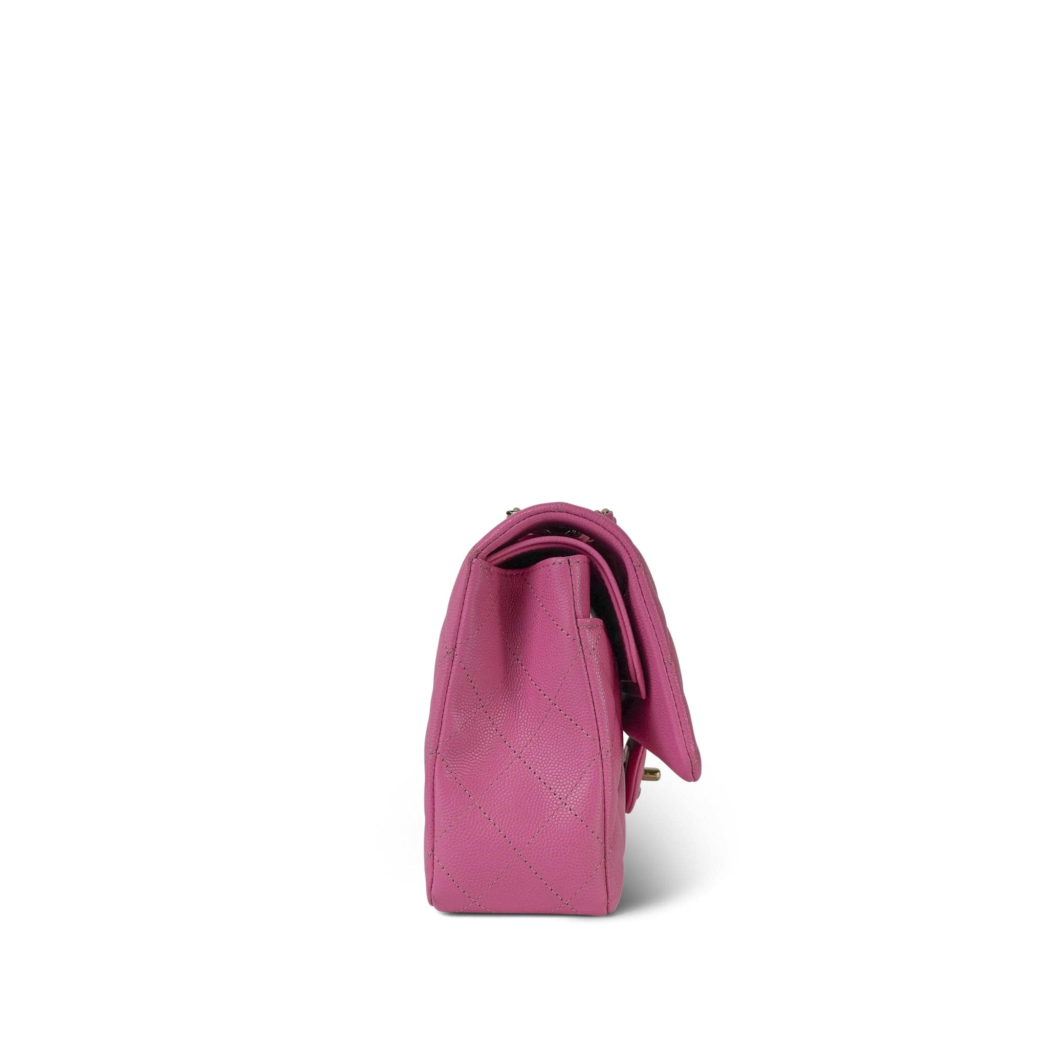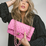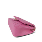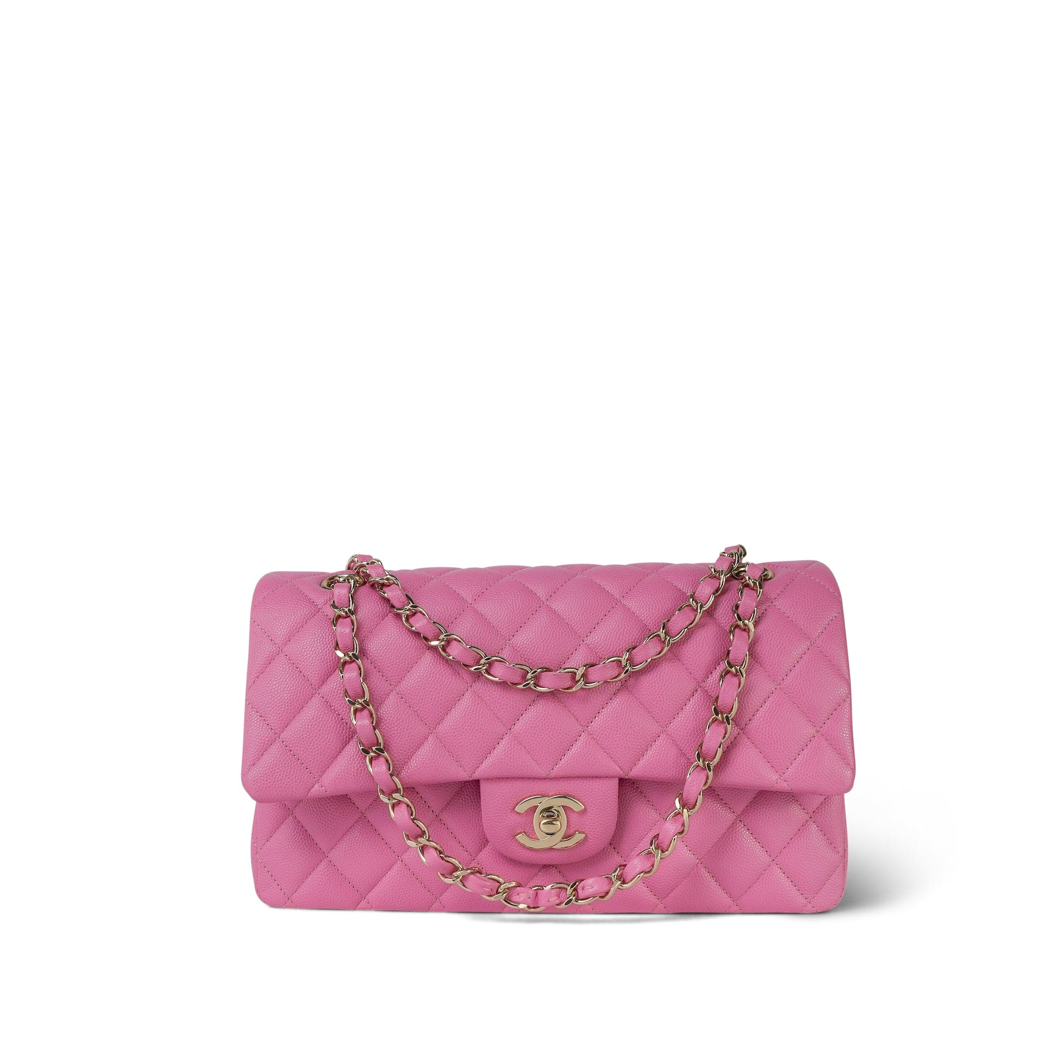 21P Pink Caviar Quilted Classic Flap Medium Light Gold Hardware.