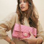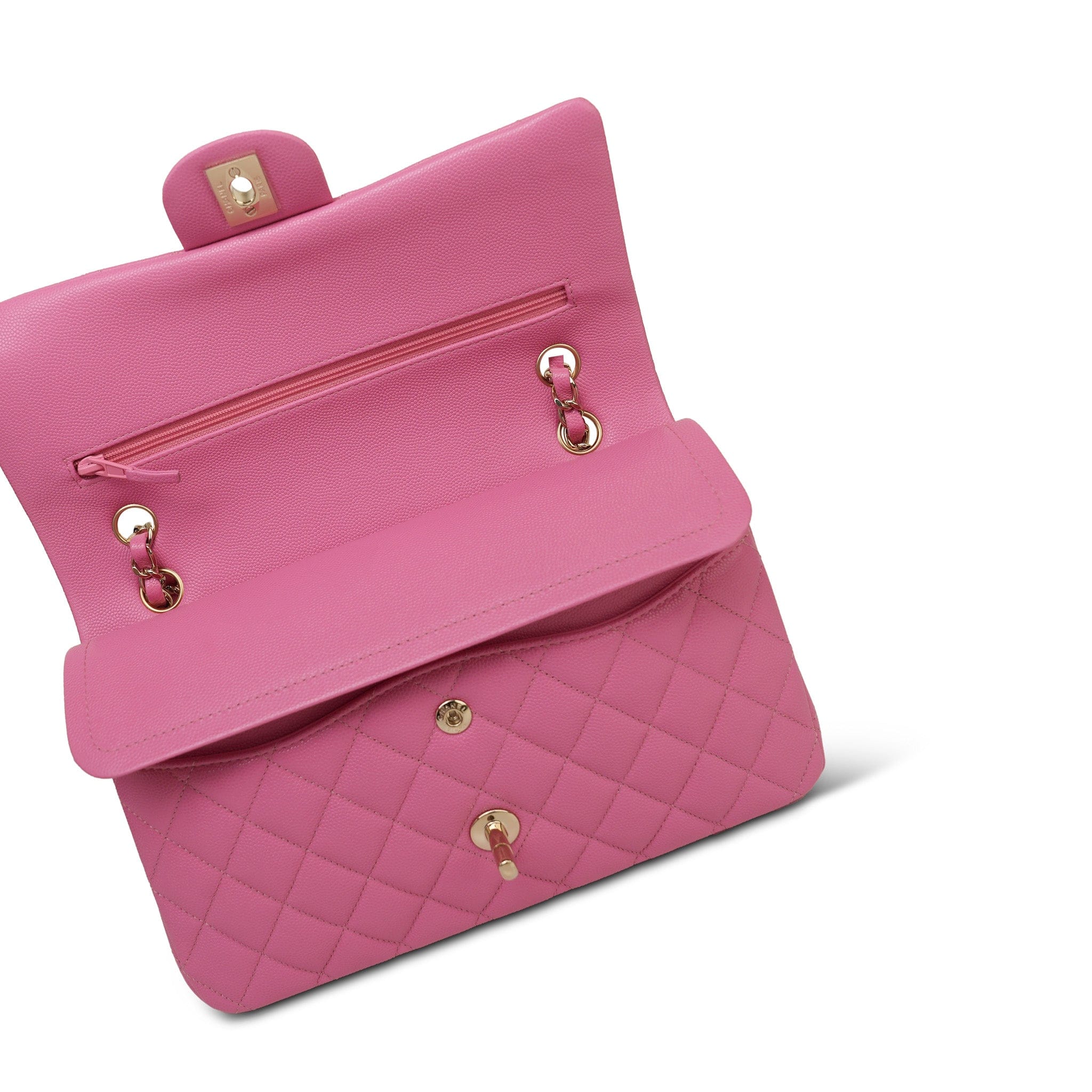 21P Pink Caviar Quilted Classic Flap Medium Light Gold Hardware