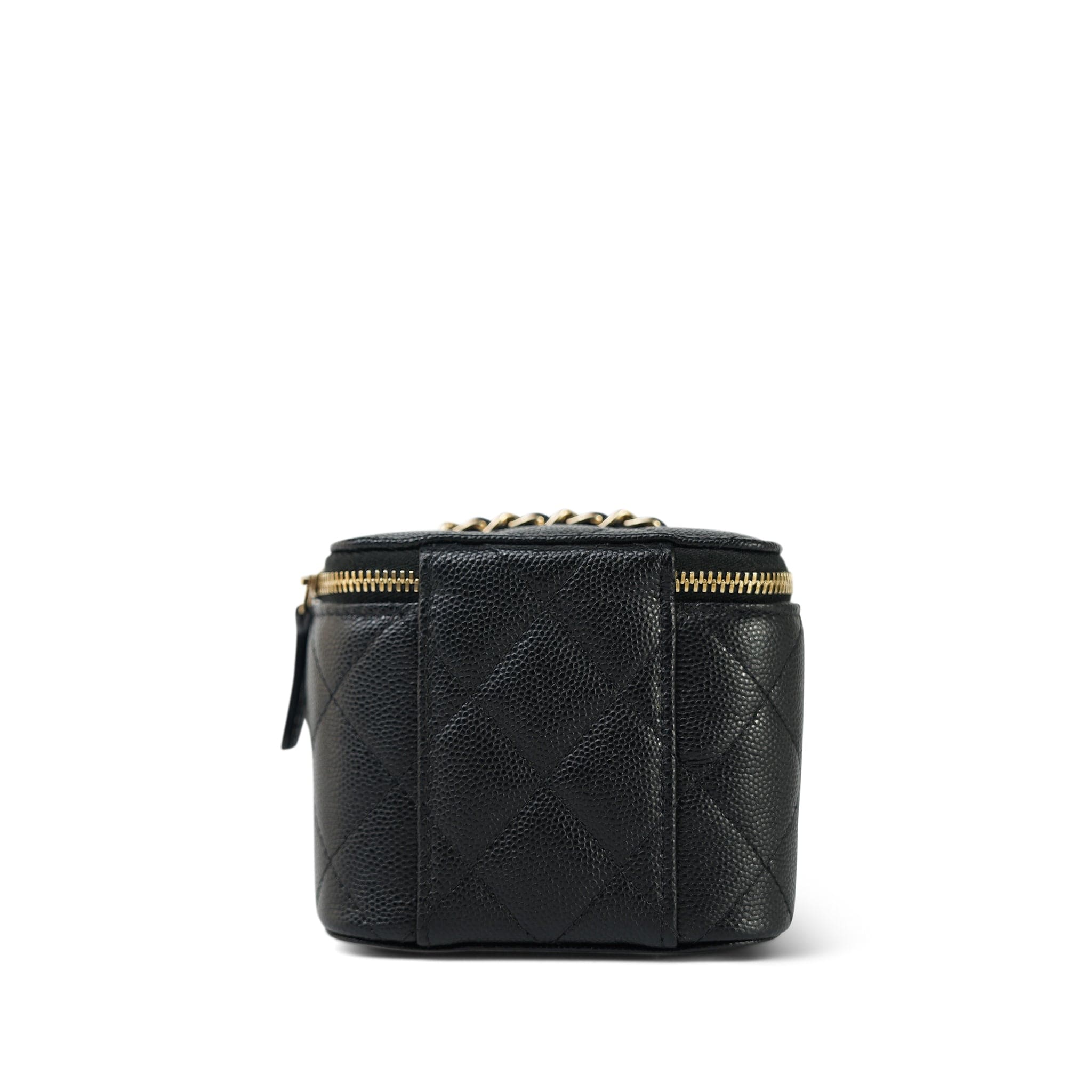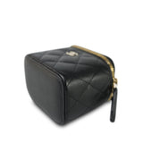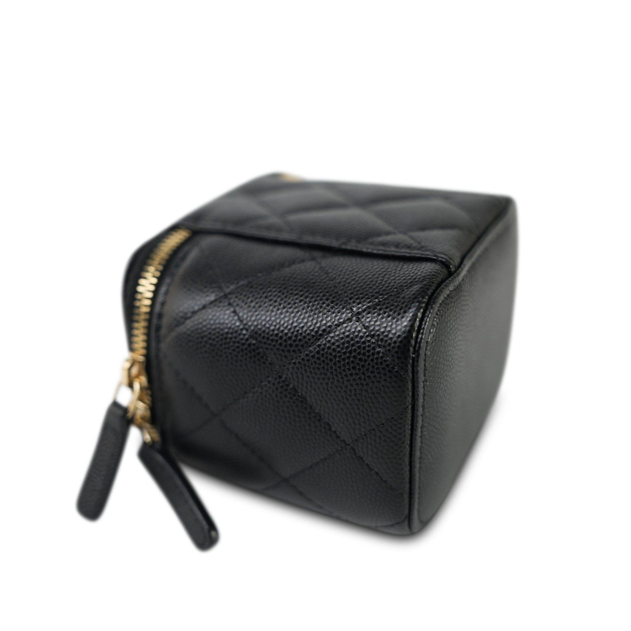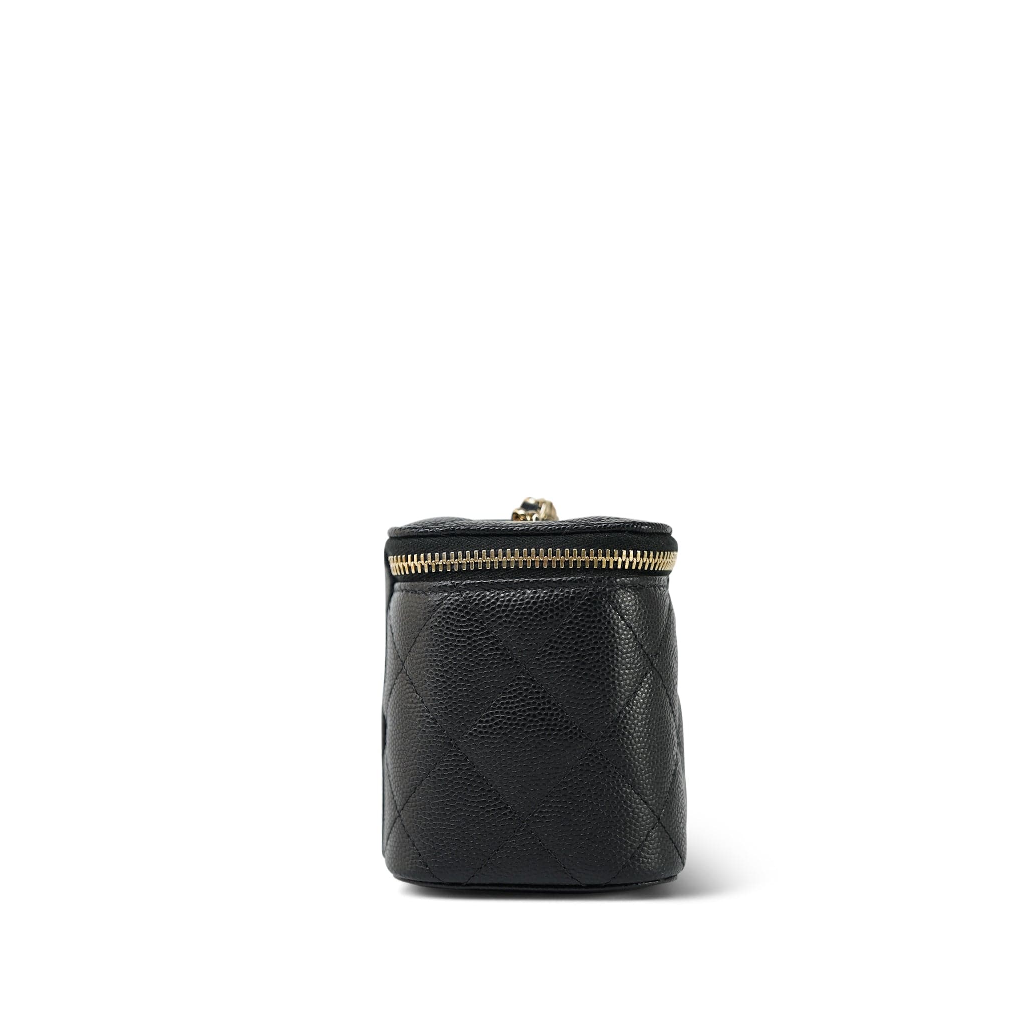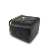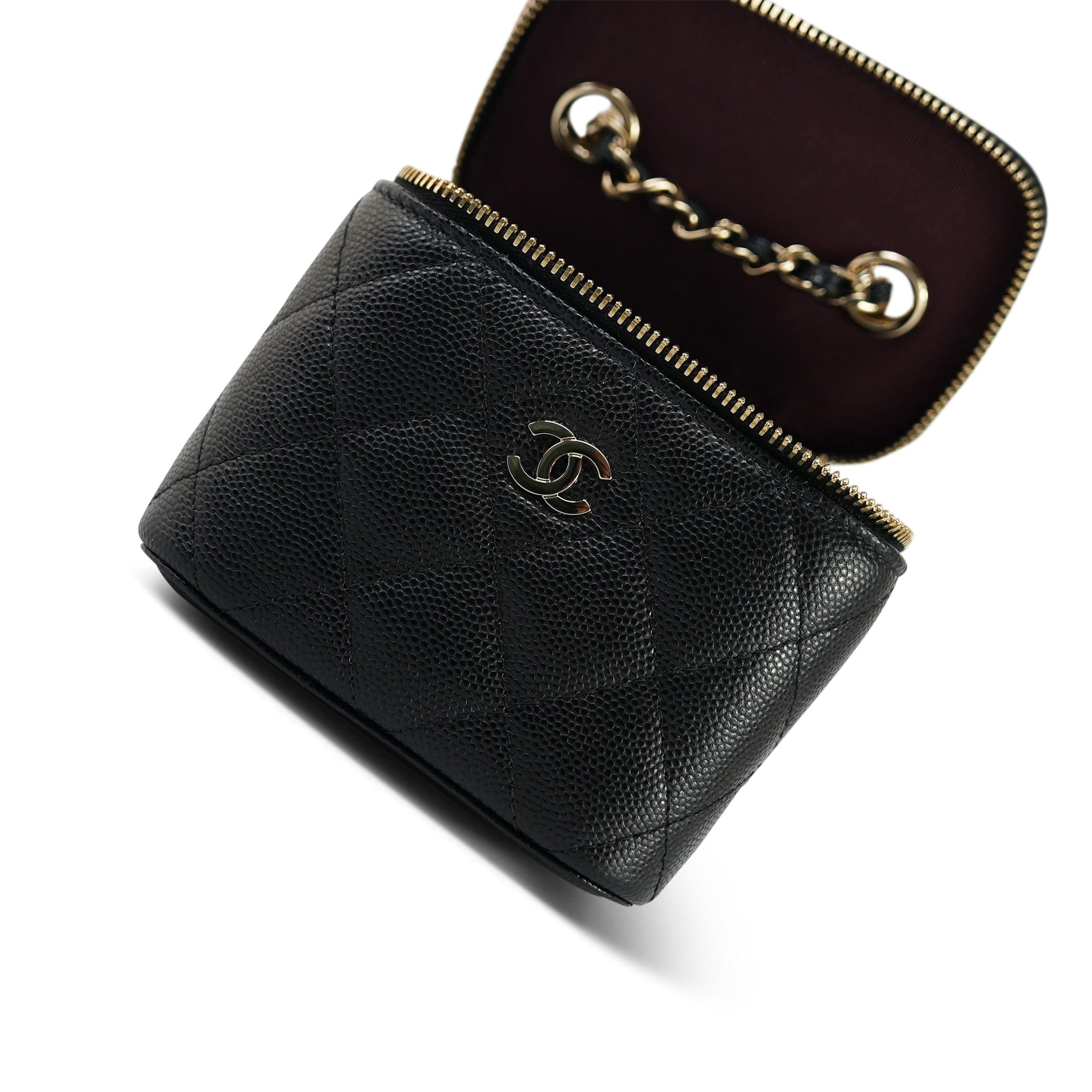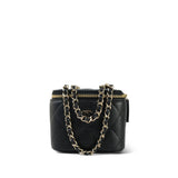 21S Black Caviar Quilted Mini Clutch With Chain Light Gold Hardware
