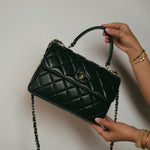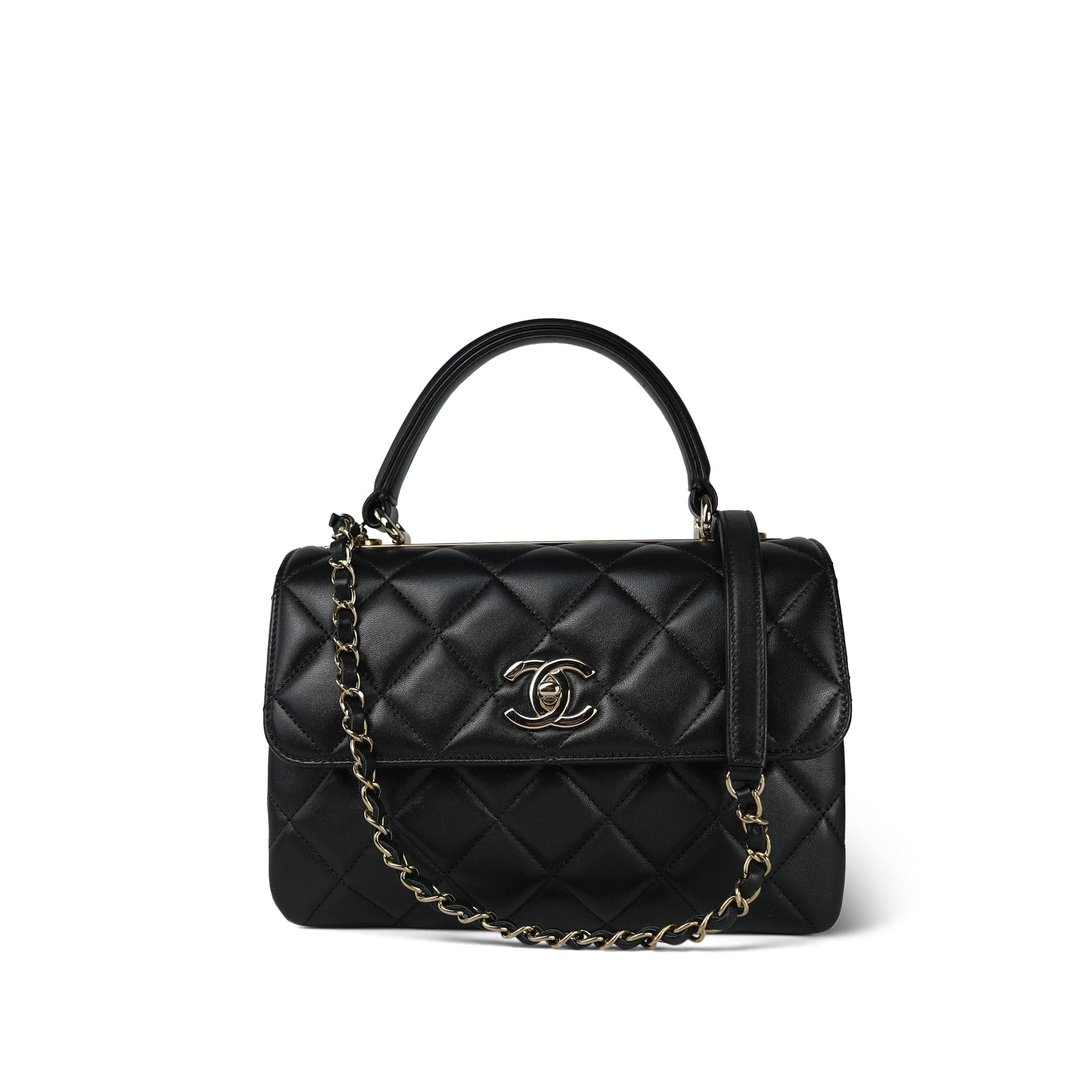 21S Black Lambskin Quilted Small Trendy CC Light Gold Hardware