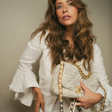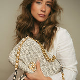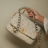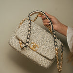 21S Ecru Black & White Tweed Quilted Small 19 Flap MHW