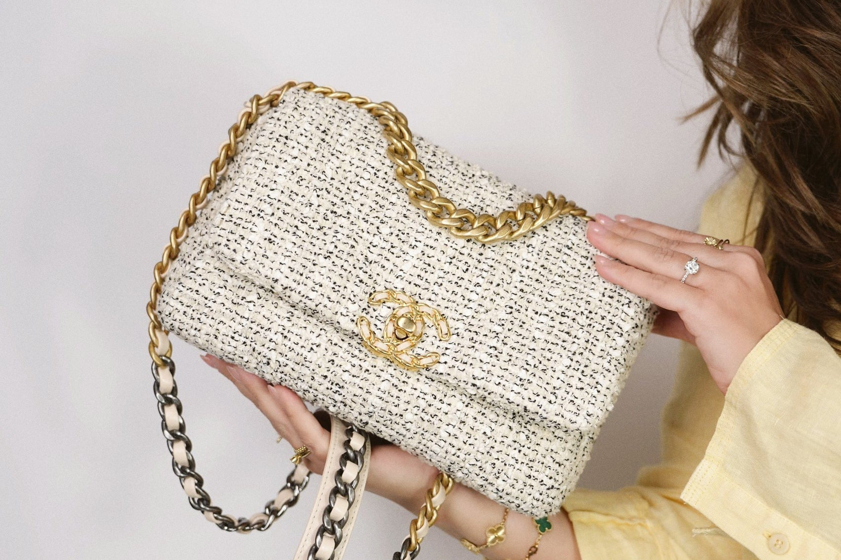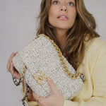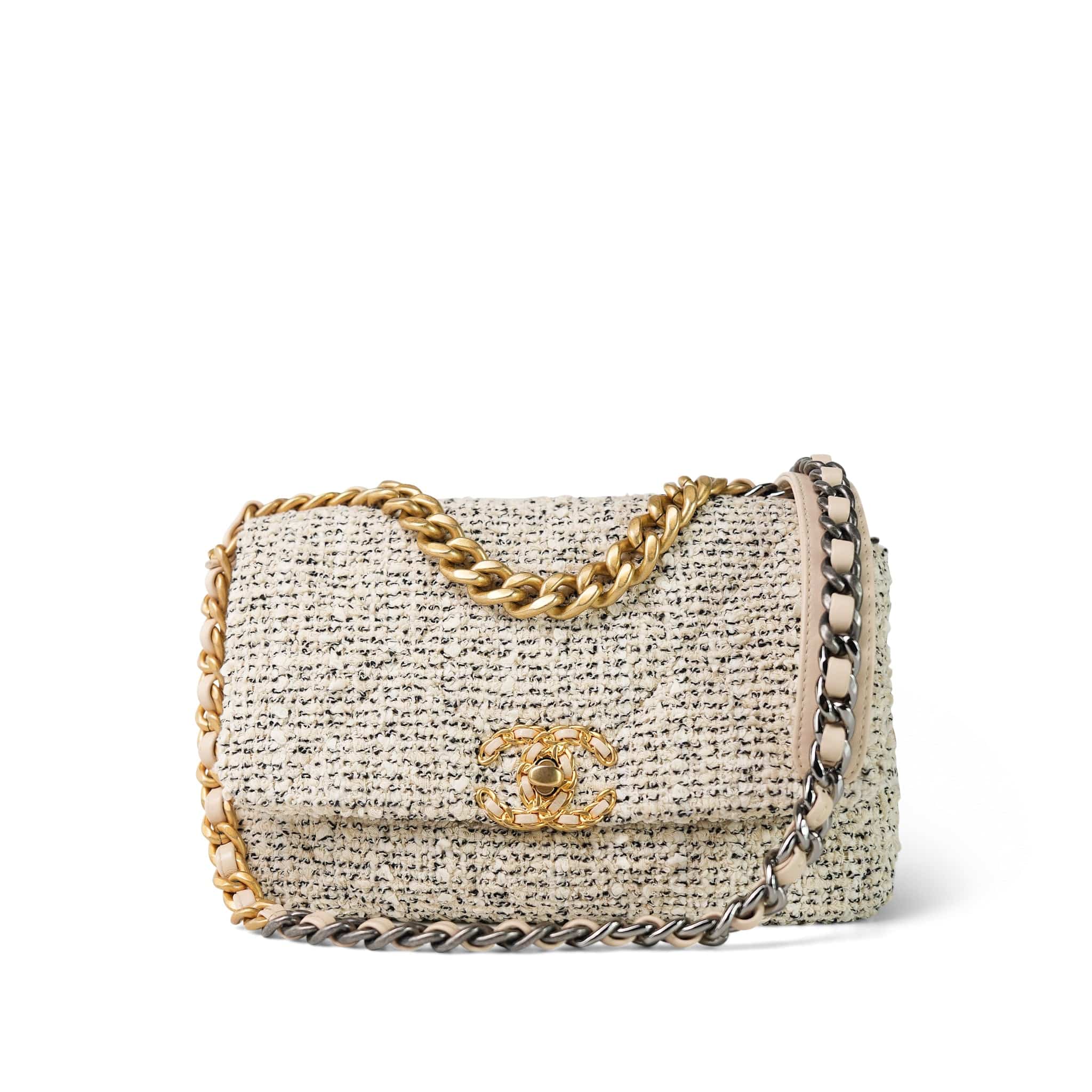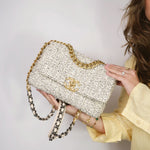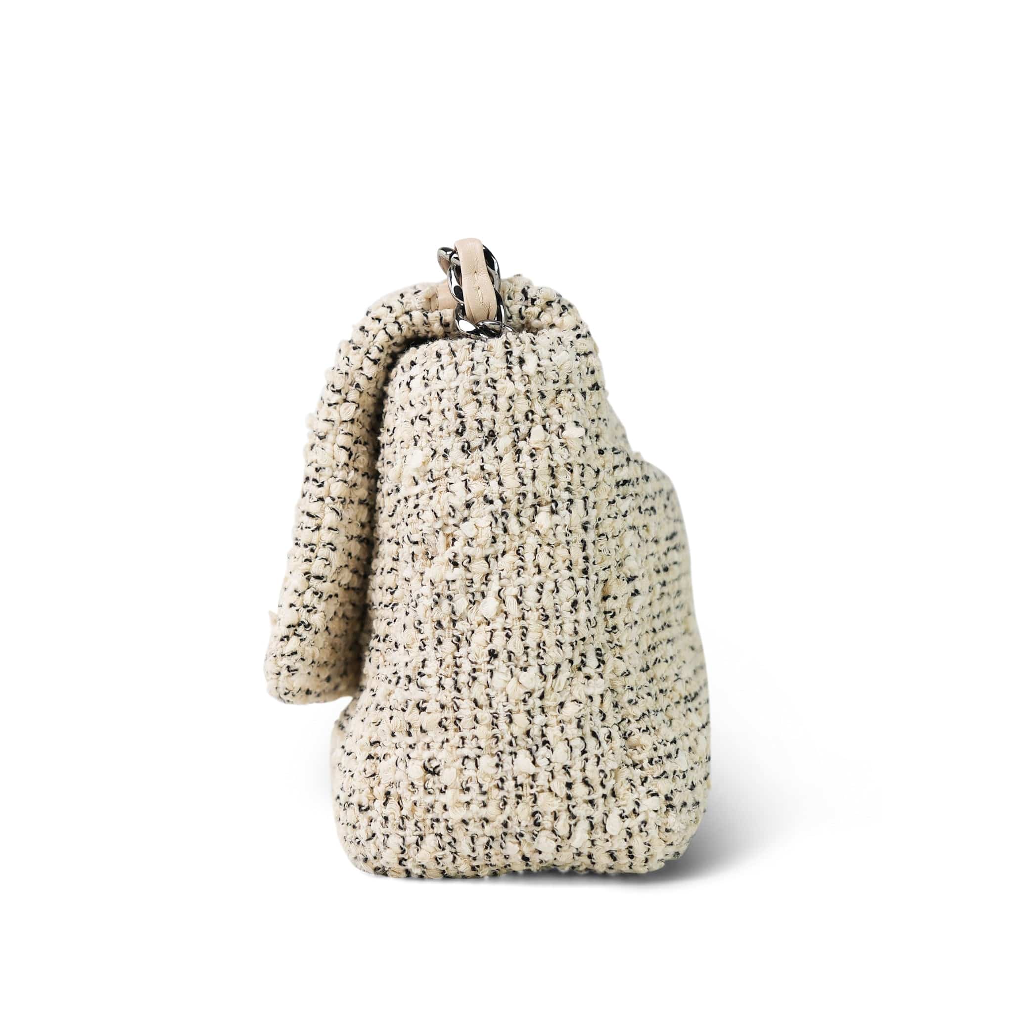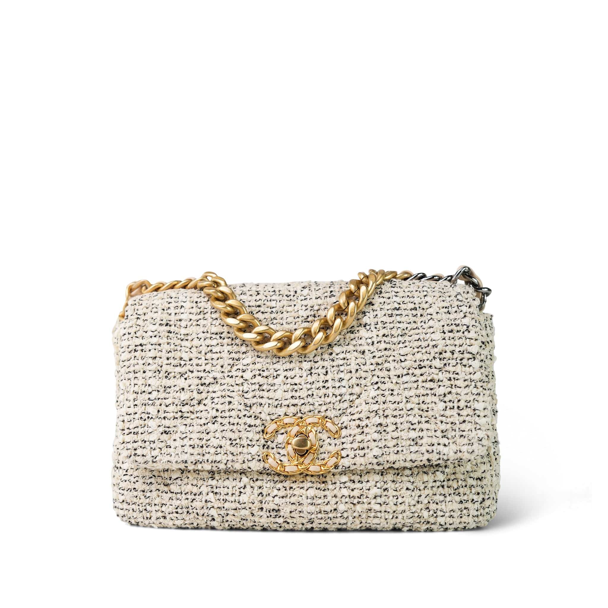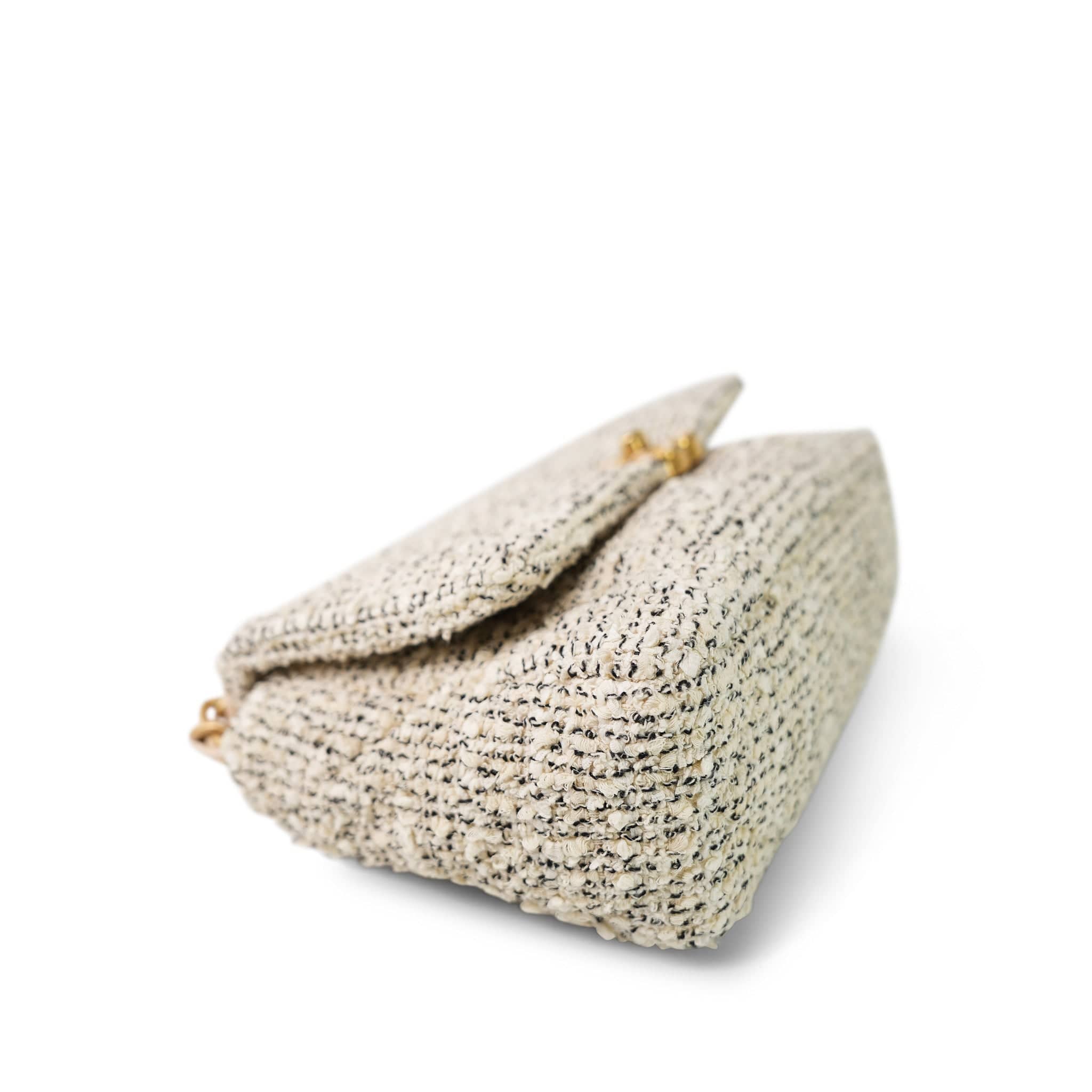 21S Ecru Black & White Tweed Quilted Small 19 Flap Mixed Hardware