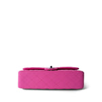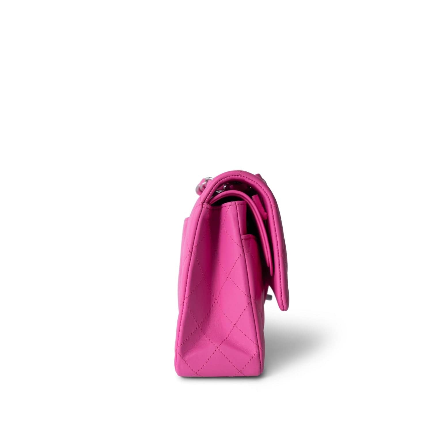 21S Neon Pink Lambskin Quilted Classic Flap Medium Silver Hardware