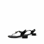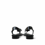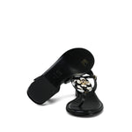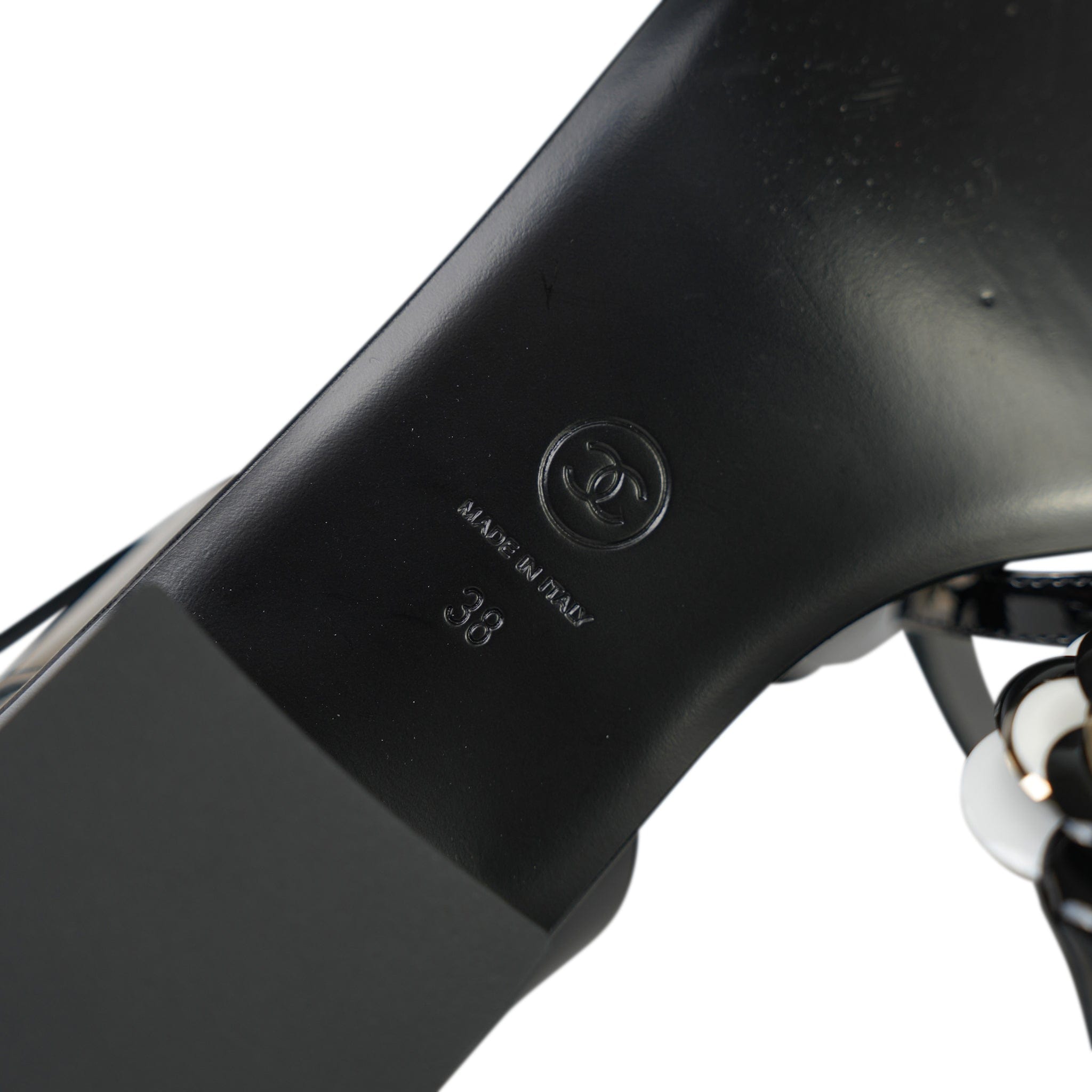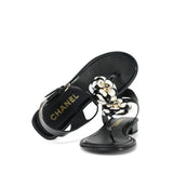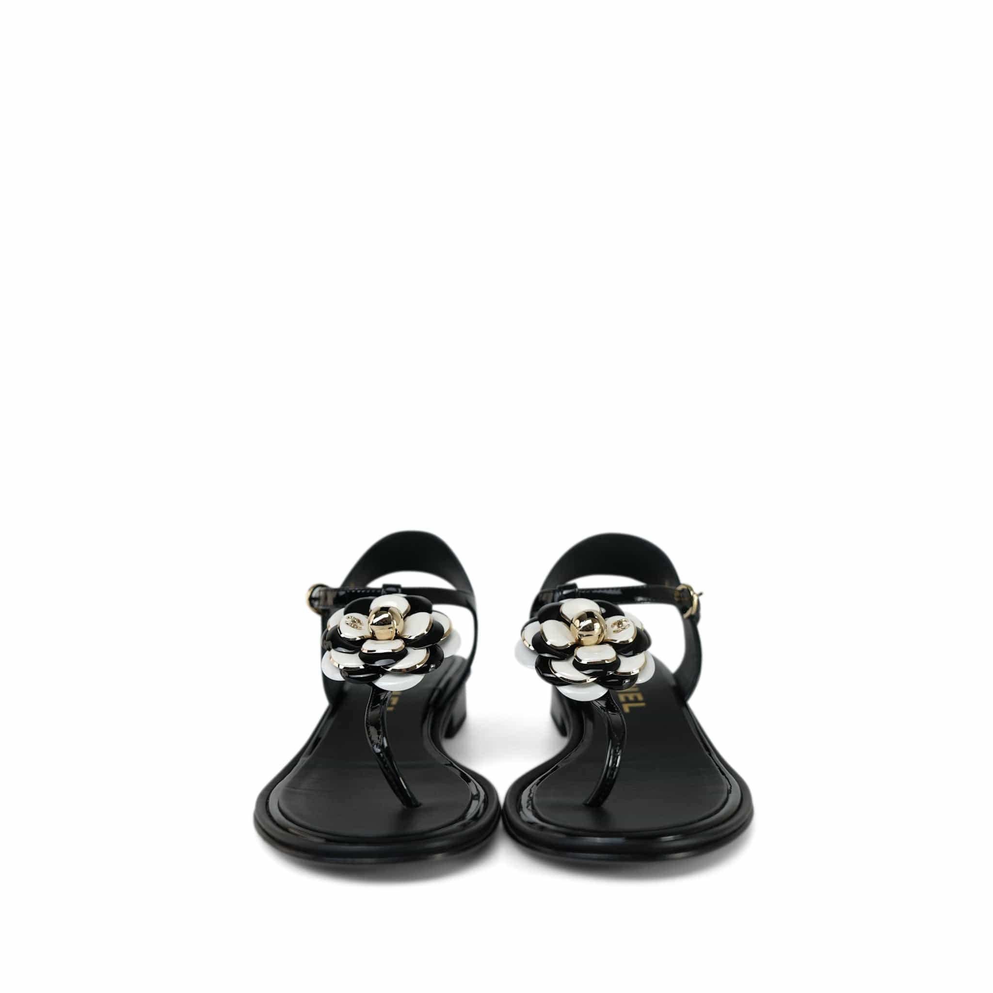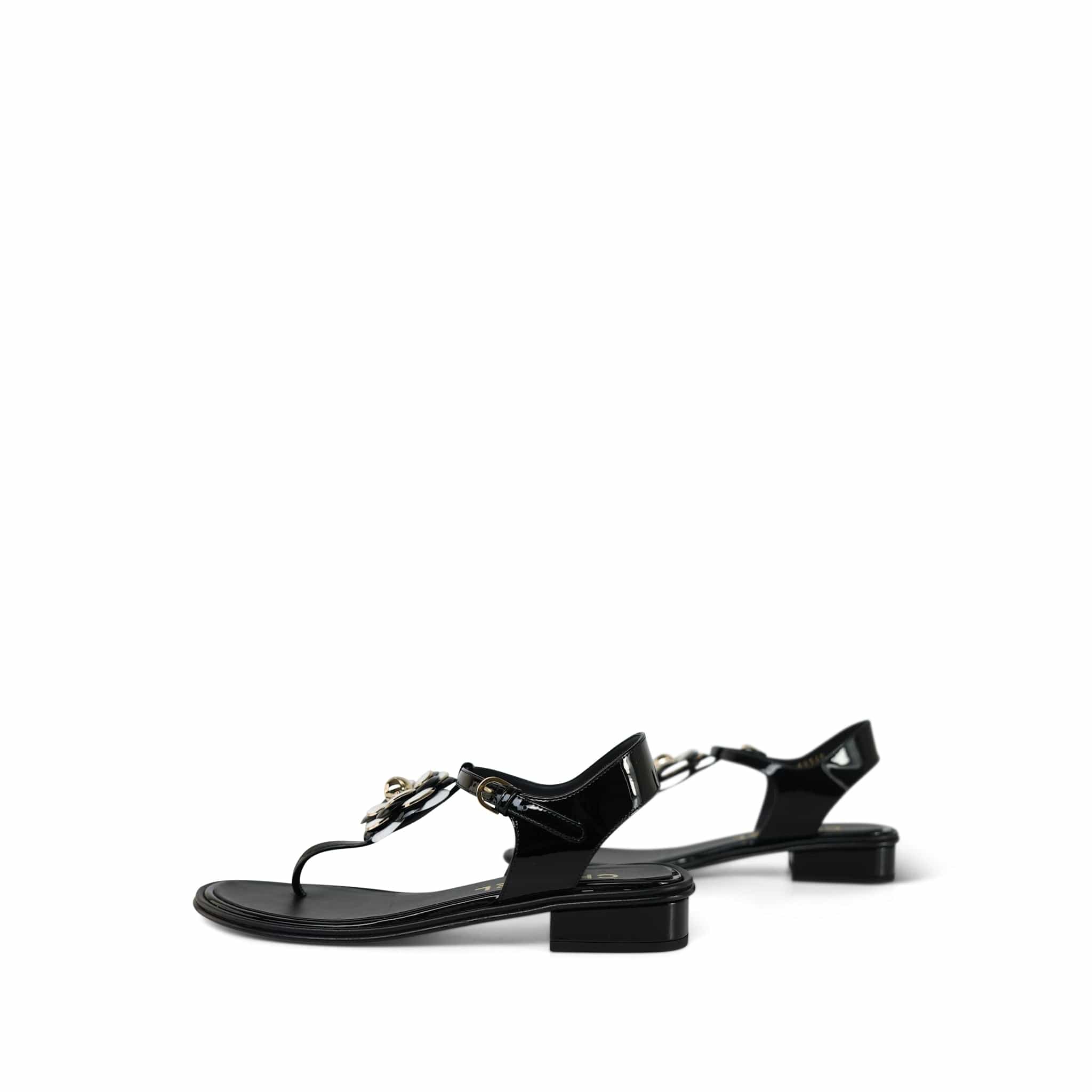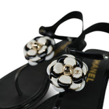 22A Black/White Patent Calfskin Camellia Thong Sandals Size 38