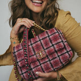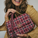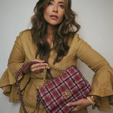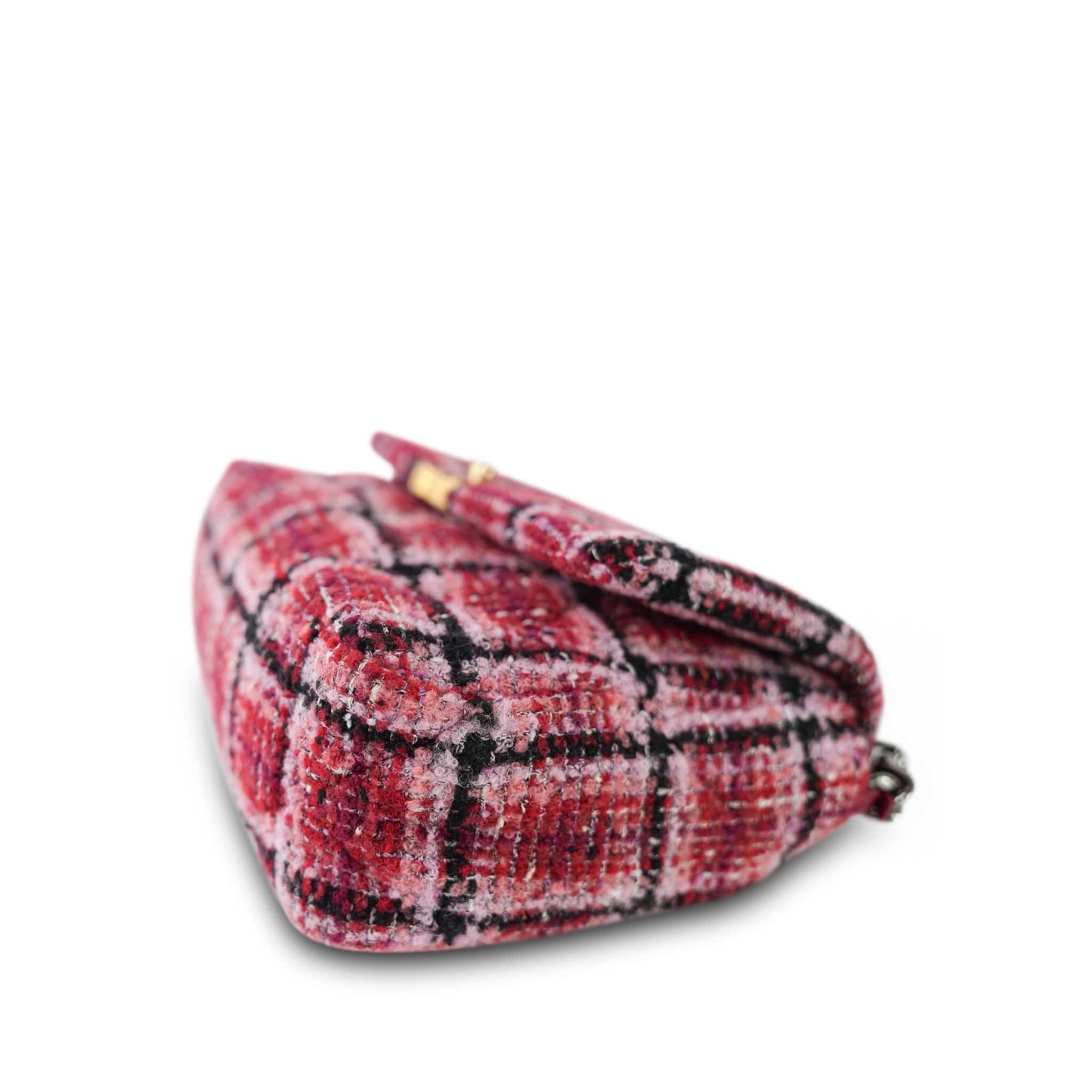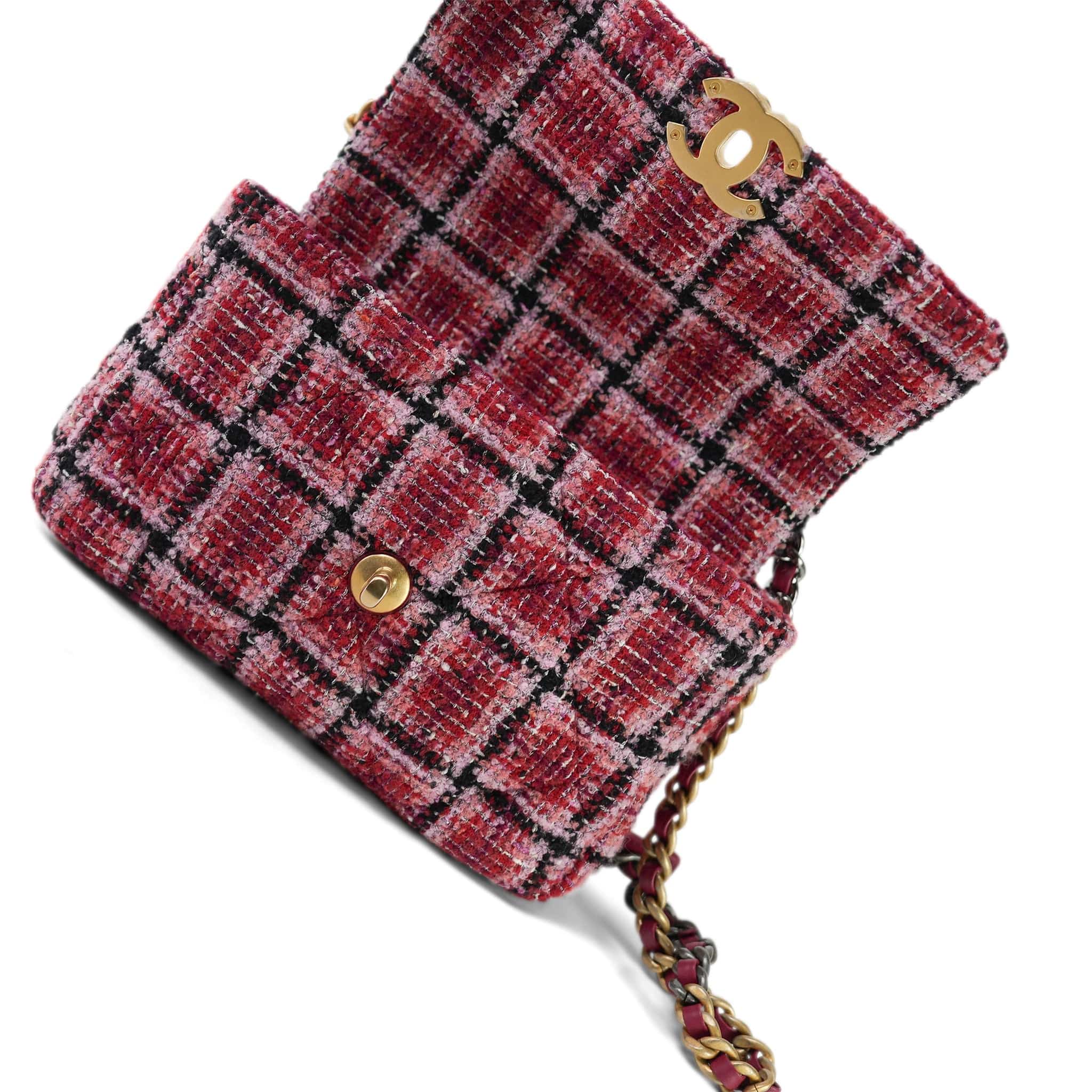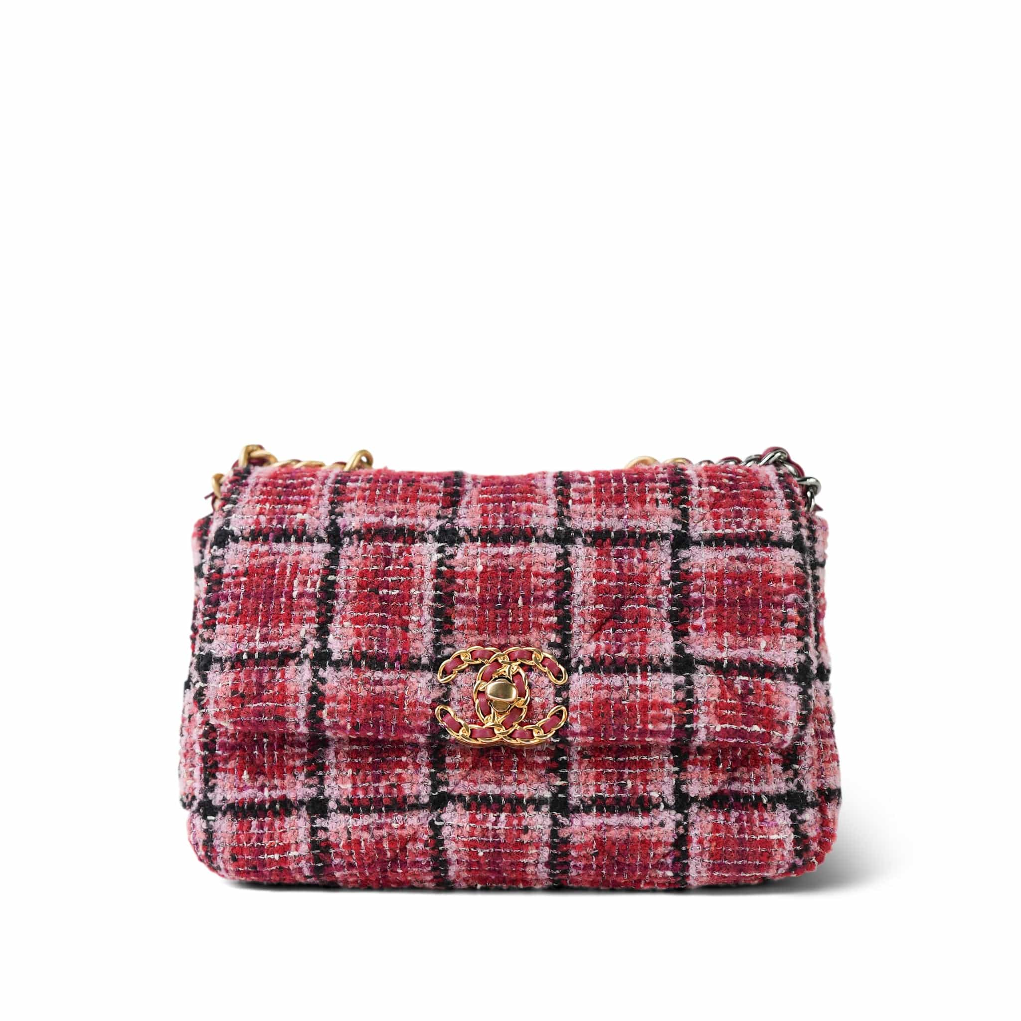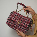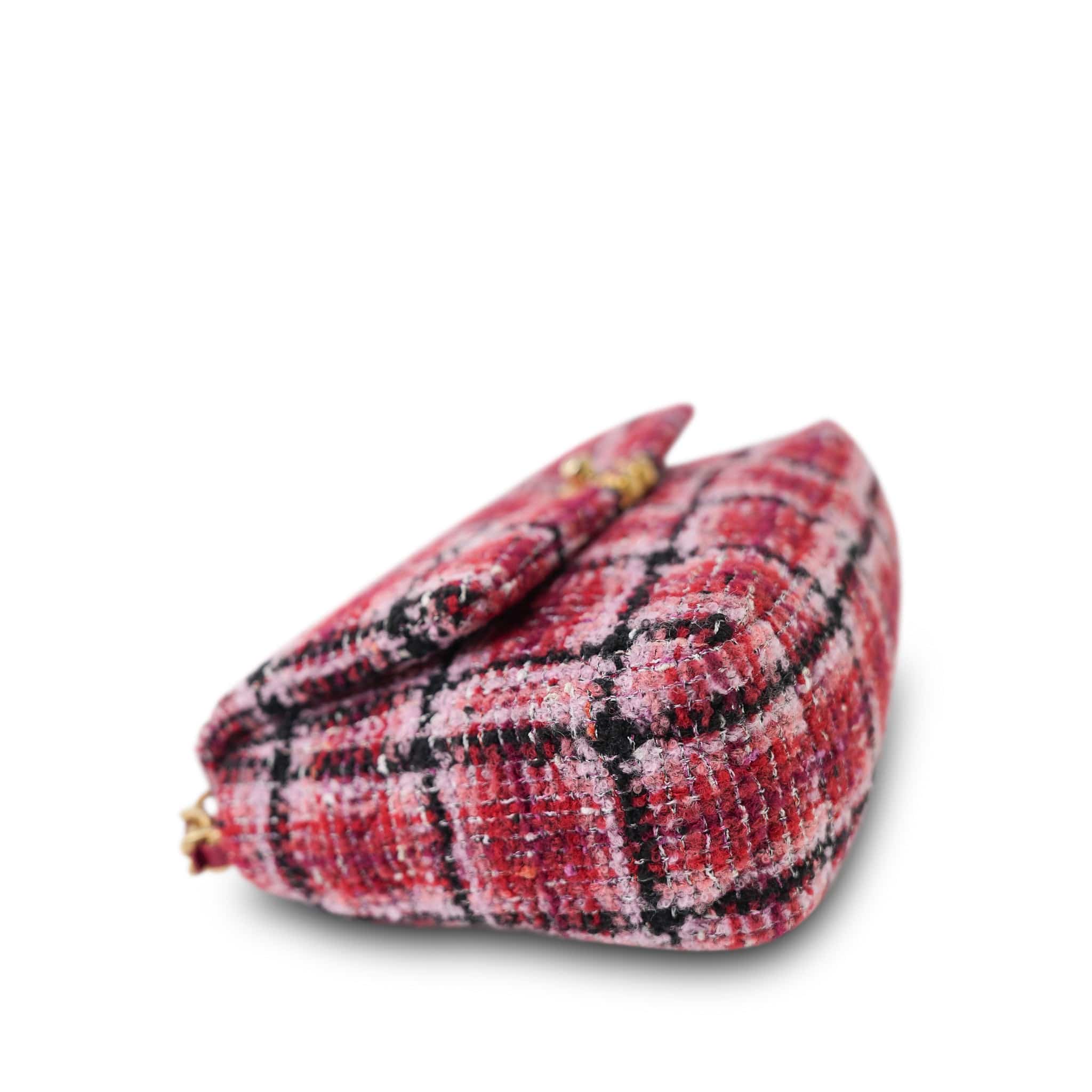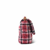 22A Red Multicolor Tweed Quilted 19 Flap Small Mixed Hardware