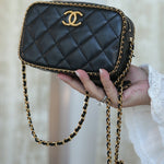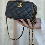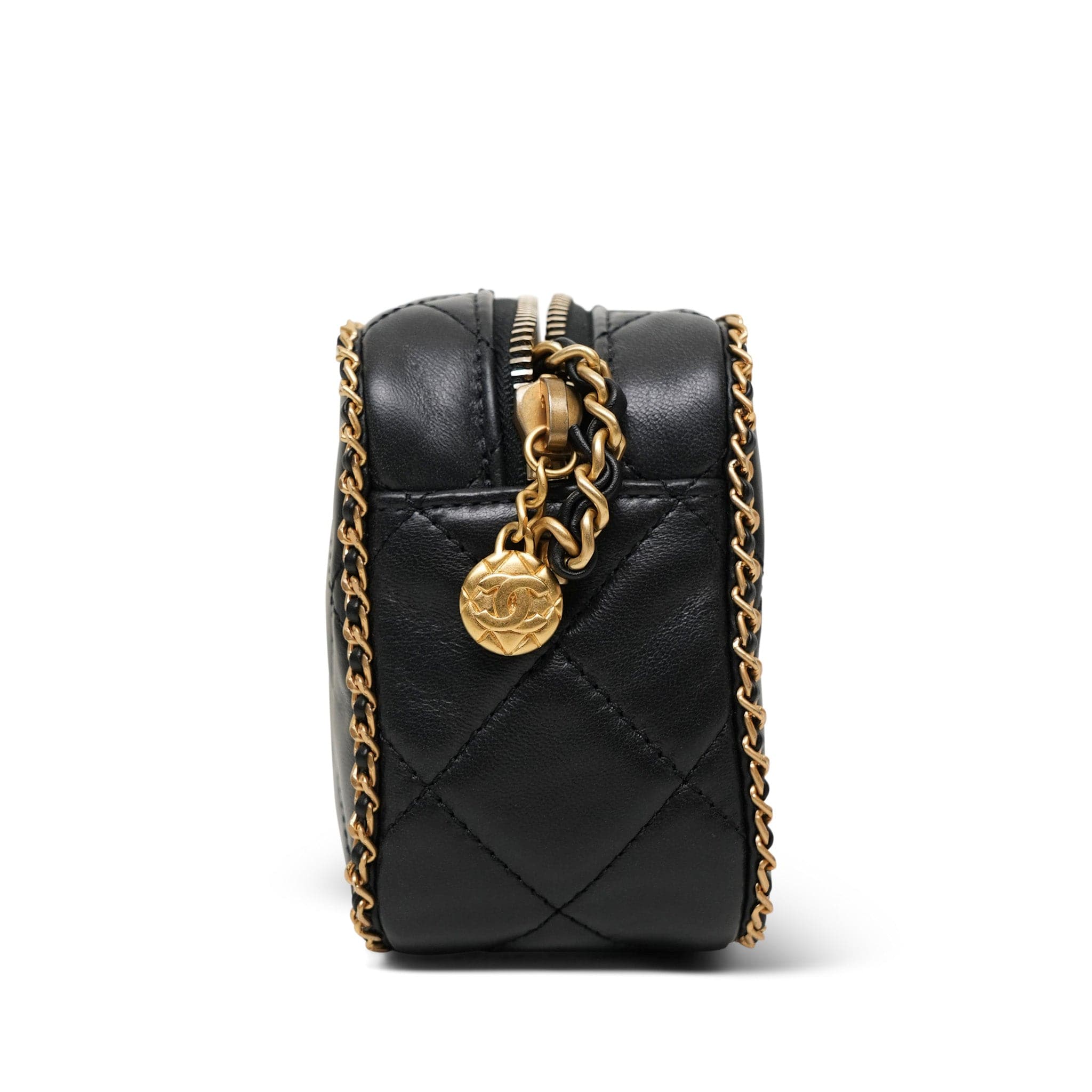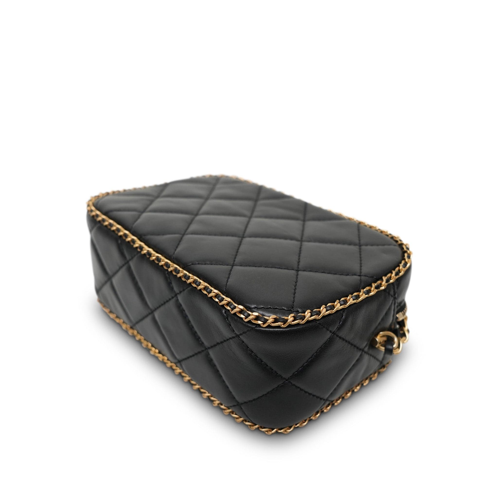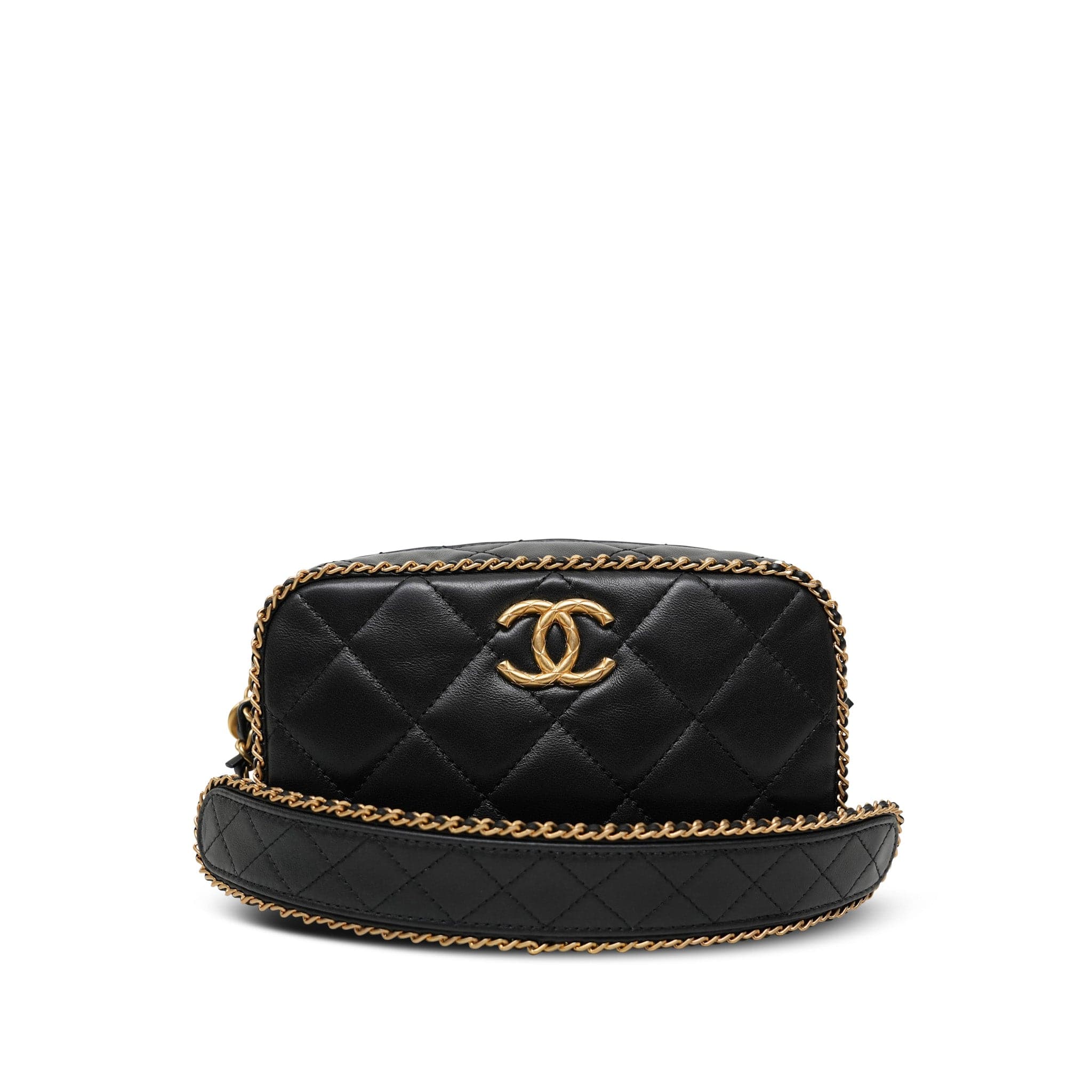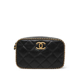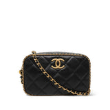 22B Black Lambskin Quilted CC Chain Around Mini Camera Bag AGHW