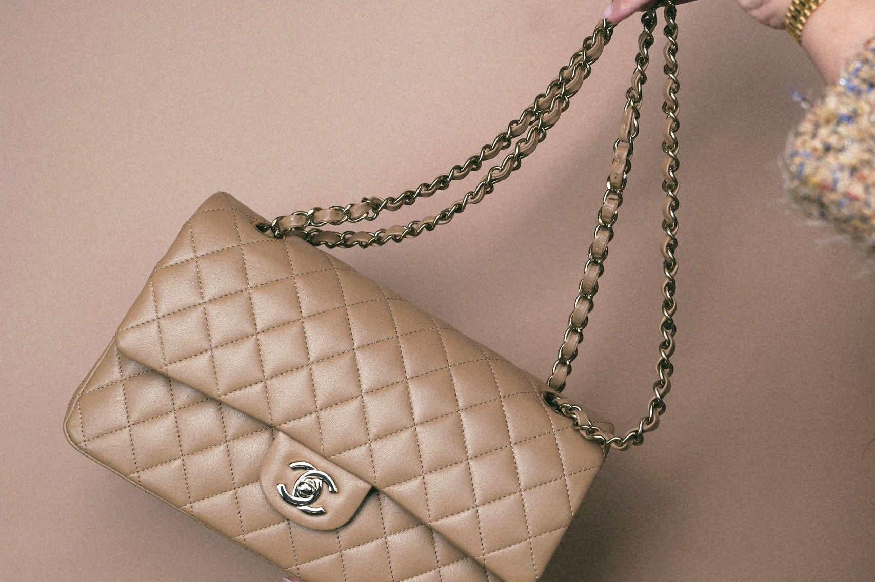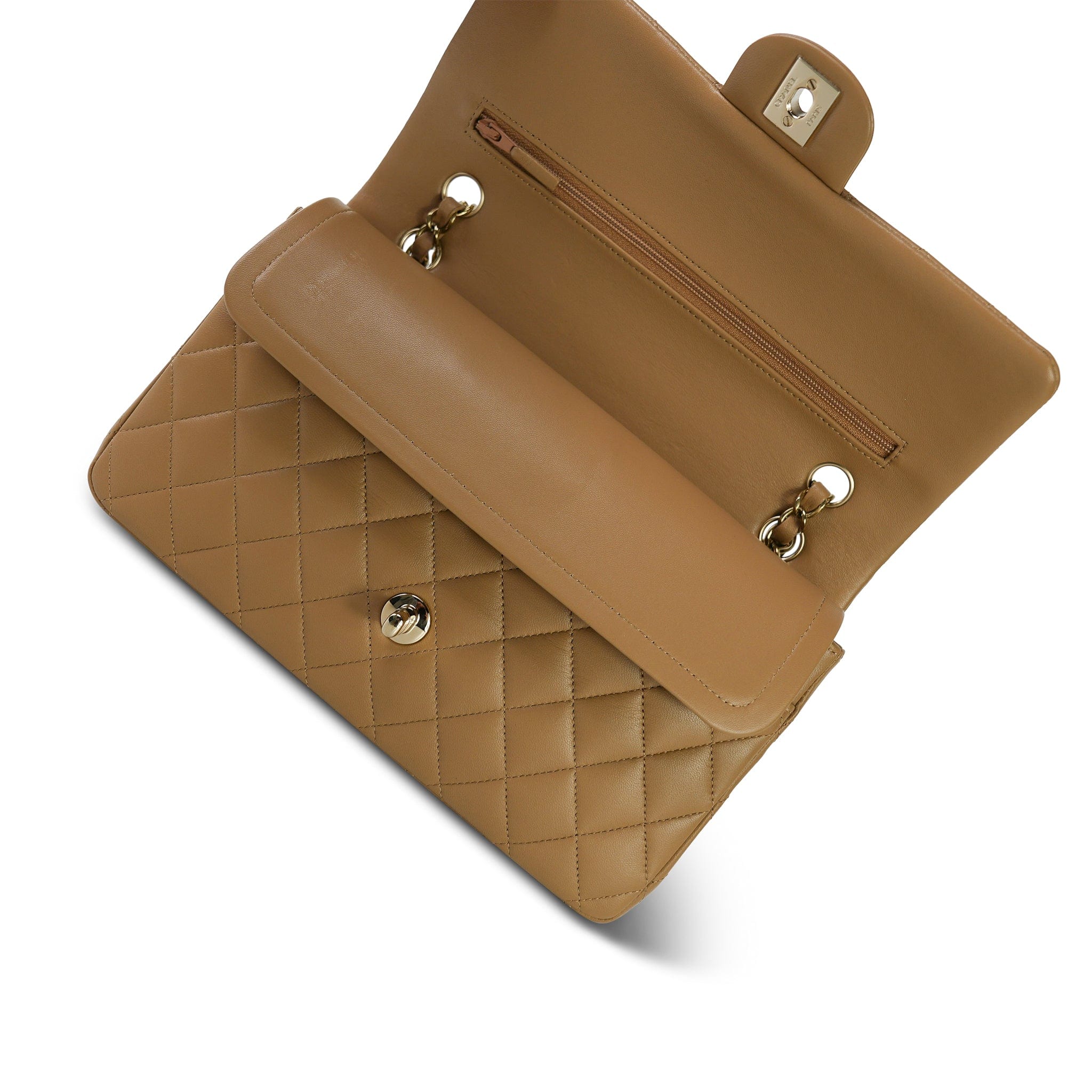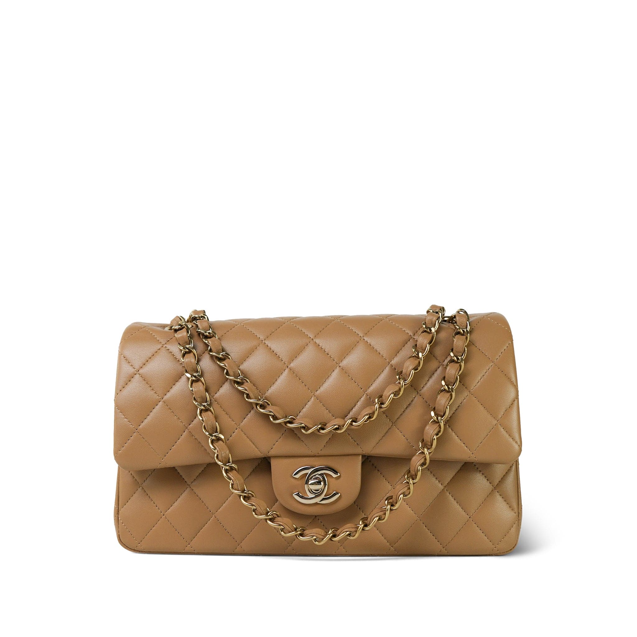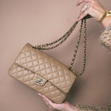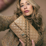 22B Dark Beige Lambskin Quilted Classic Flap Medium Light Gold Hardware