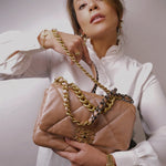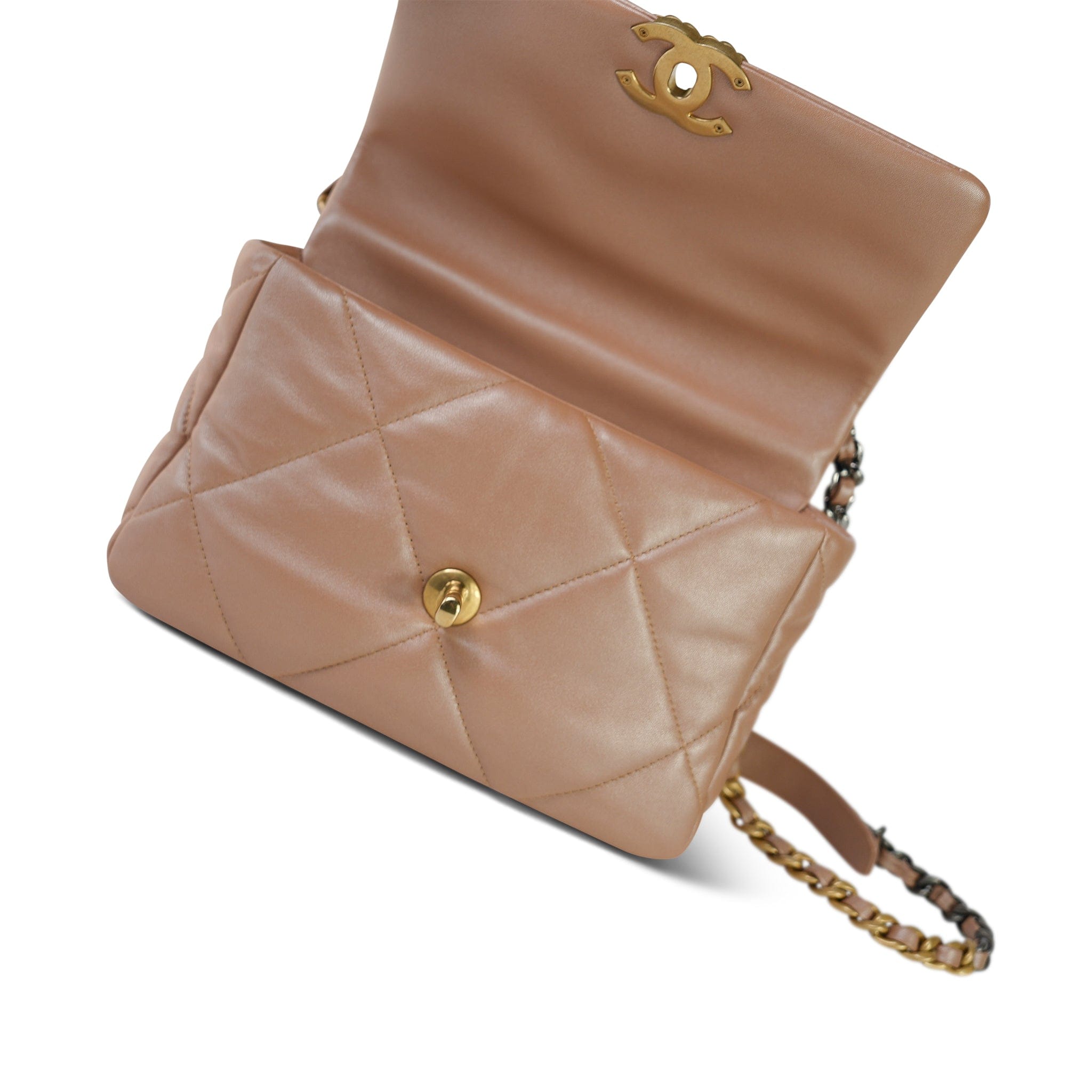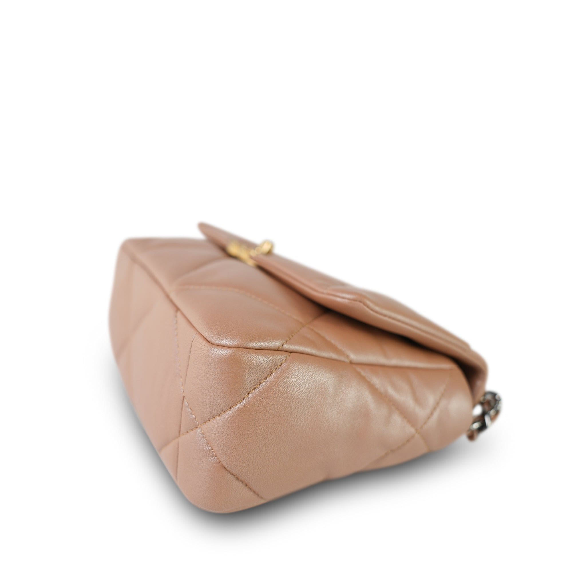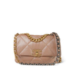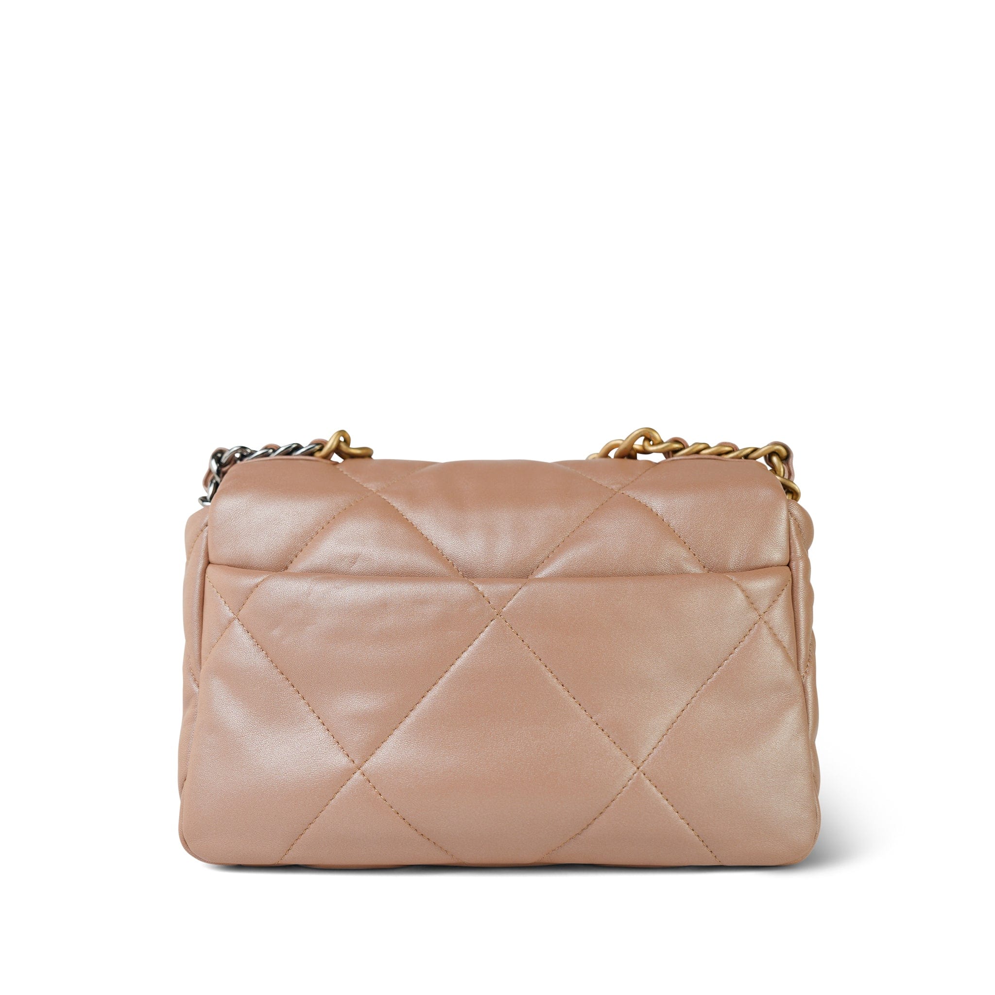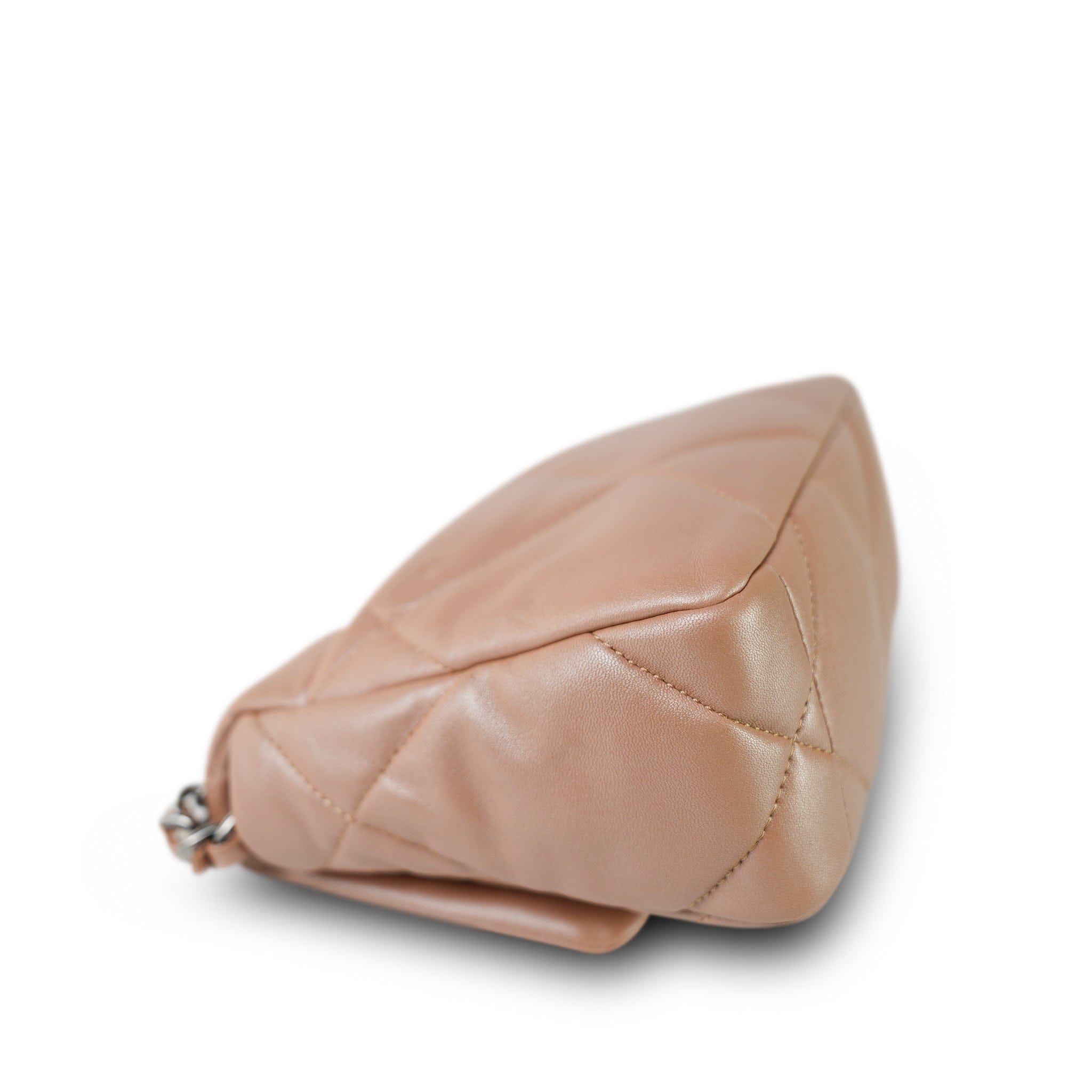 22B Pearly Beige Goatskin Quilted 19 Flap Small Mixed Hardware by
