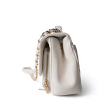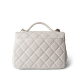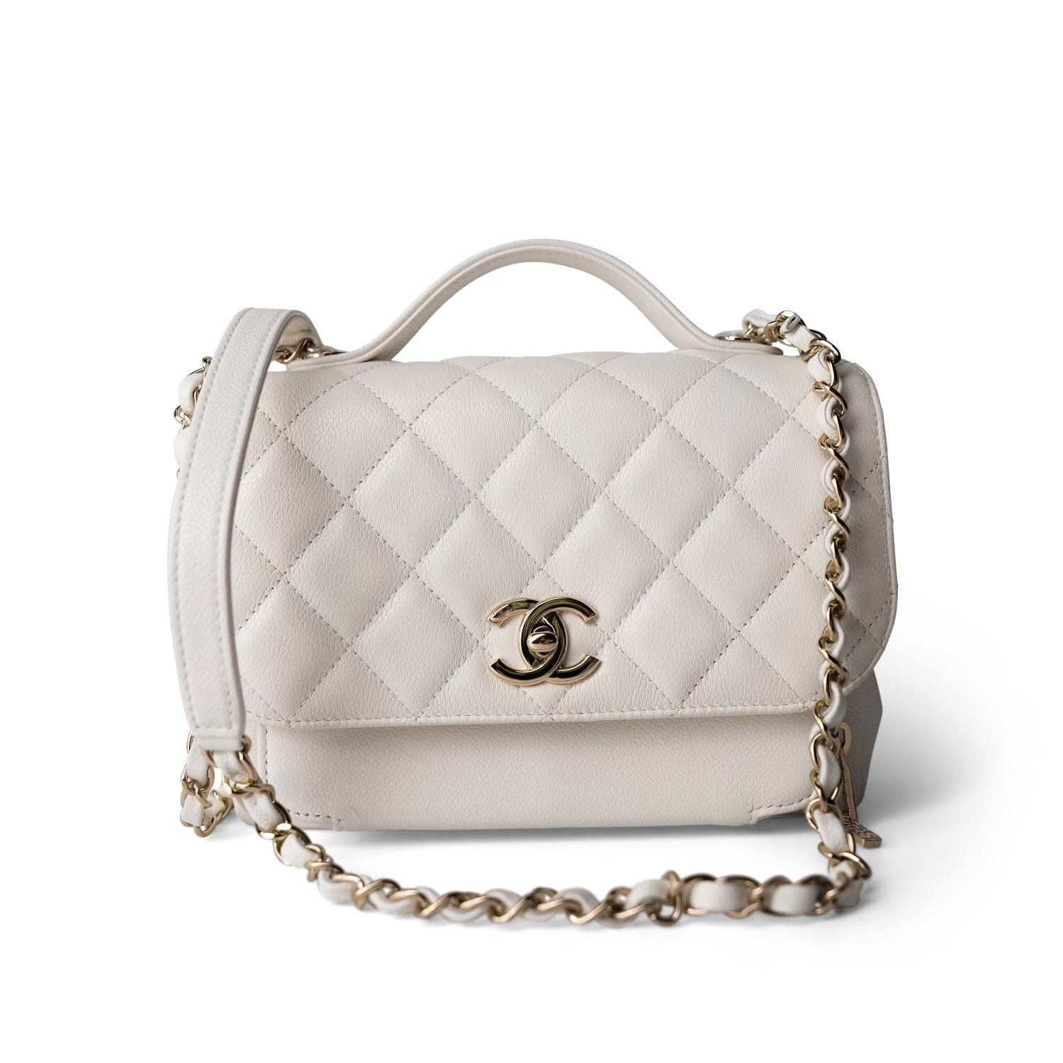 22B White Caviar Quilted Business Affinity Medium Flap Light Gold Hardware