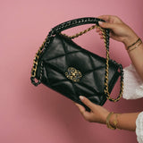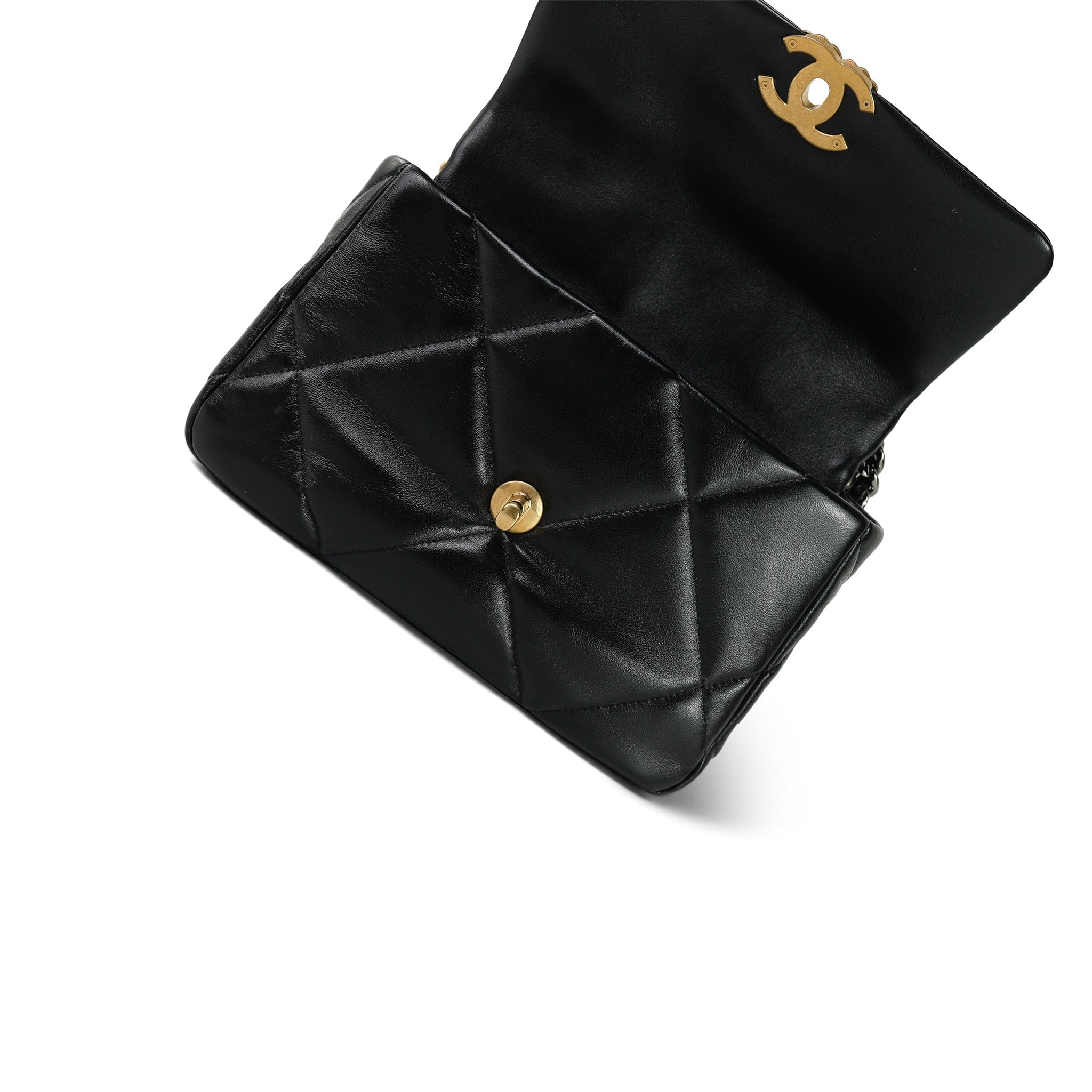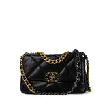 22C Black Lambskin Quilted Small 19 Flap Mixed Hardware